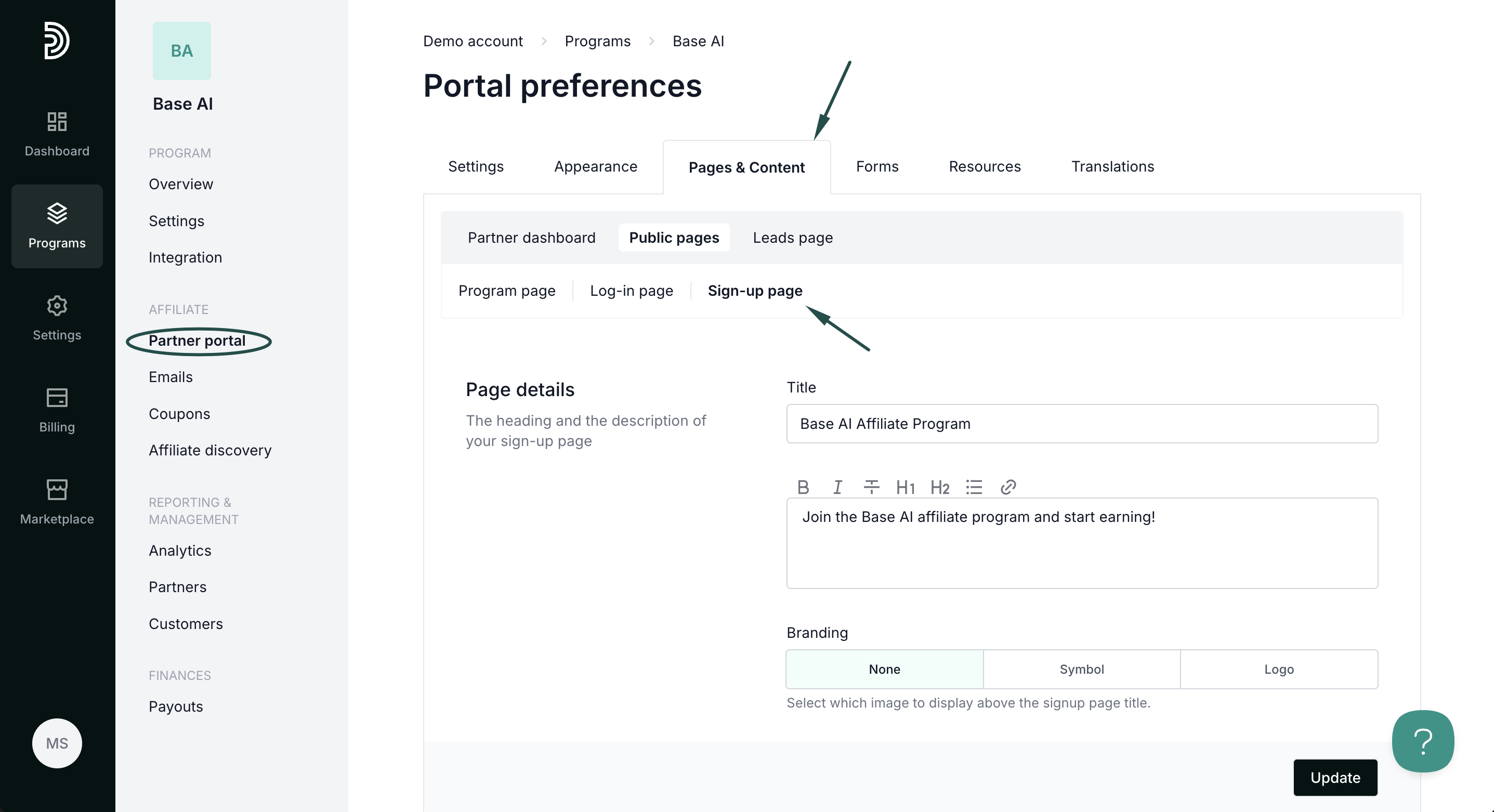 In this article, you'll learn how to customize the Partner Portal's signup and login pages. We’ll cover how to adjust the appearance, modify content, configure forms, manage marketing permissions, and tweak other settings to create a tailored experience for your partners.