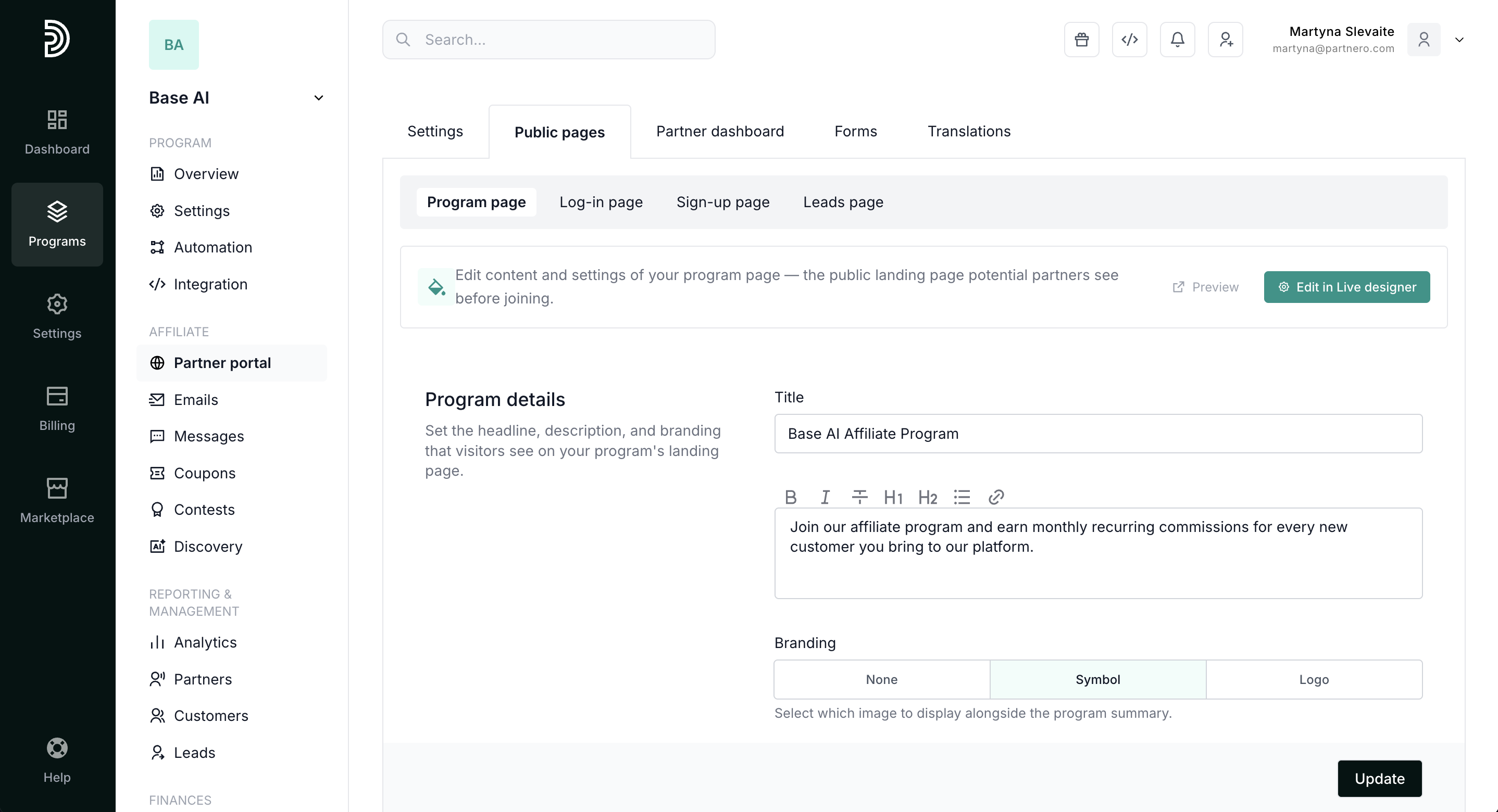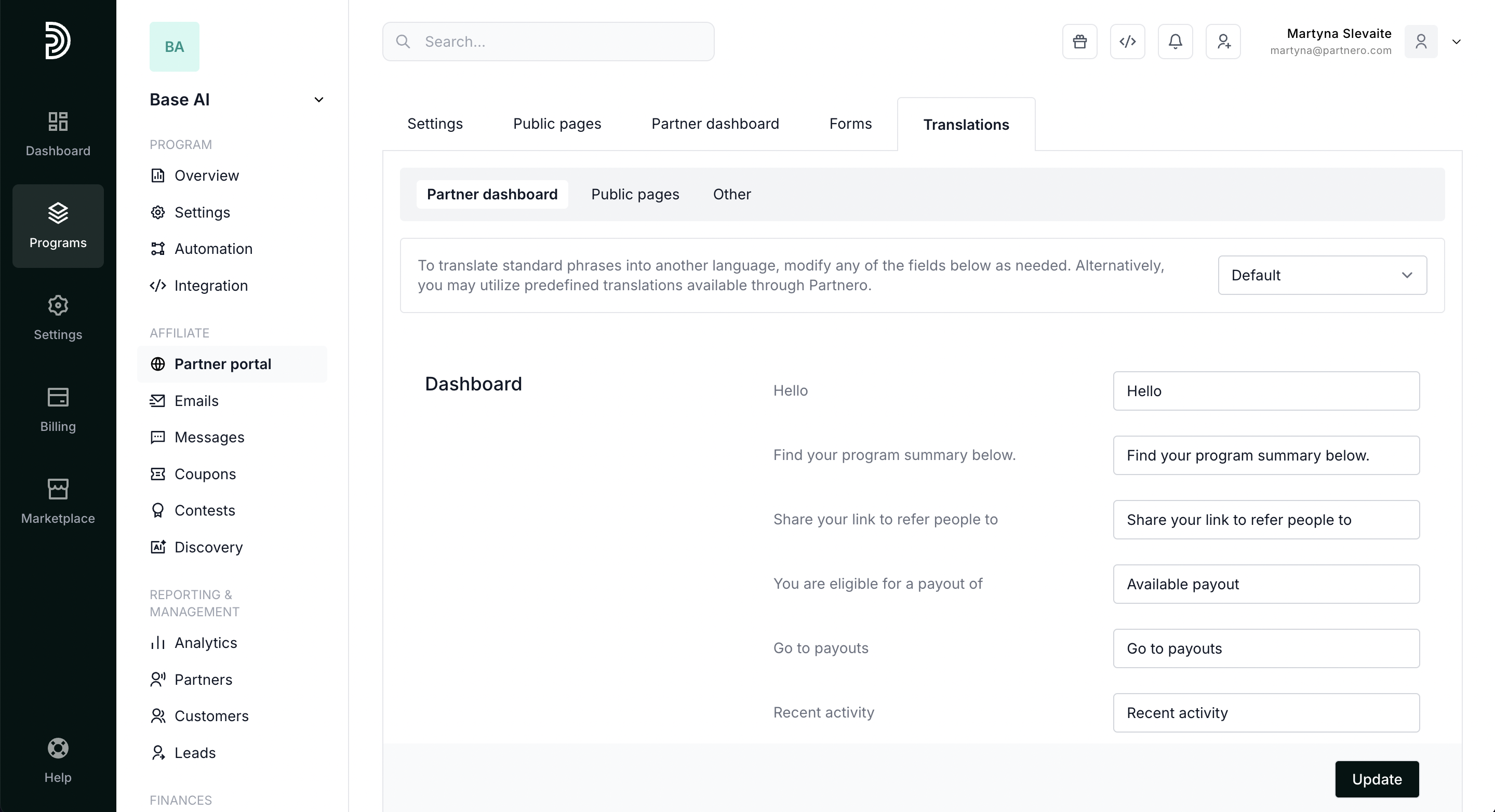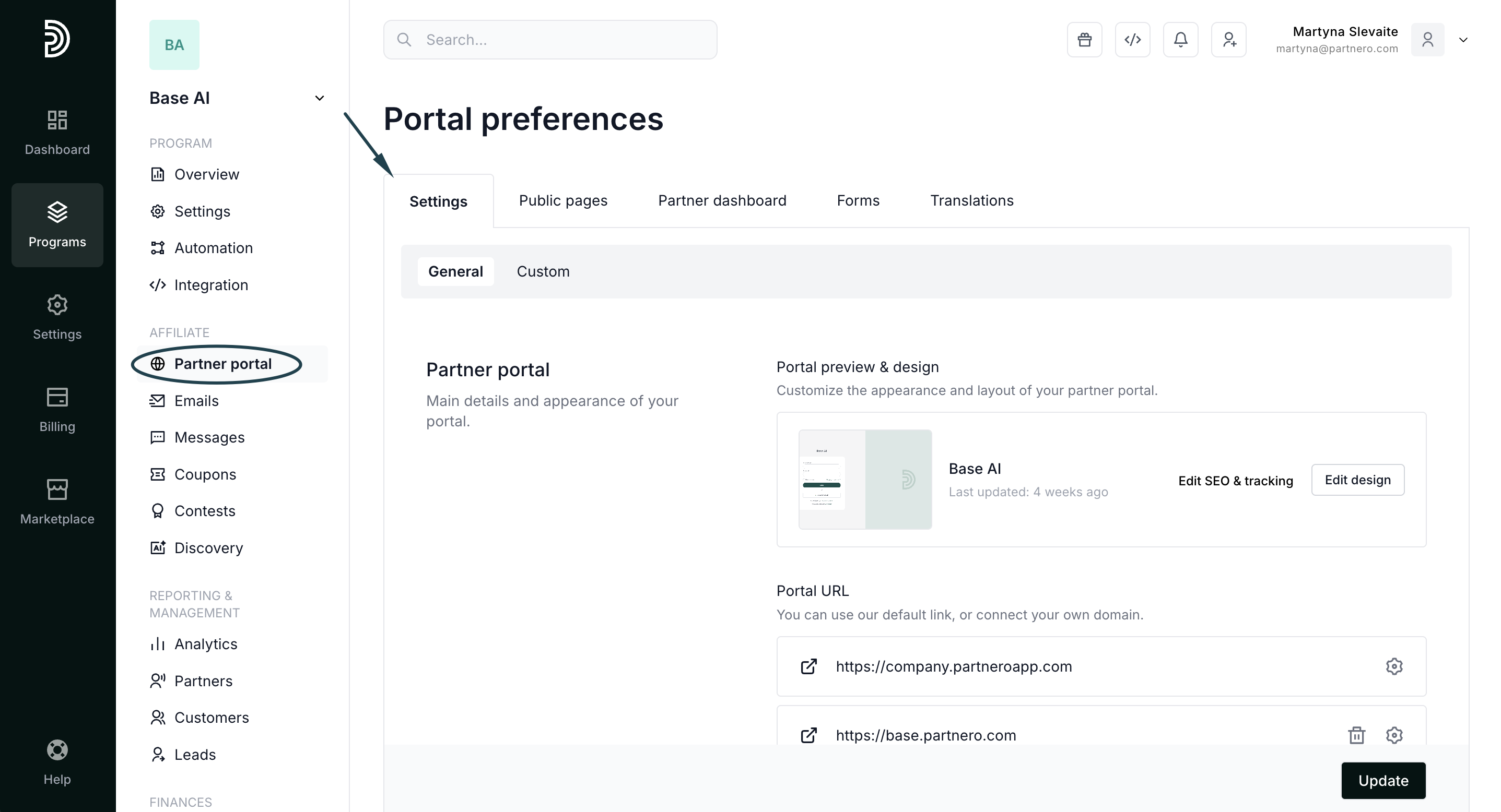 Partnero allows you to customize three main areas of the Partner Portal: