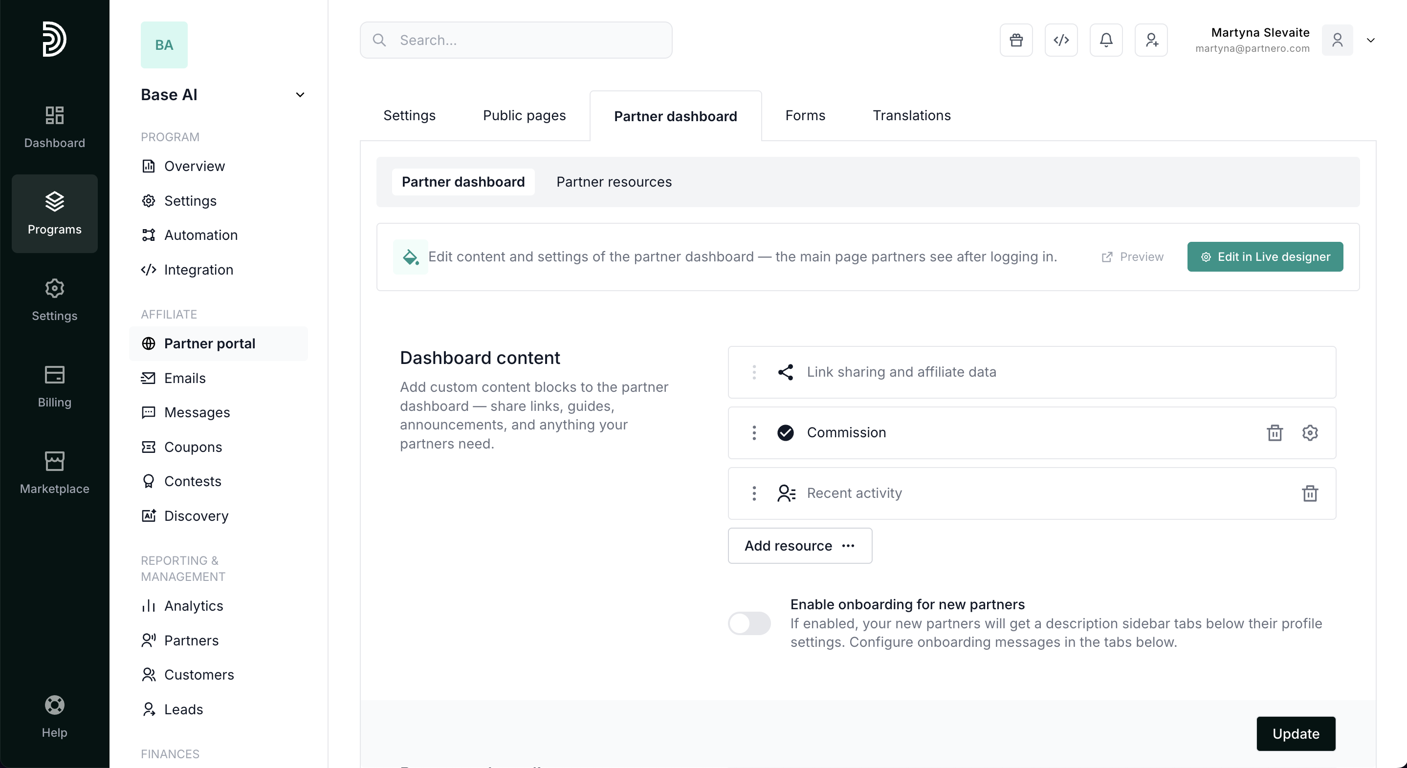 Partner dashboard