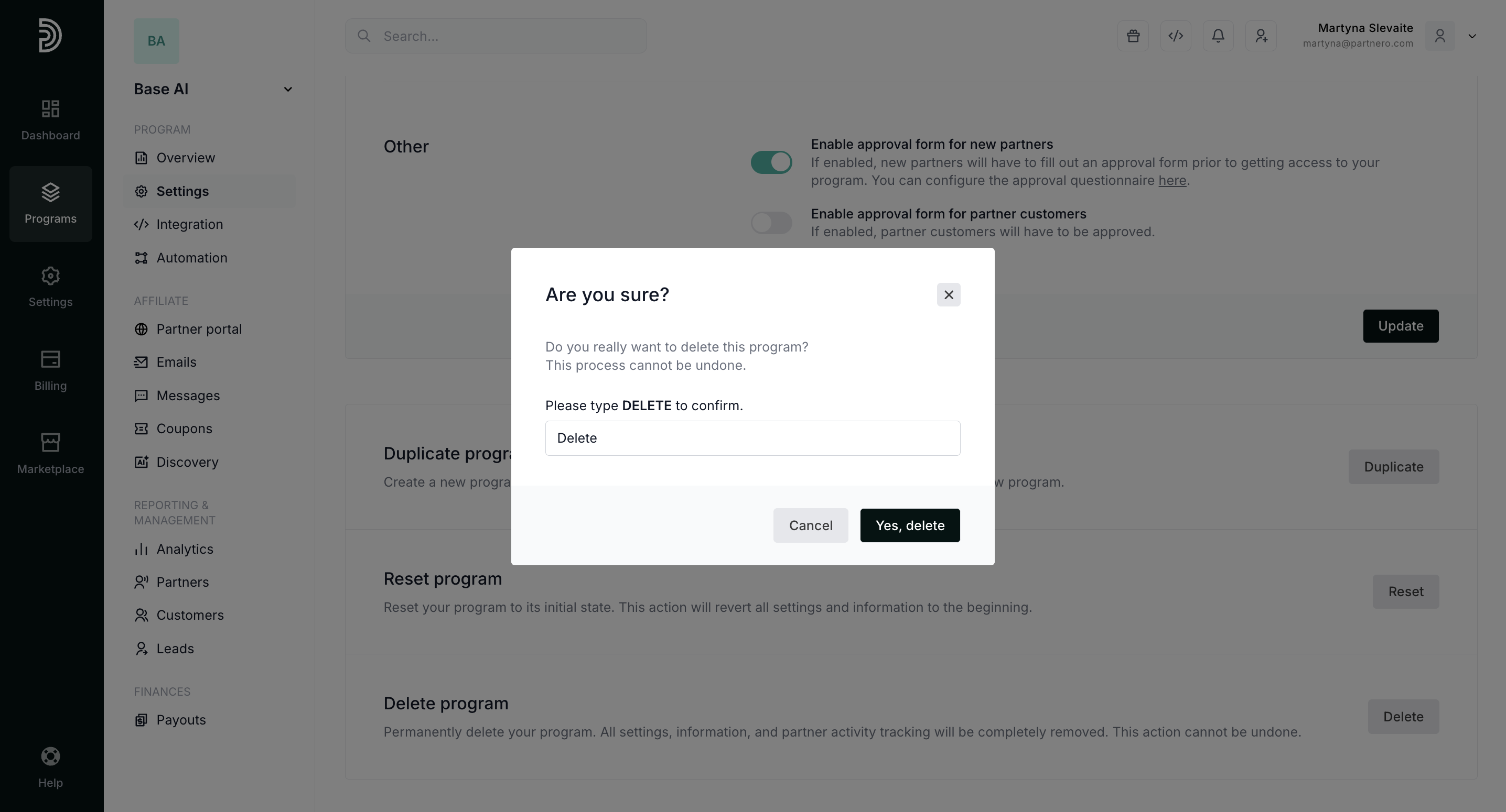 - A confirmation window will appear; type DELETE. This additional step ensures a program isn’t deleted by accident, since it cannot be undone.