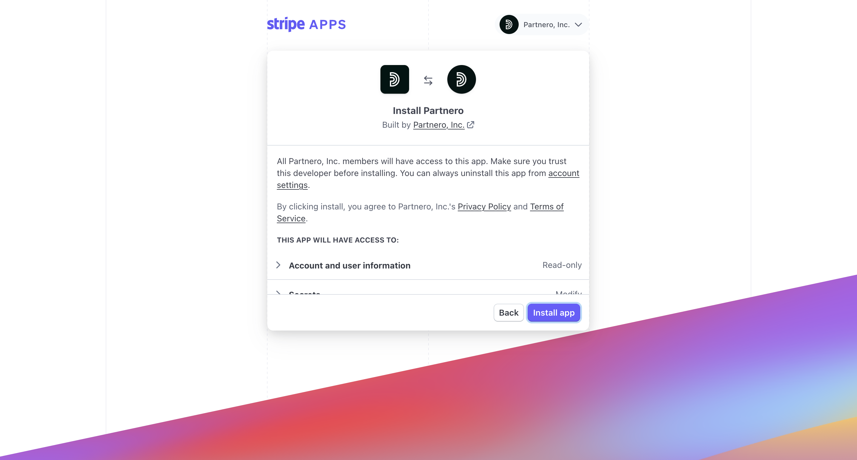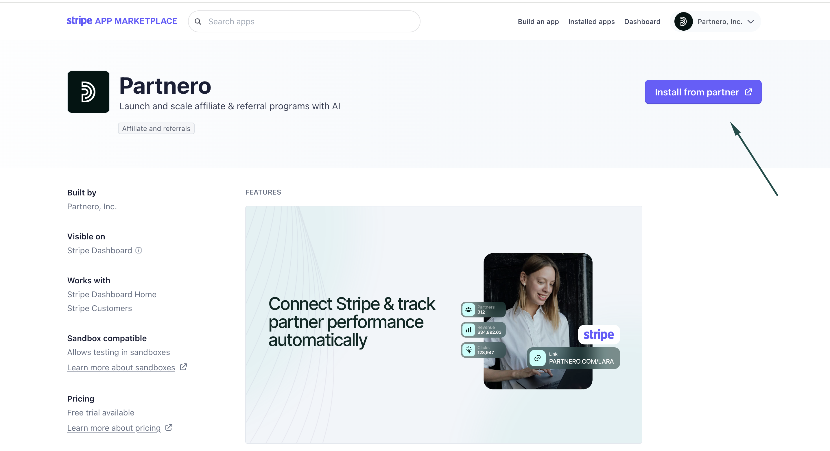 Partnero is a verified Stripe partner and offers a Partnero app for Stripe, providing enhanced security and features.