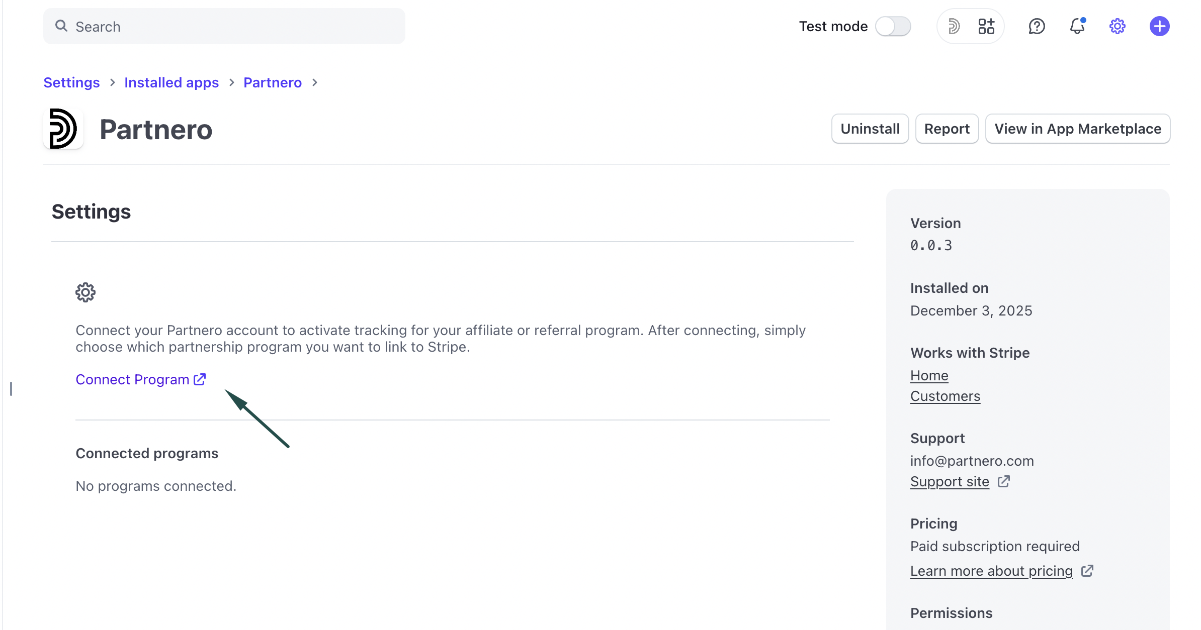 - Once installed, you'll be returned to your Stripe dashboard. Click Connect Program: