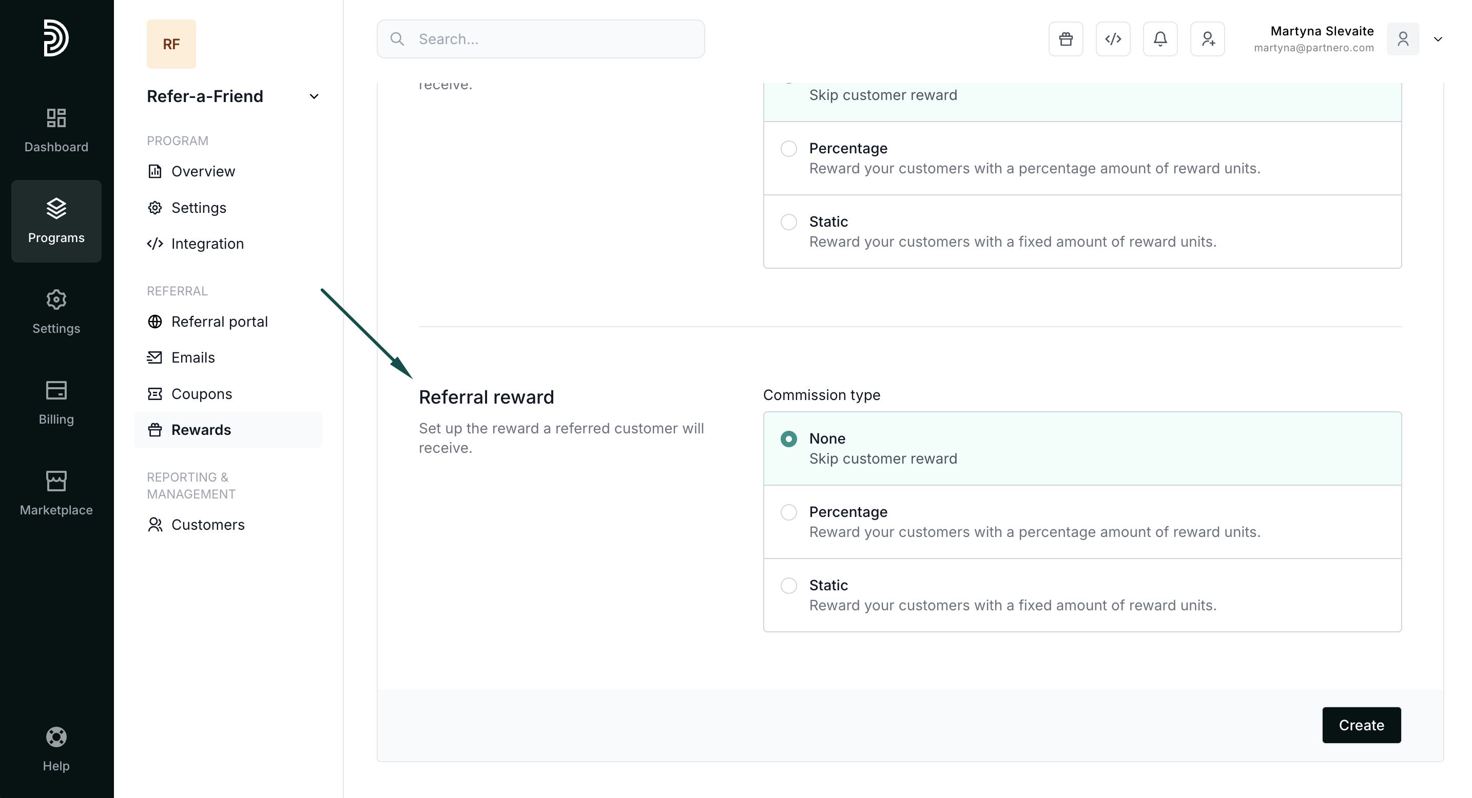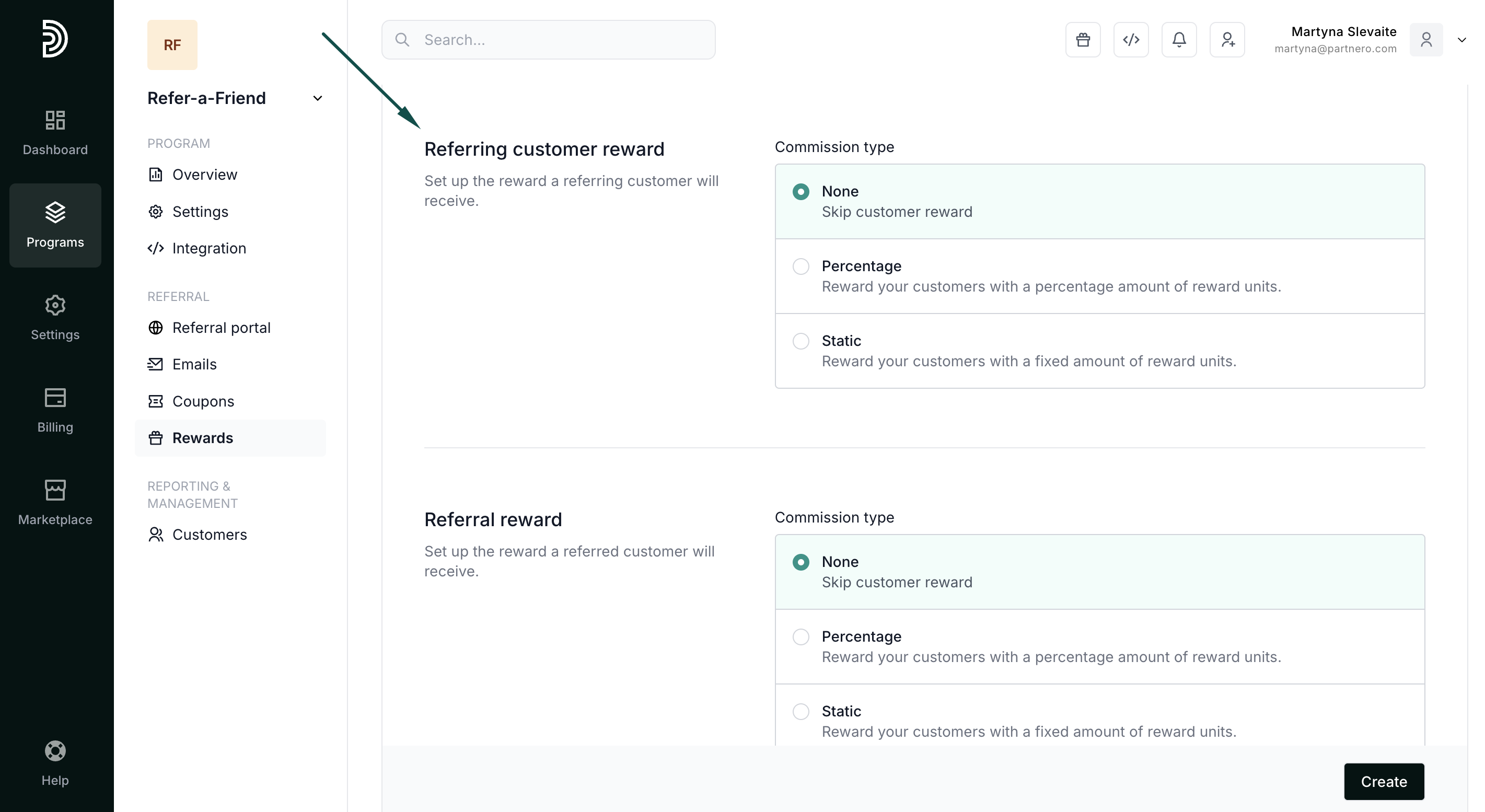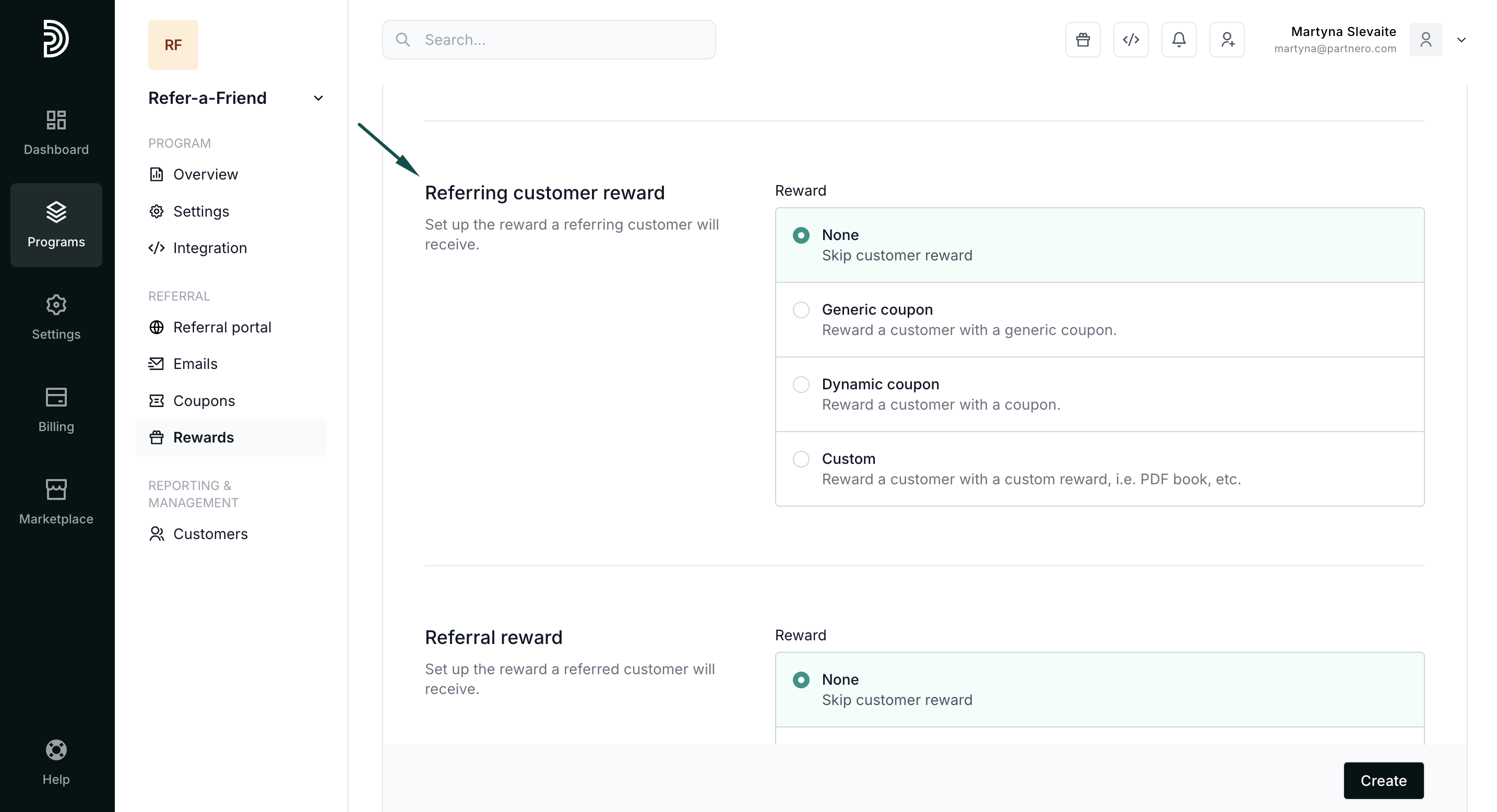 Rewards define how your customers and their referrals will be rewarded. To create a reward, you must first create a program. If you haven't yet done so, follow this article to create your program.