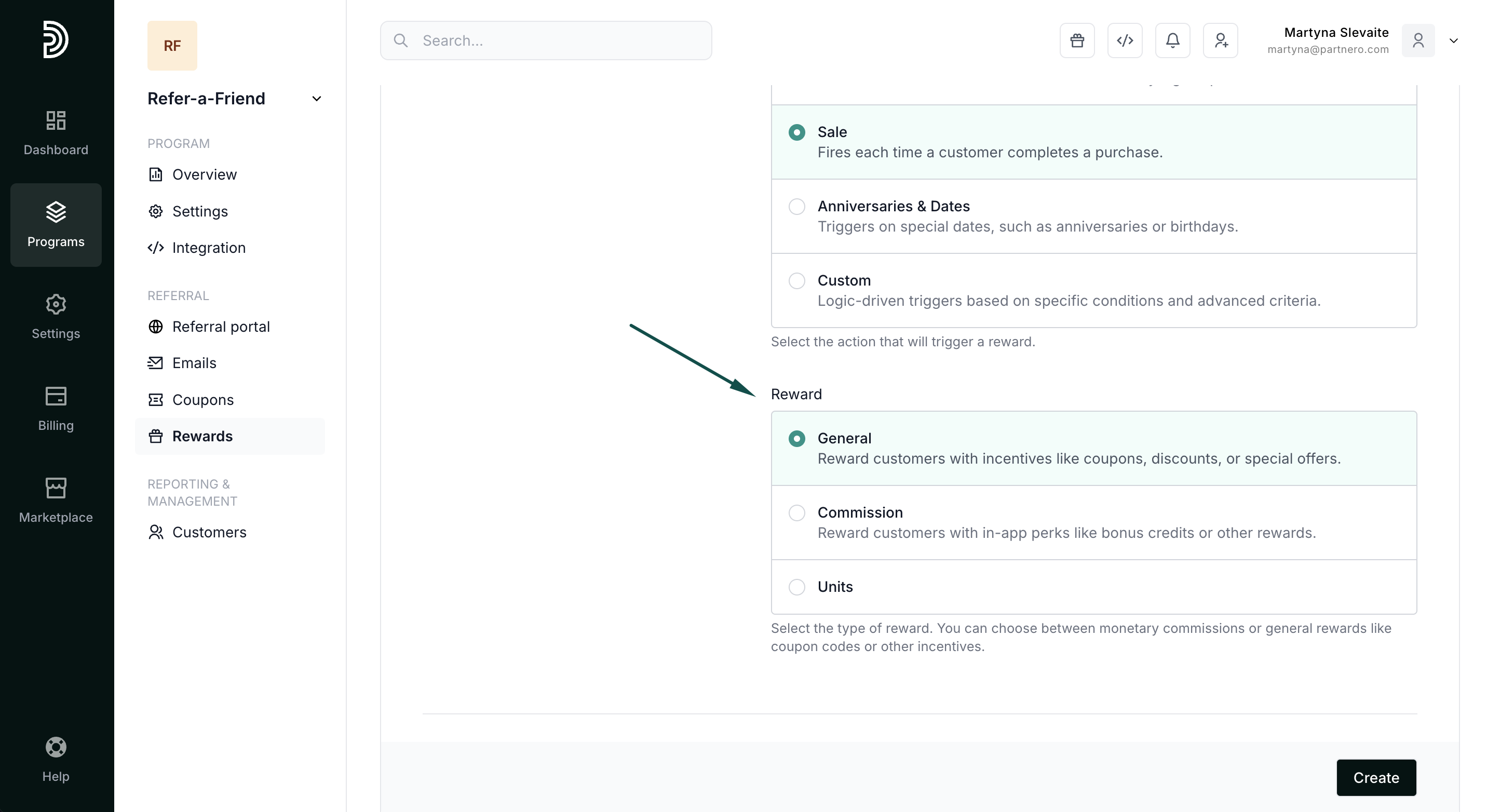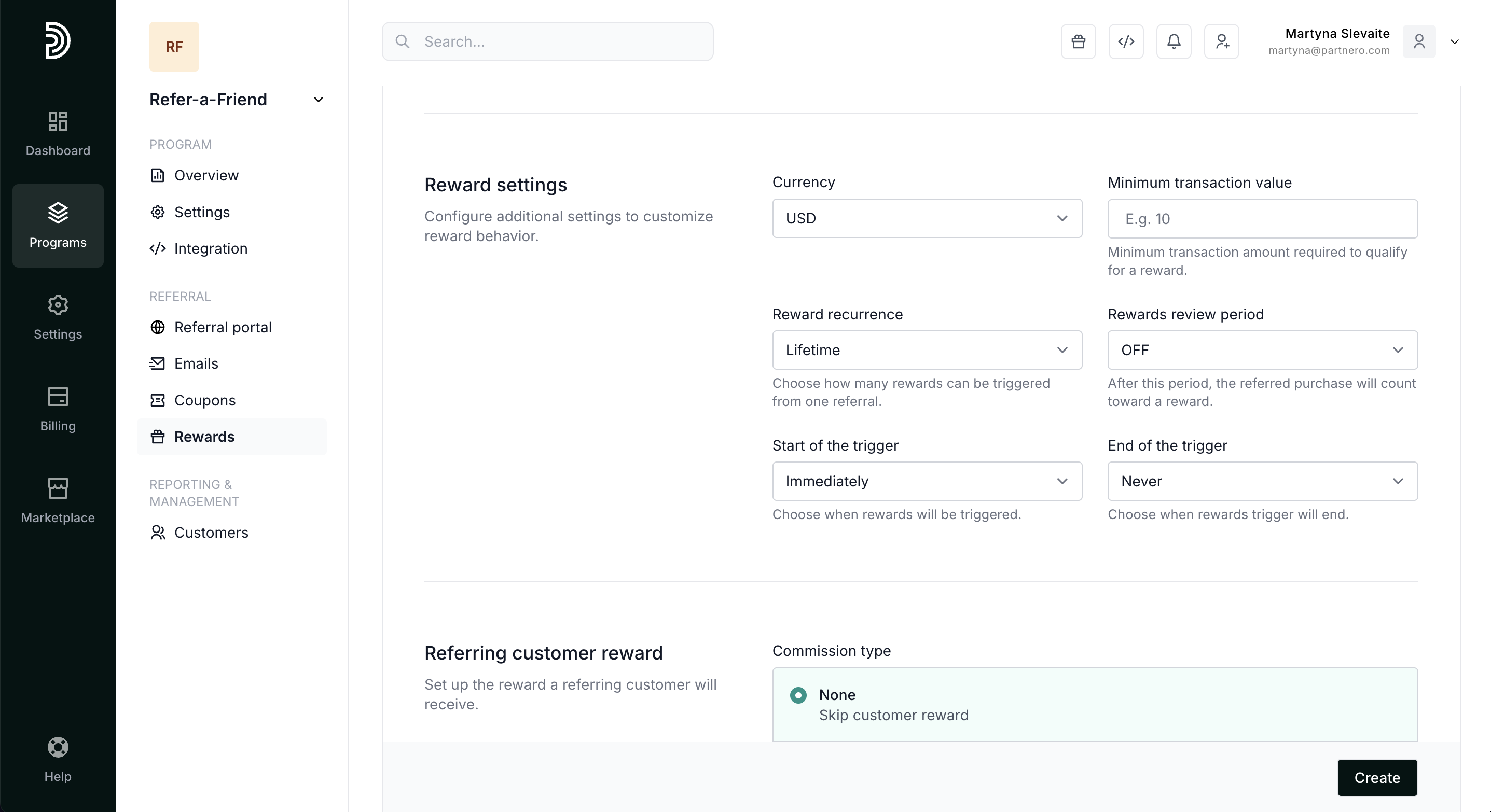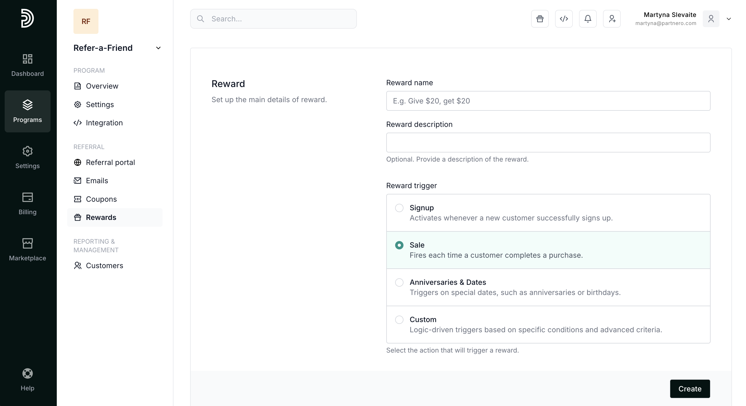 Rewards define how your customers and their referrals will be rewarded. To create a reward, you must first create a program. If you haven't yet done so, follow this article to create your program.