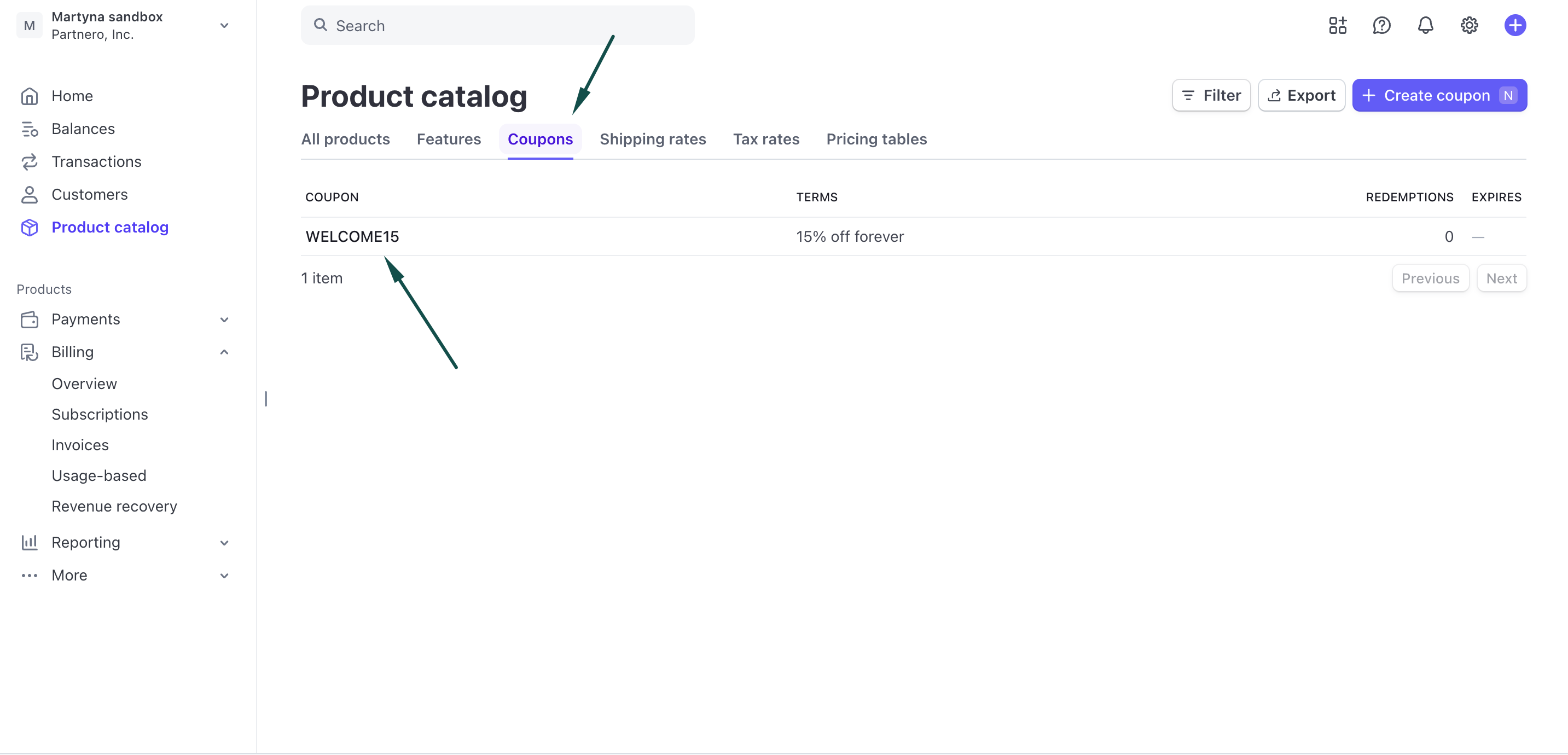- Create coupons on Partnero and sync with Stripe.