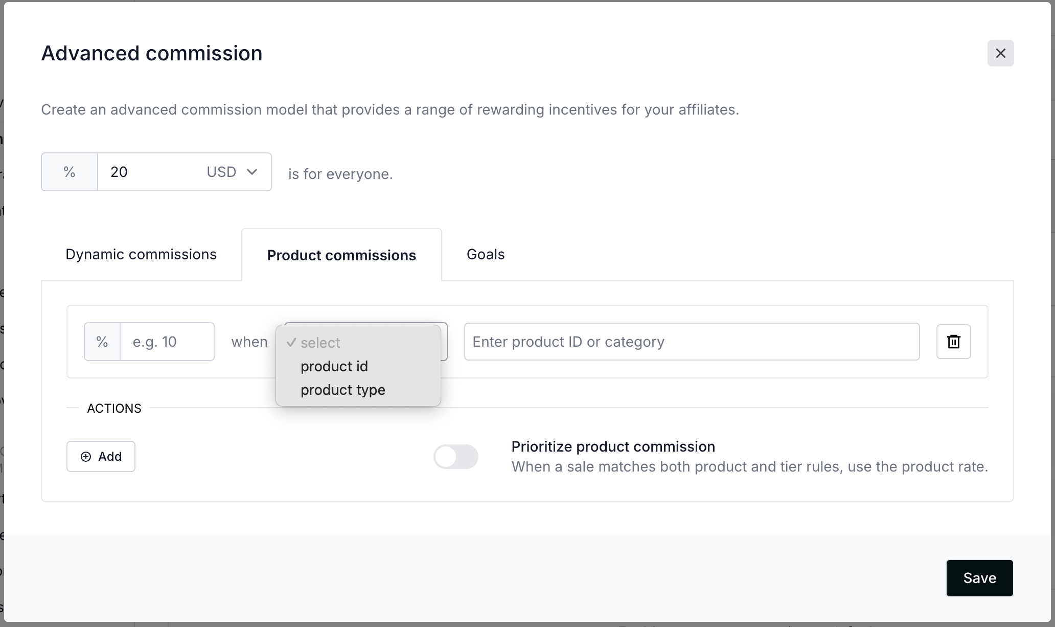 If you'd like the product-based commission to have priority over the dynamic commission settings, toggle the setting at the bottom. Click Save.