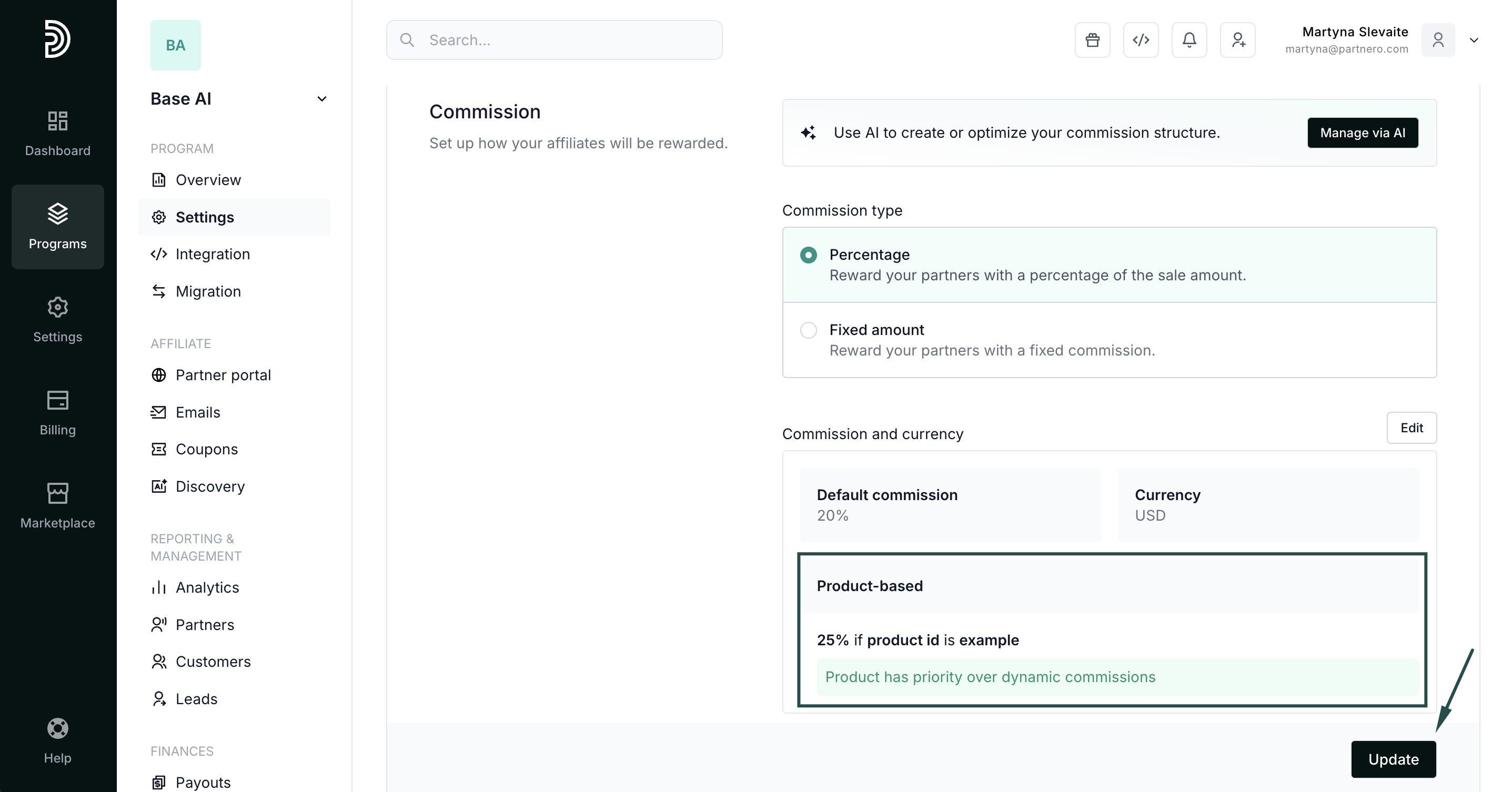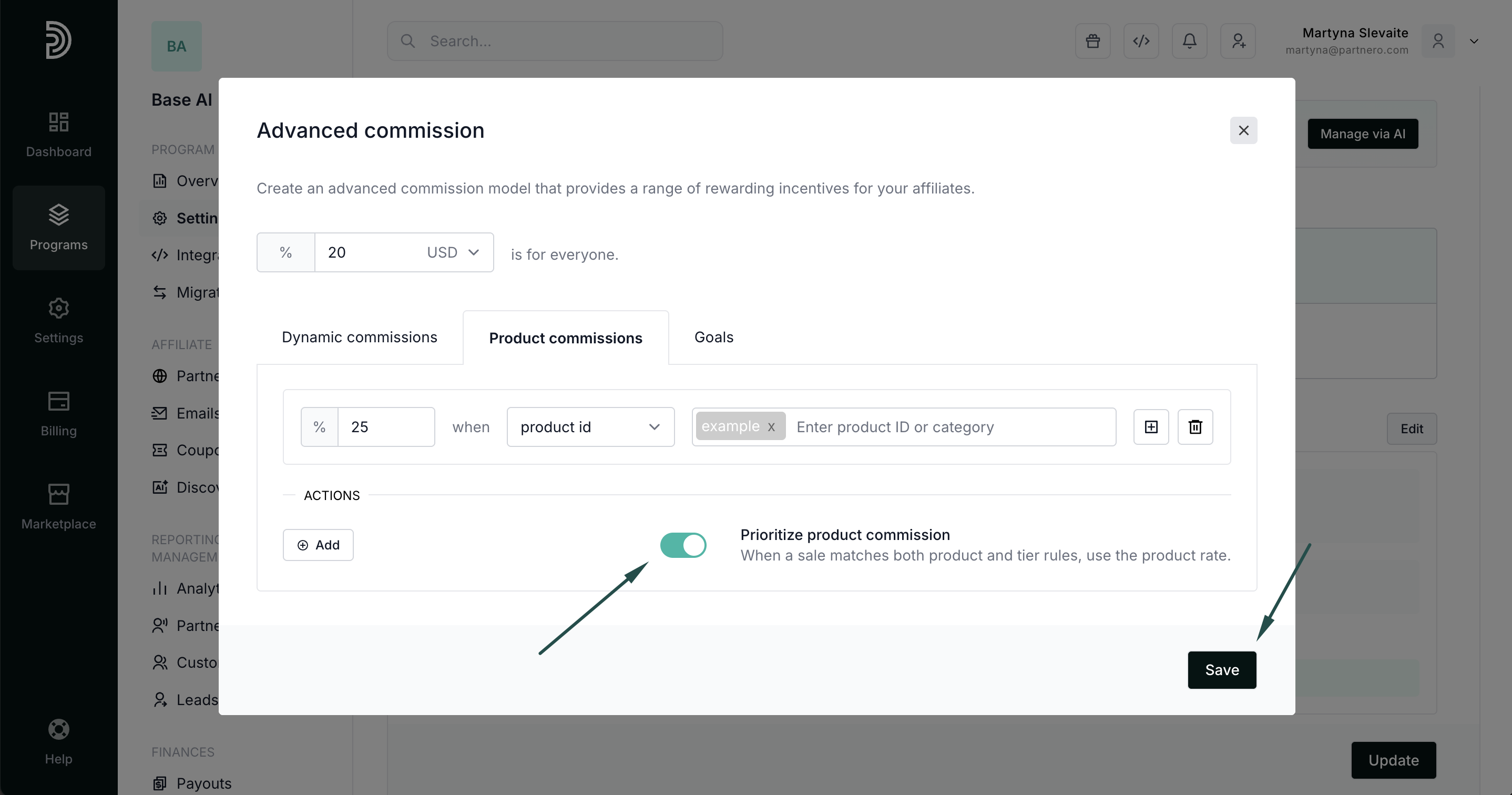 - Product-based commissions let you reward your partners with tailored commission rates for specific products or product groups. This gives you more flexibility than standard commission settings, helping you incentivize the sale of high-priority items and better align rewards with your business goals. In this guide, you’ll learn how to configure product-based commissions in Partnero step-by-step.