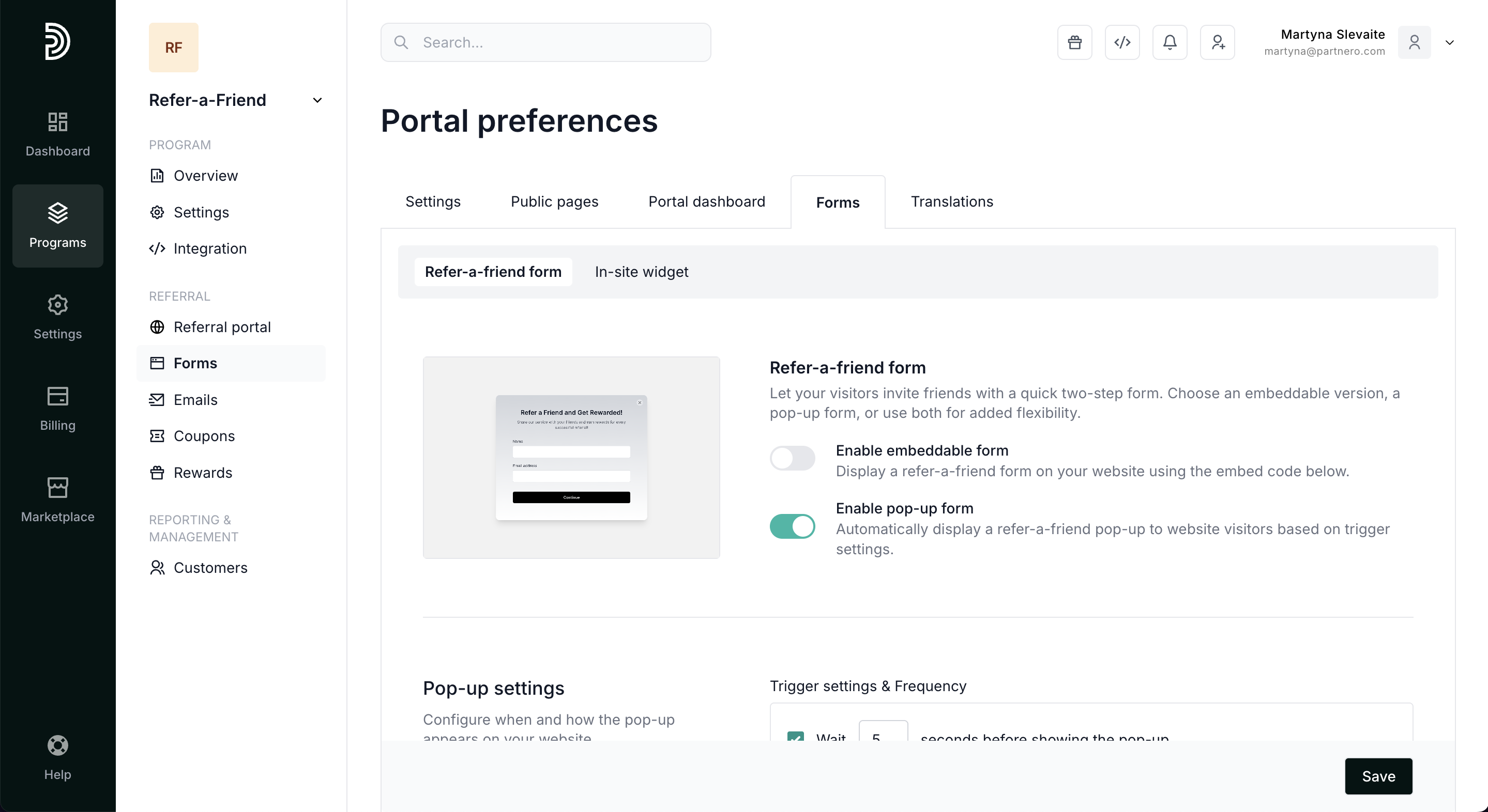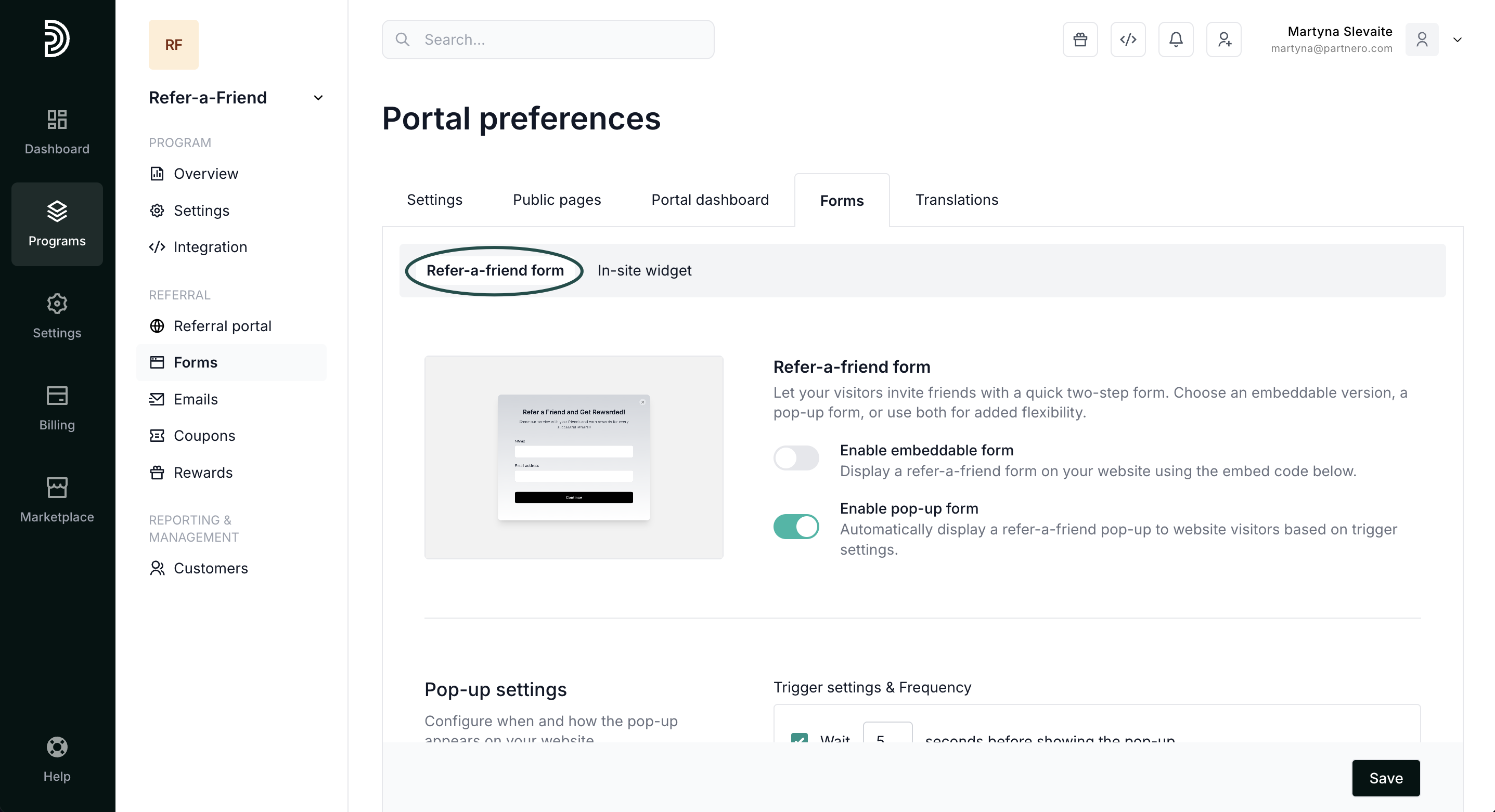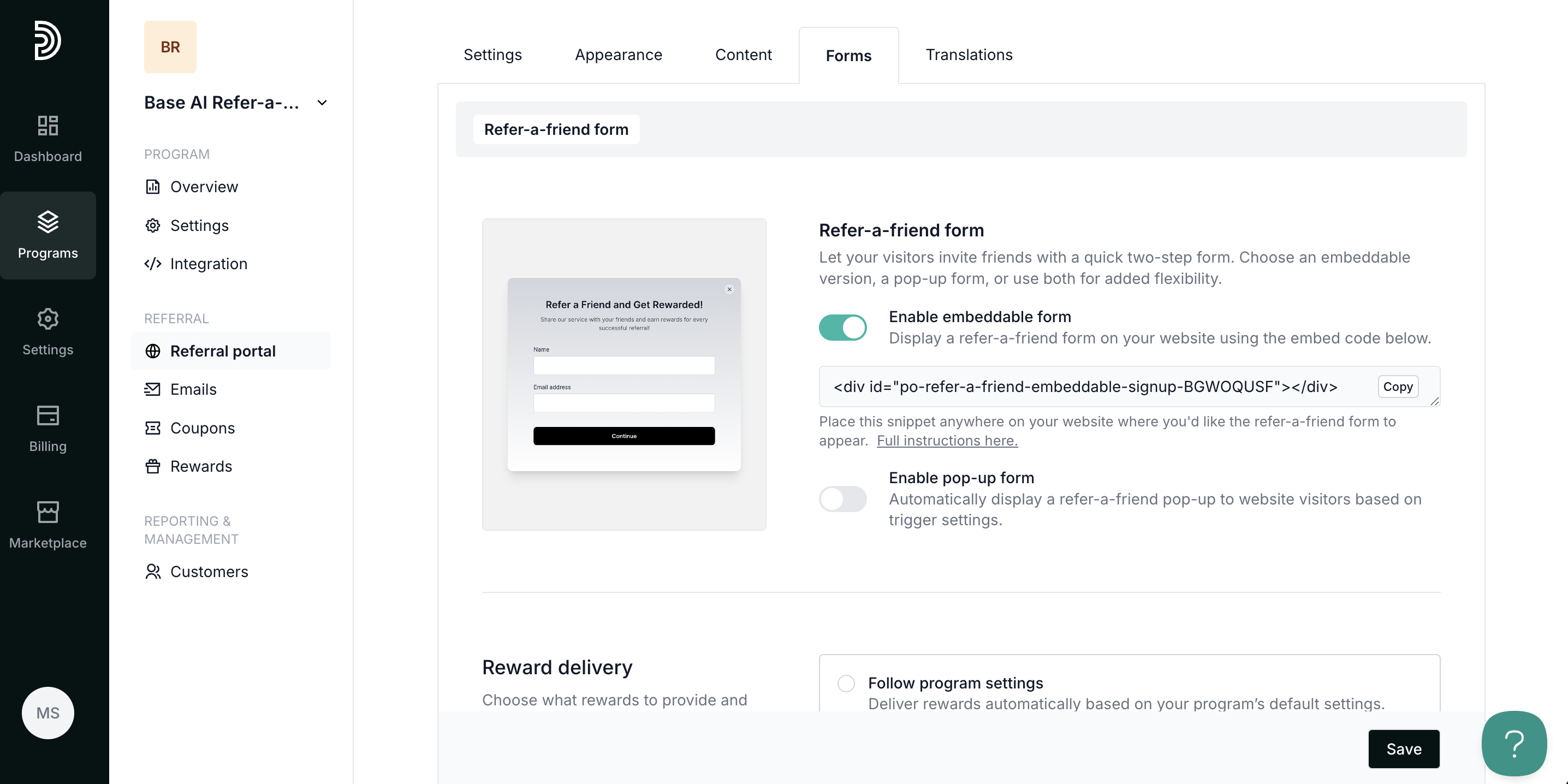 Set up a quick two-step form for your visitors to invite friends. Choose an embeddable version, a pop-up form, or use both for added flexibility. In this article, we'll review how to enable and customize the forms, rewards, and the process.