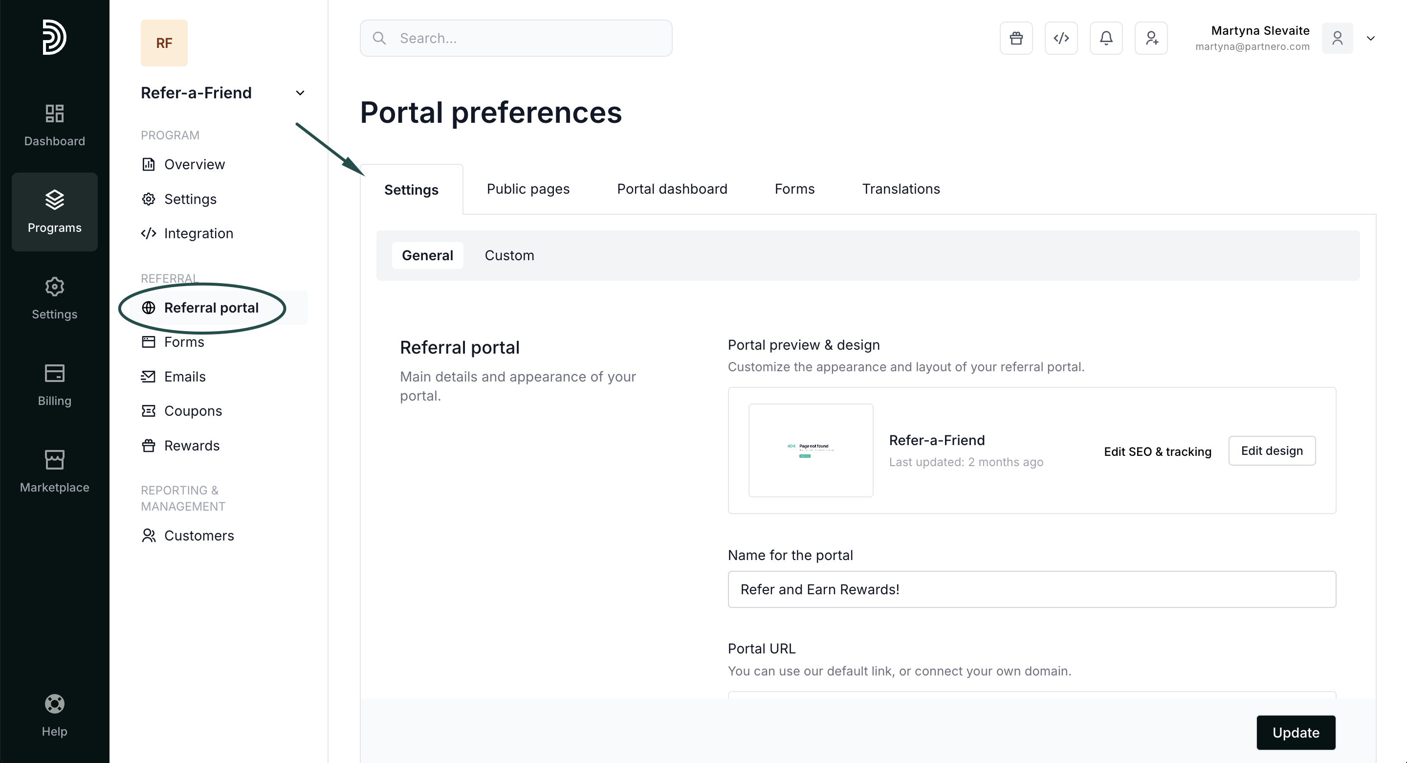 Customize the referral portal