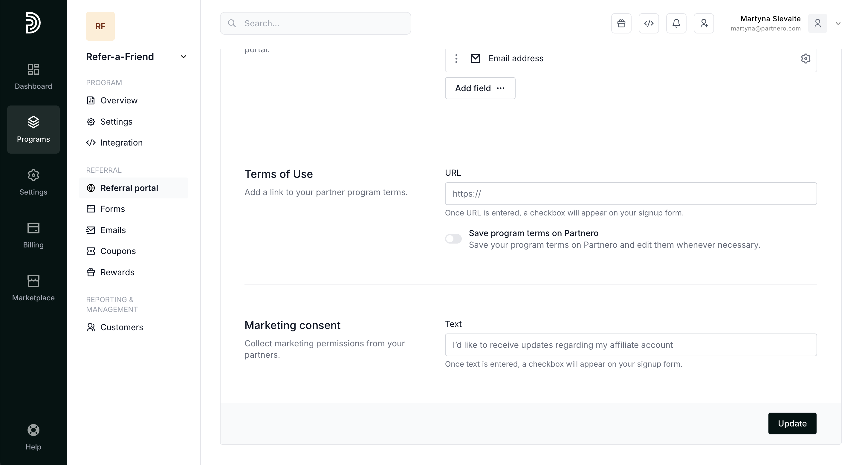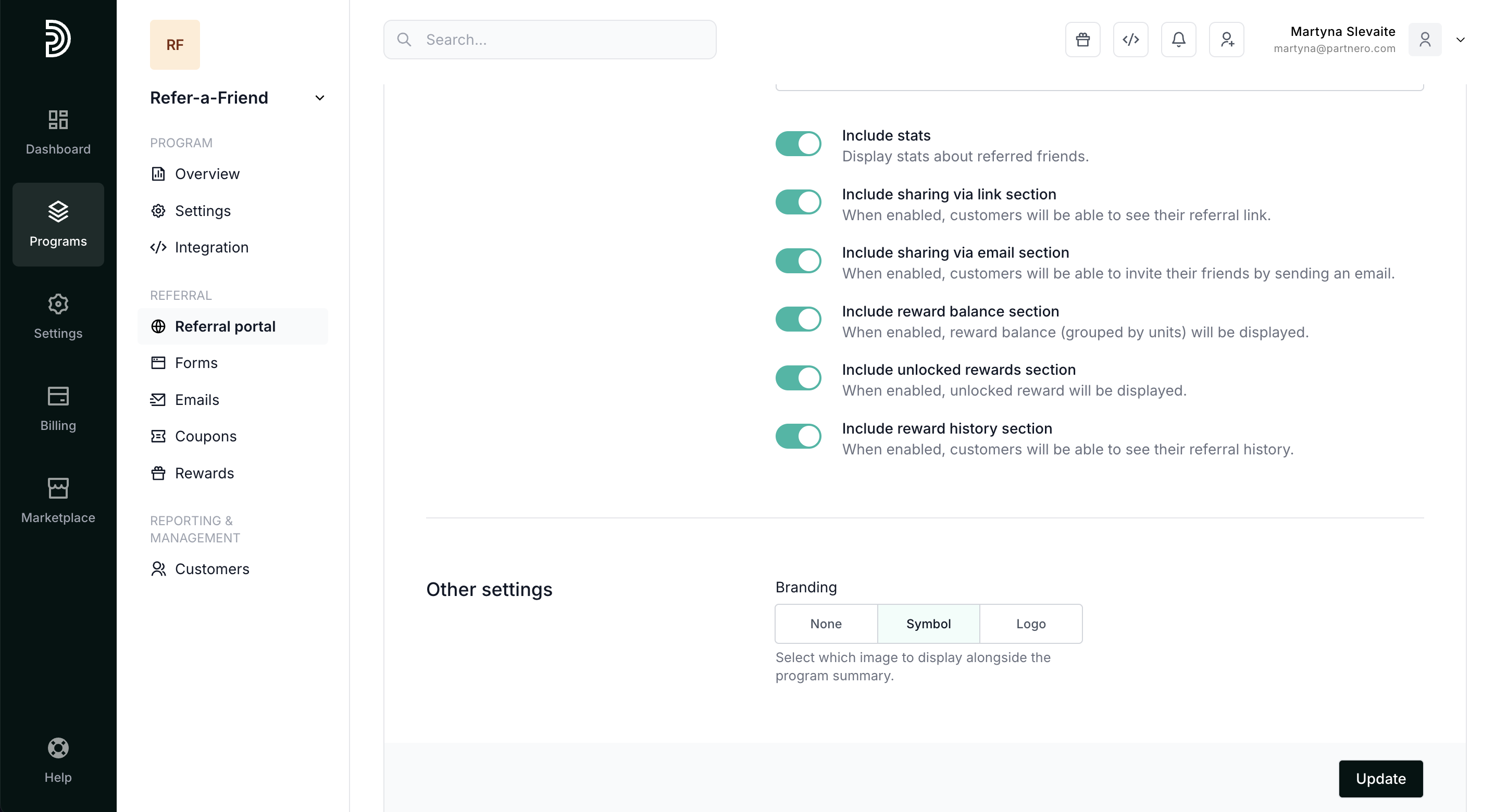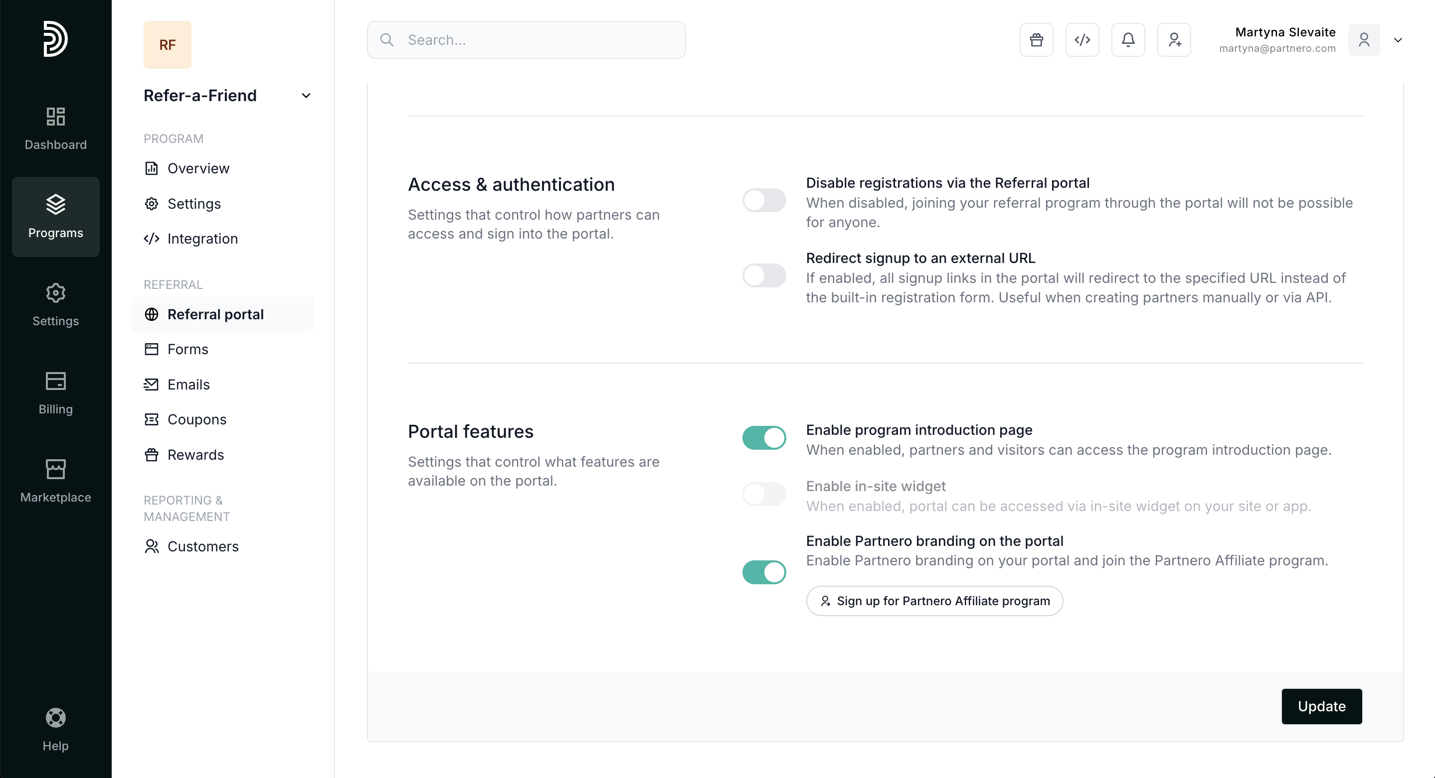 When enabled, Partnero branding will be shown on the portal and you will automatically participate in our Affiliate program.