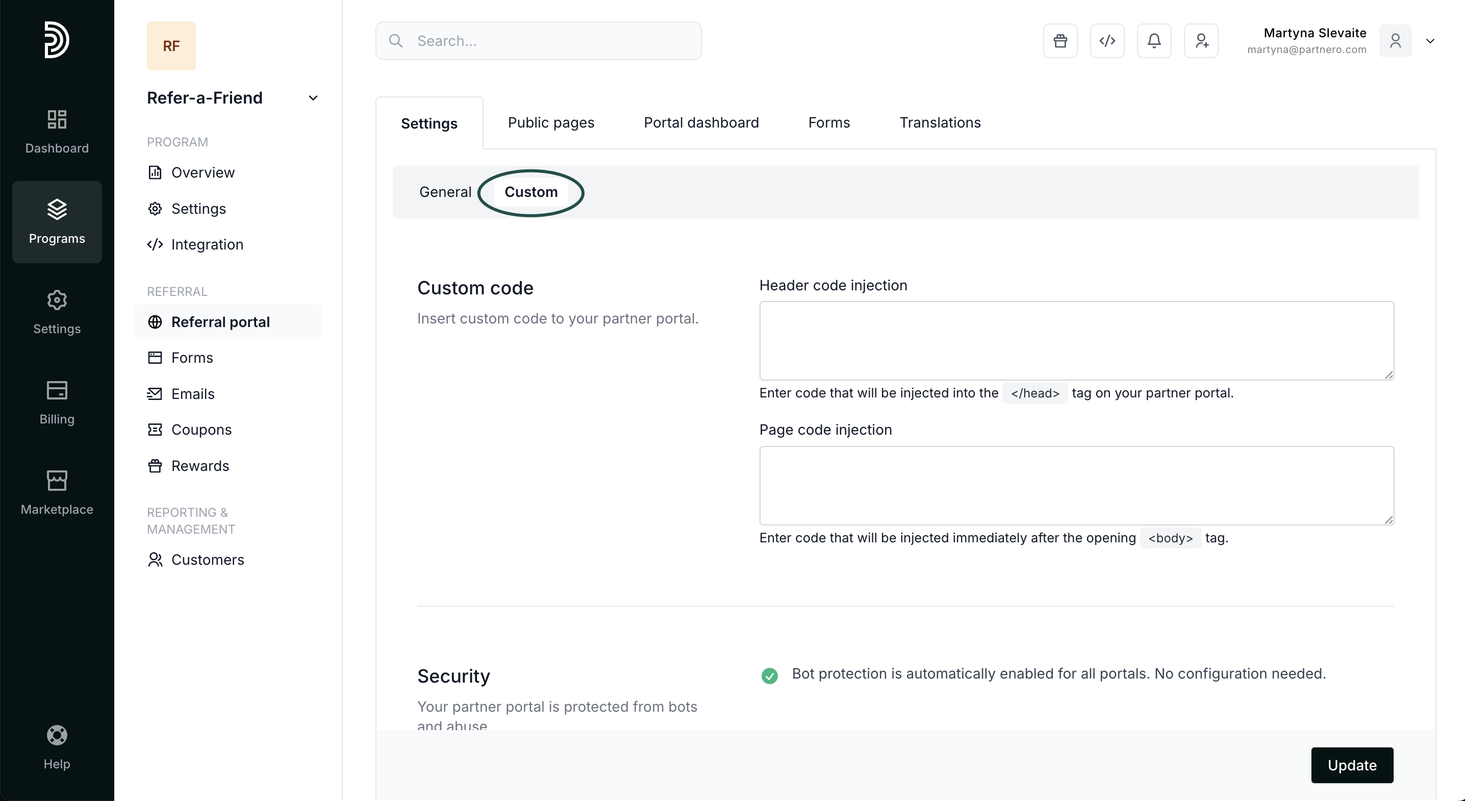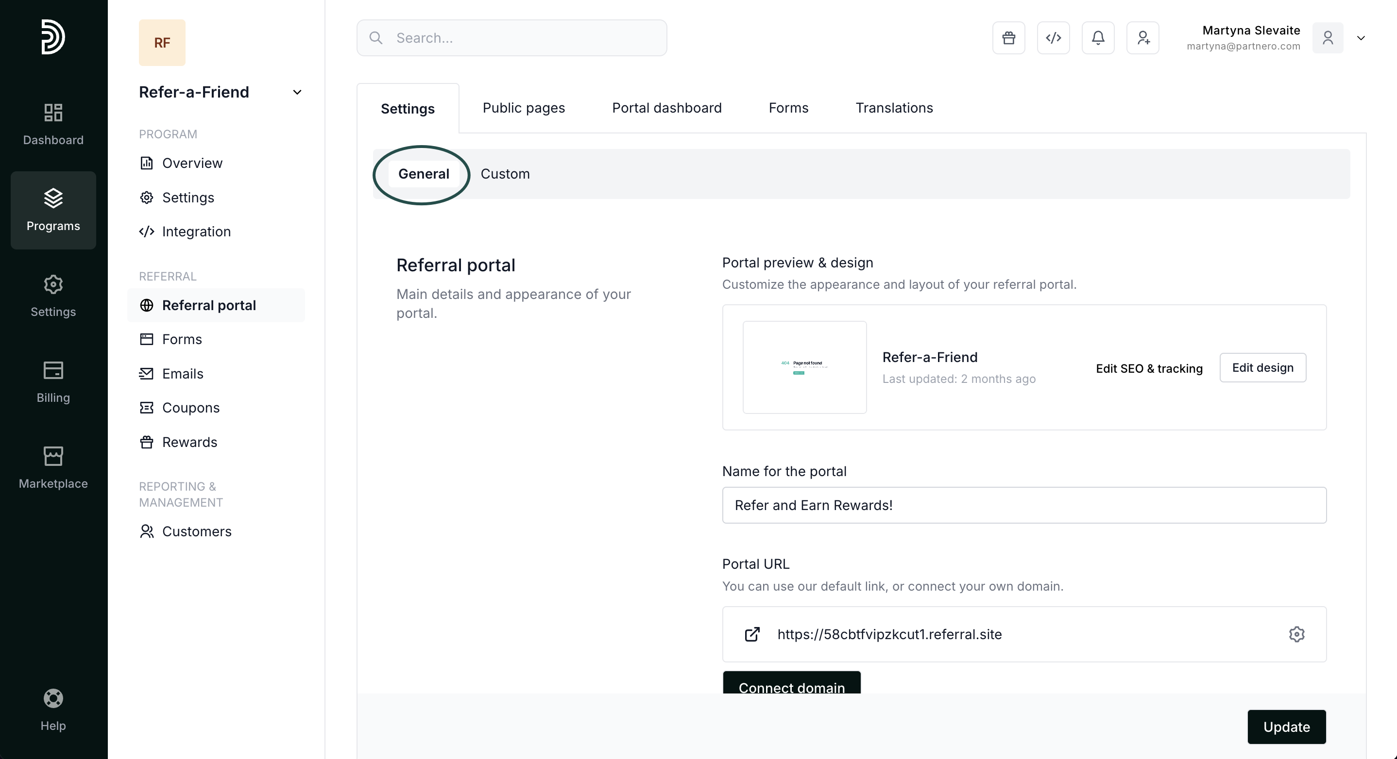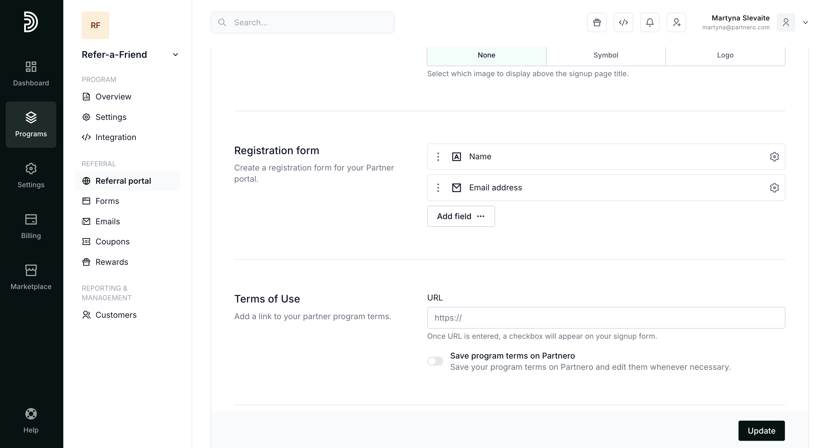 When enabled, Partnero branding will be shown on the portal and you will automatically participate in our Affiliate program.