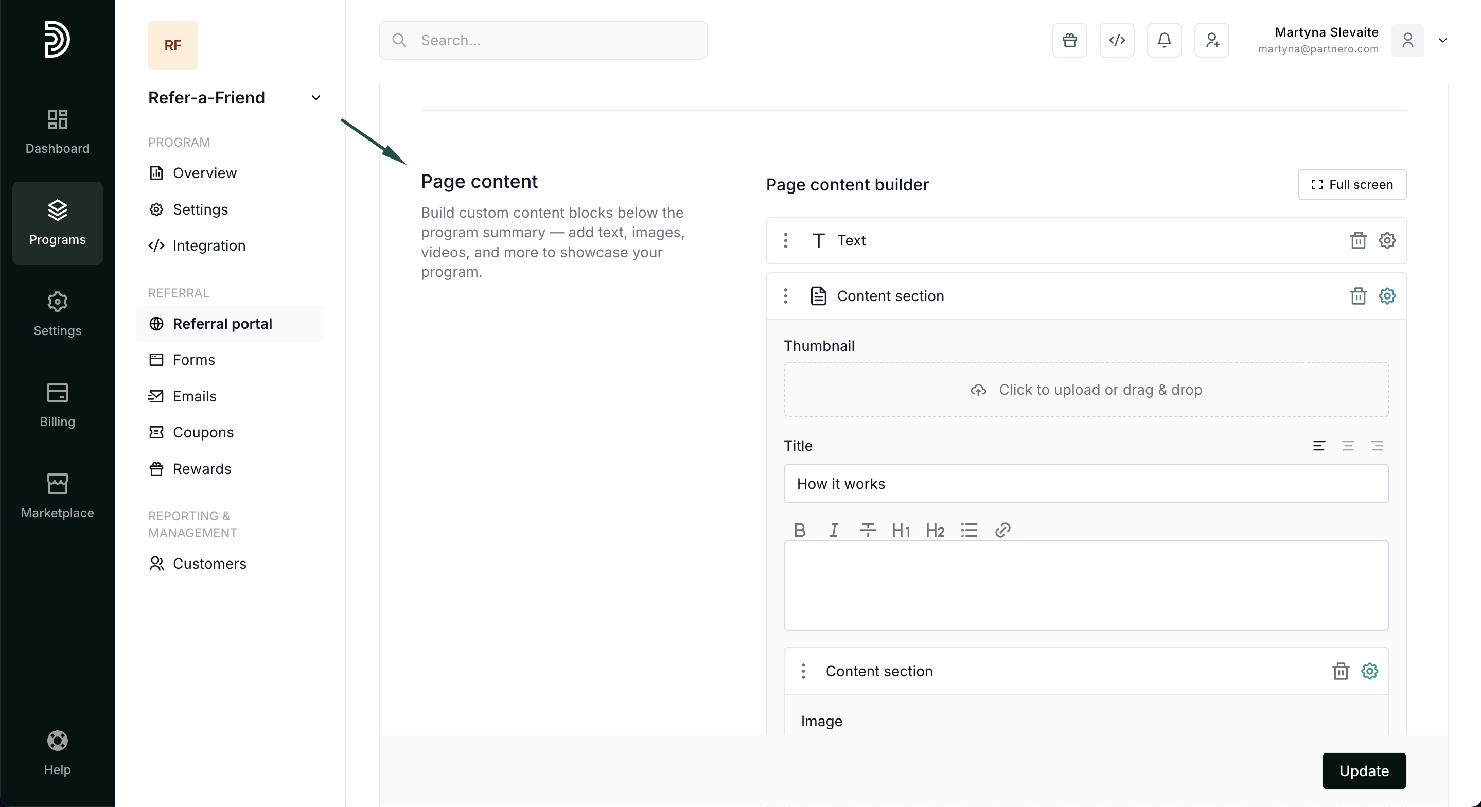 Contact information: add contact details, such as email address or phone number. The information added here will be visible to your customers on the referral portal.