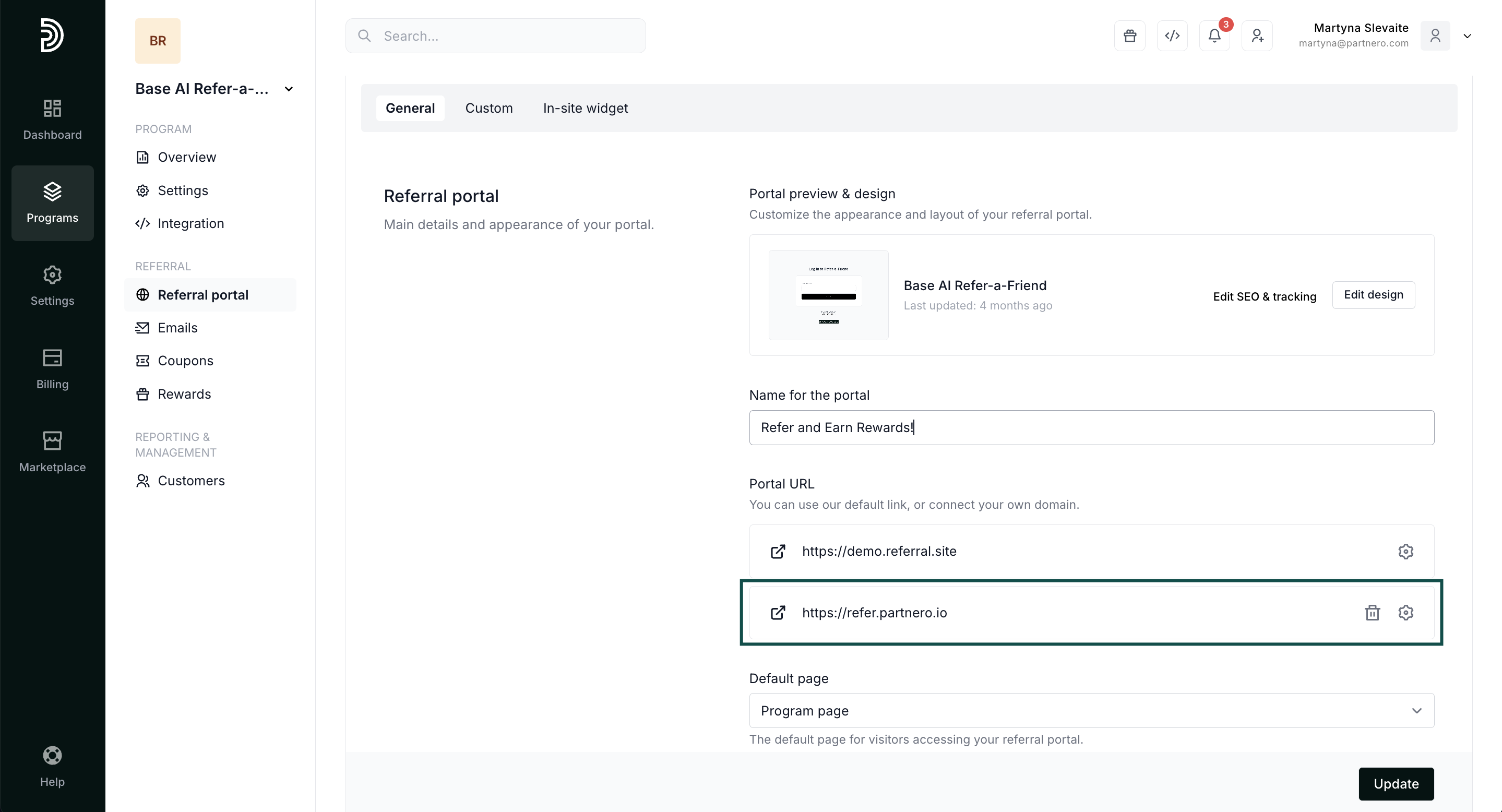 By default, the referral portal is hosted on a referral.site domain. You can connect your domain to ensure seamless branding.
