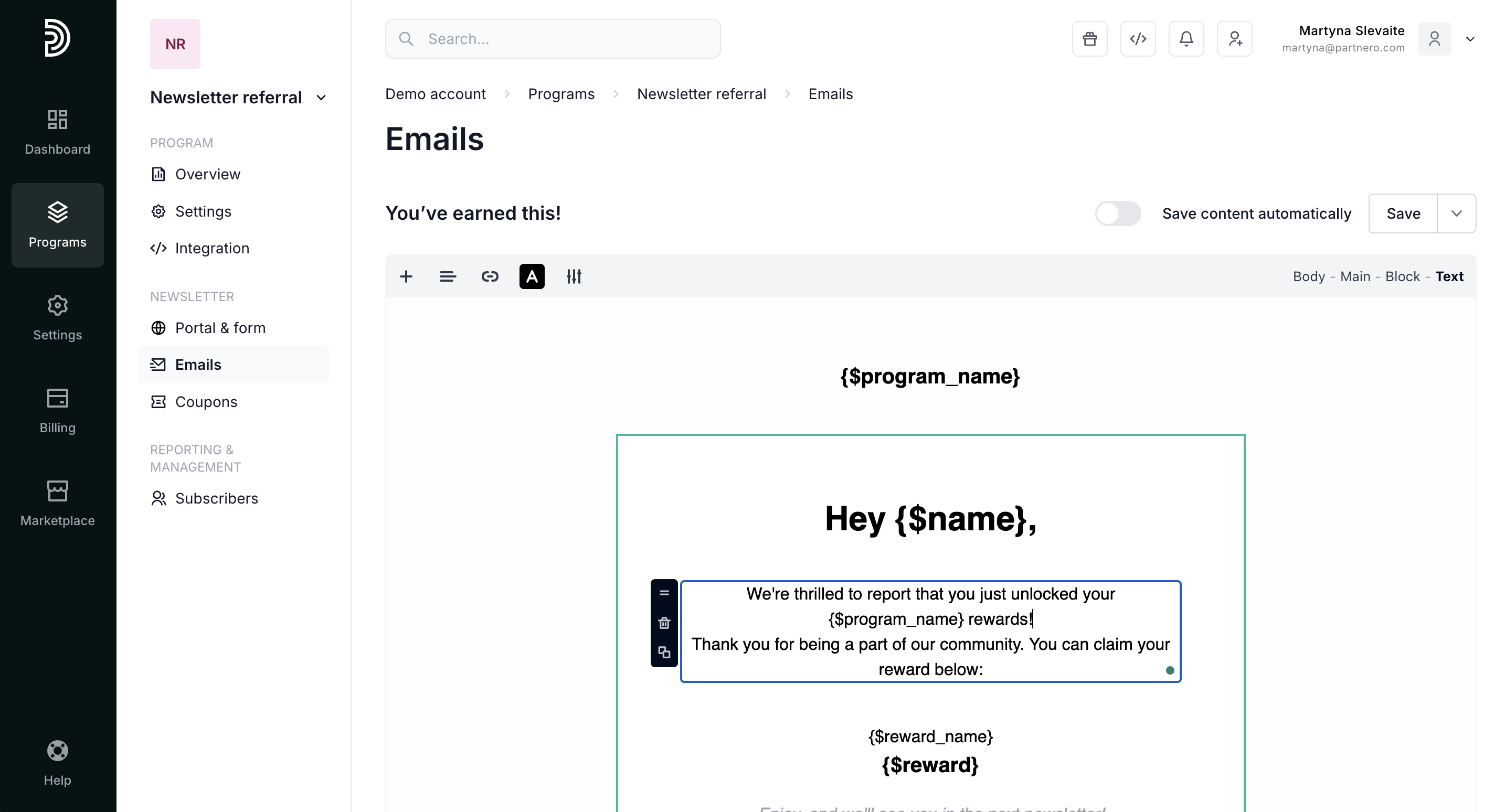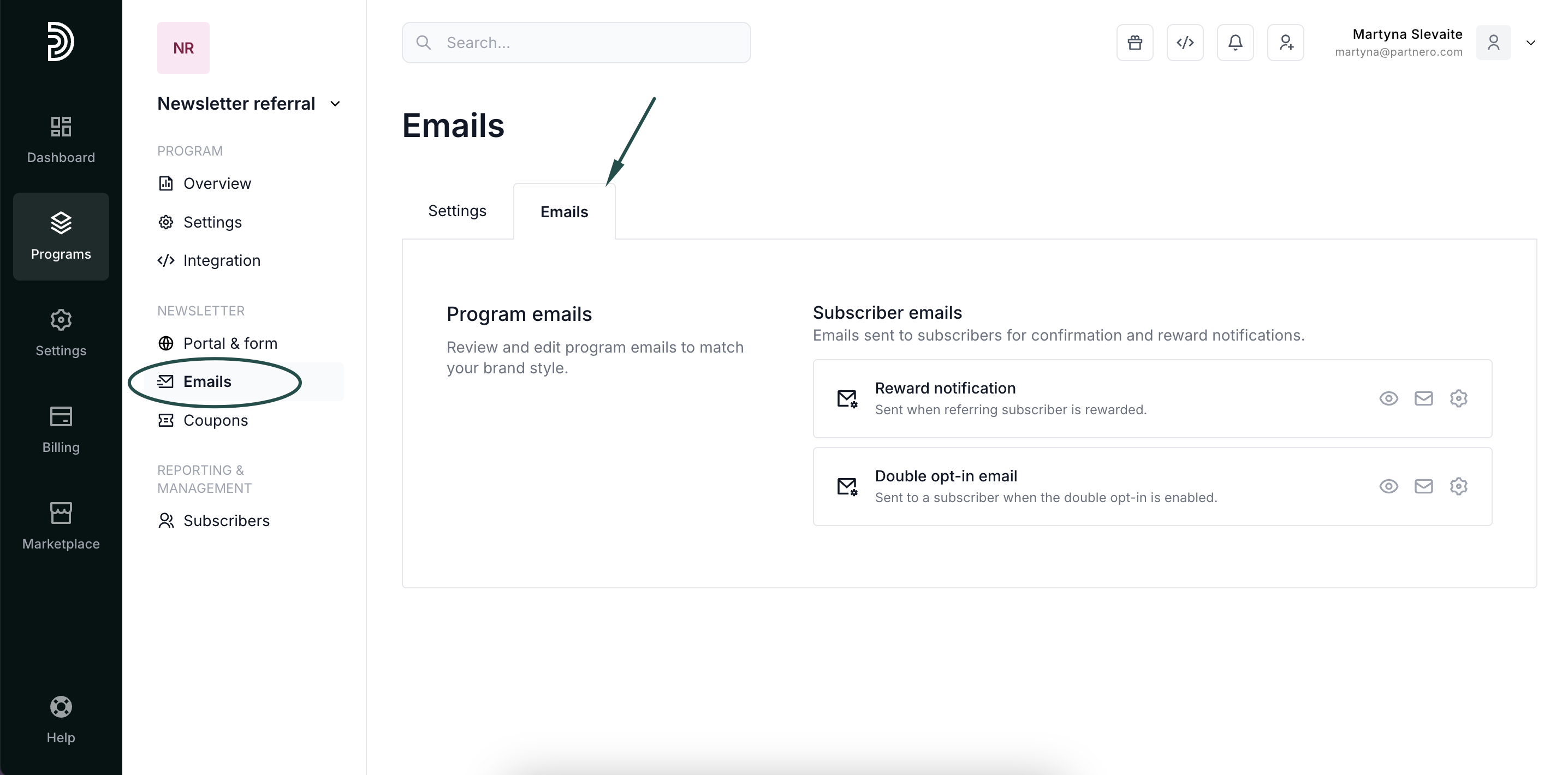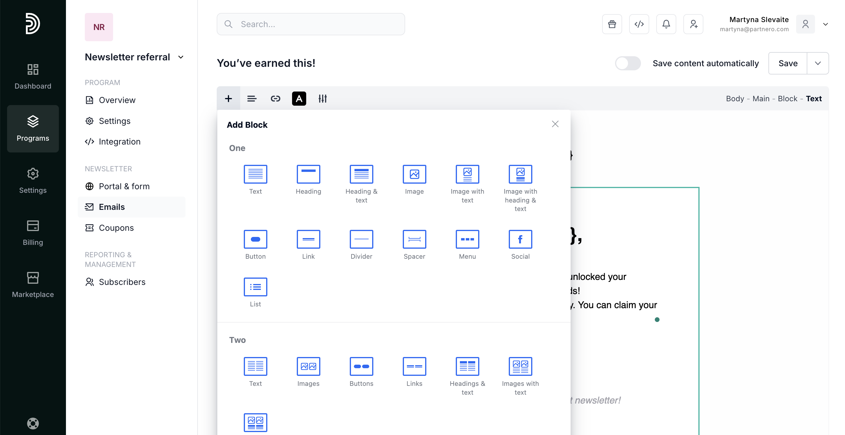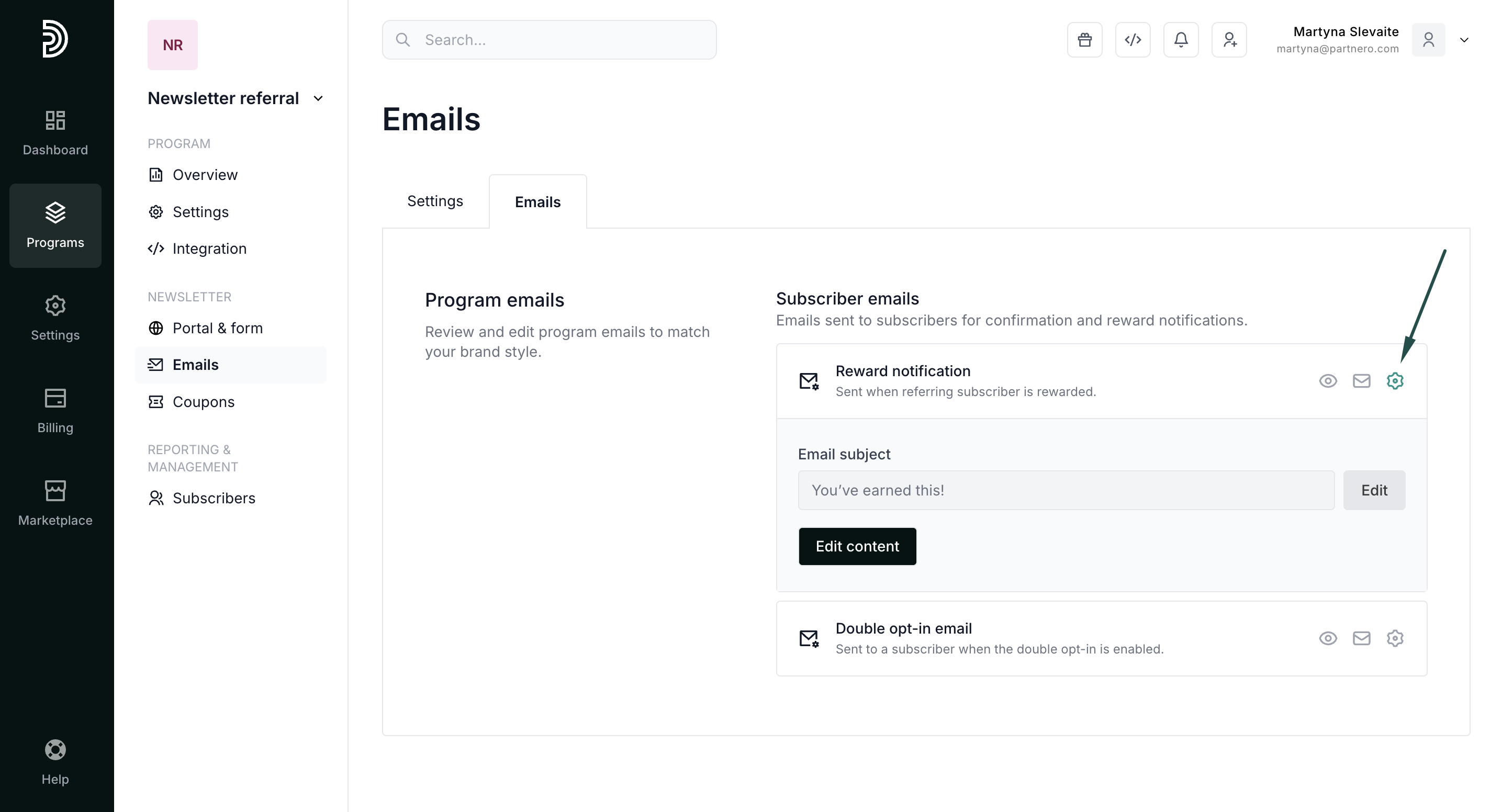 - Open the newsletter referral program you'd like to work with.