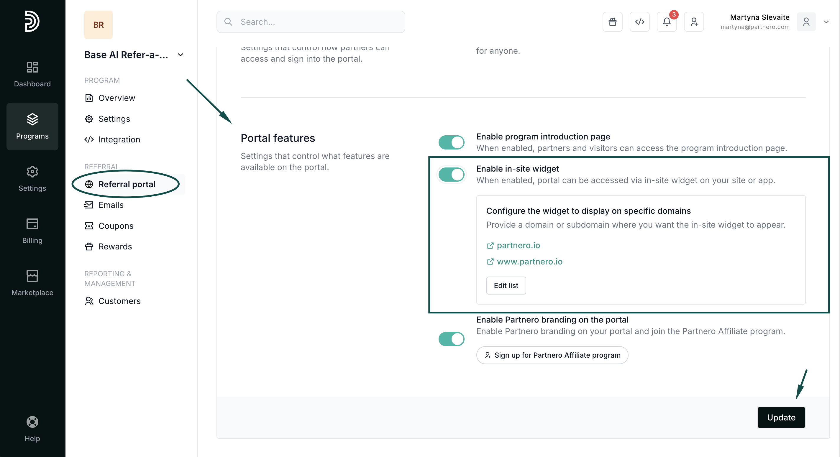 - Enable the referral portal for your refer-a-friend program;