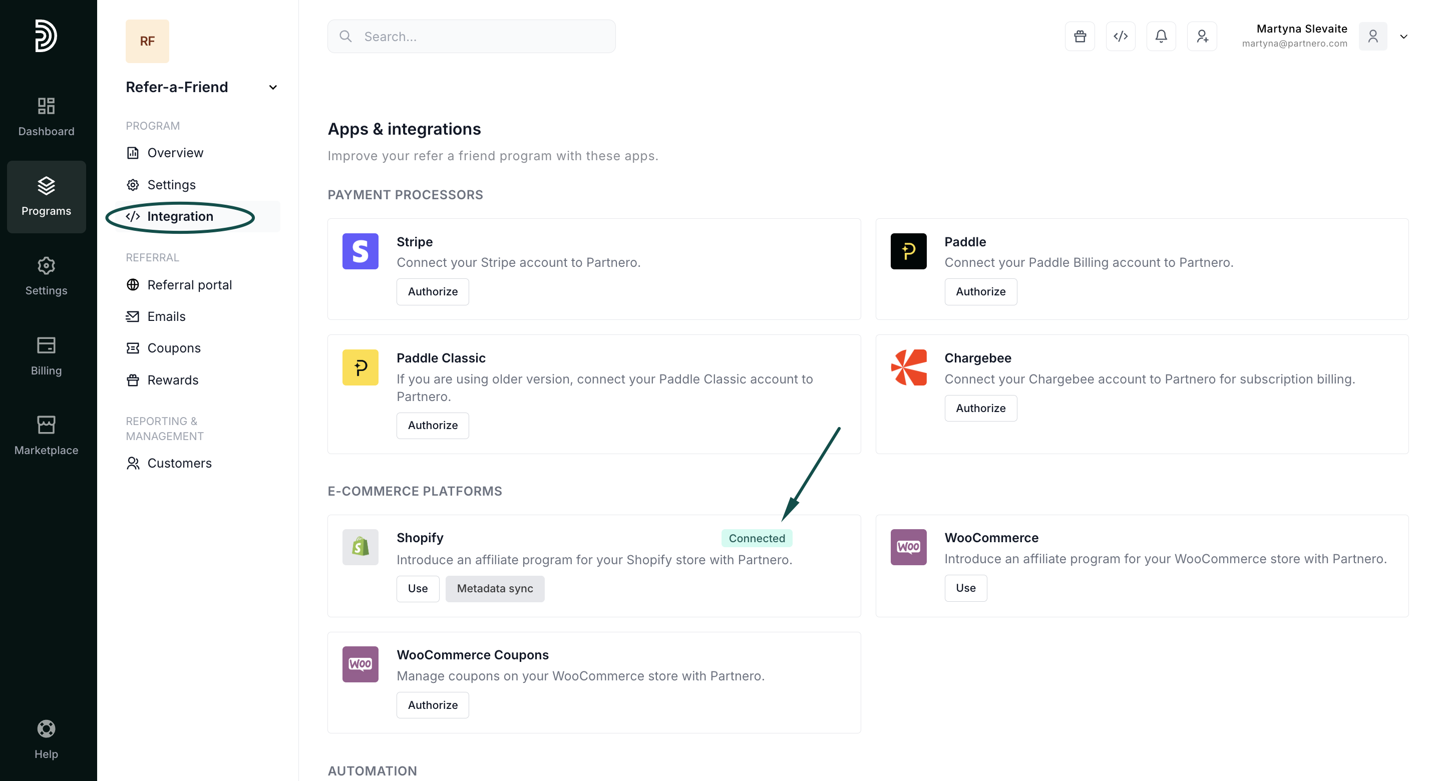 The first step is to connect your Shopify and Partnero accounts. To do that, you need to install our Shopify app. You can find detailed instructions here.