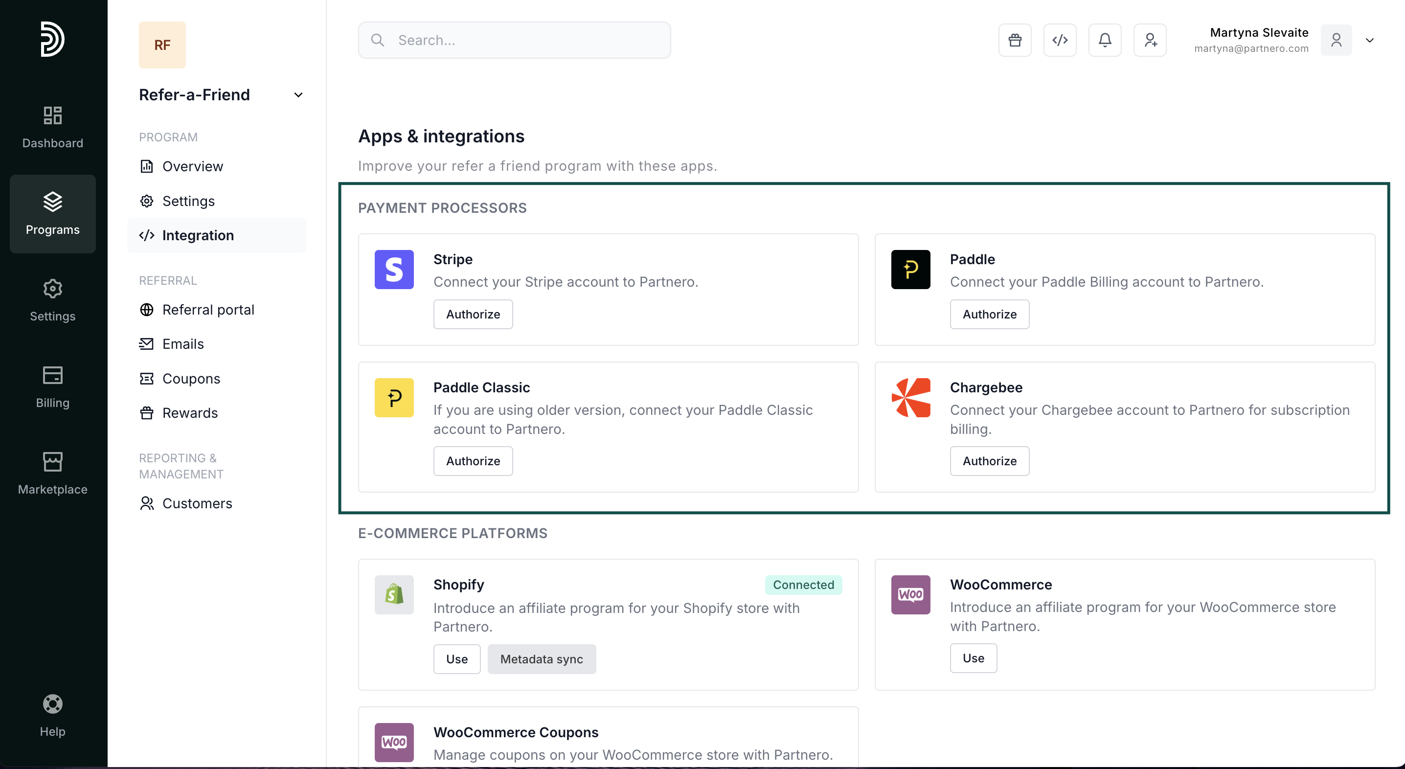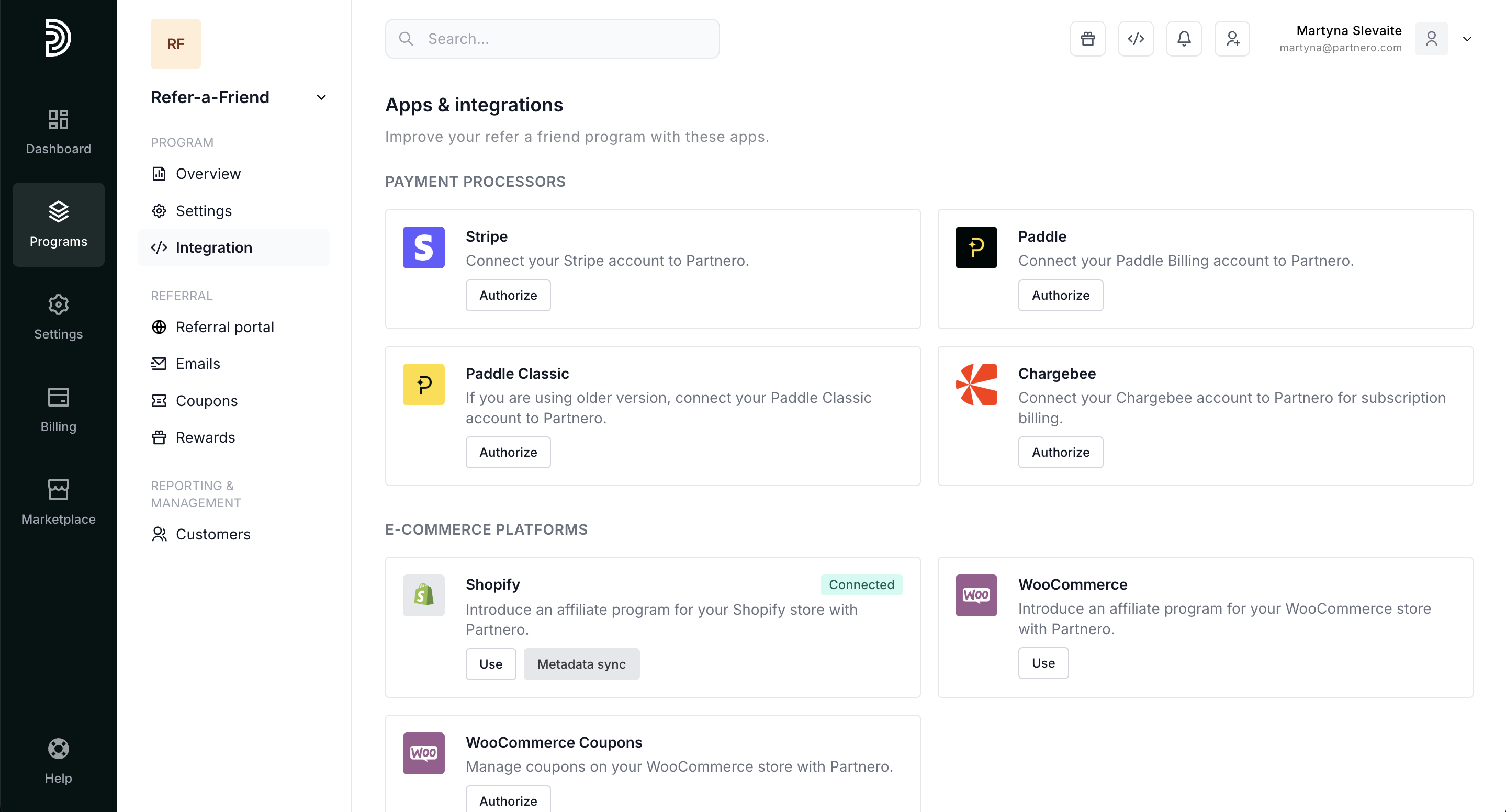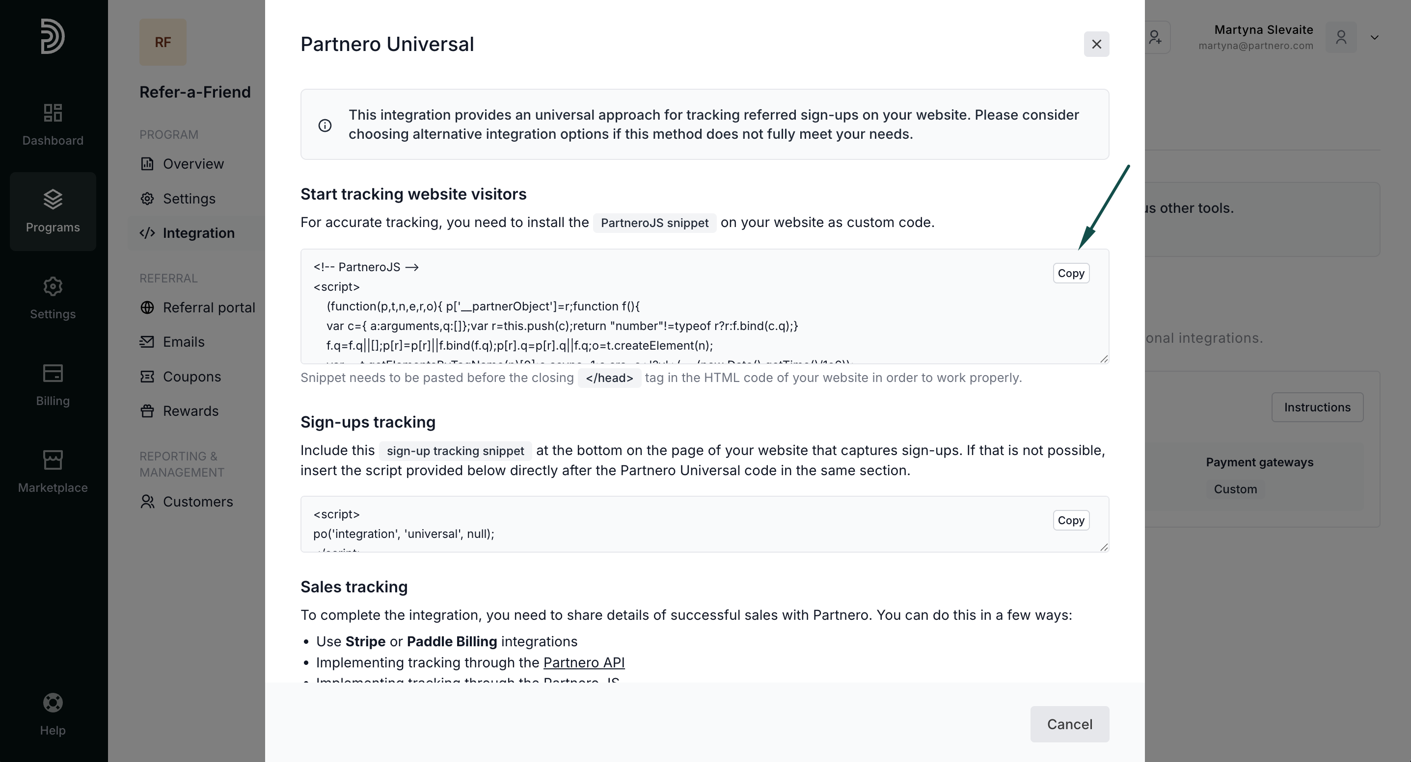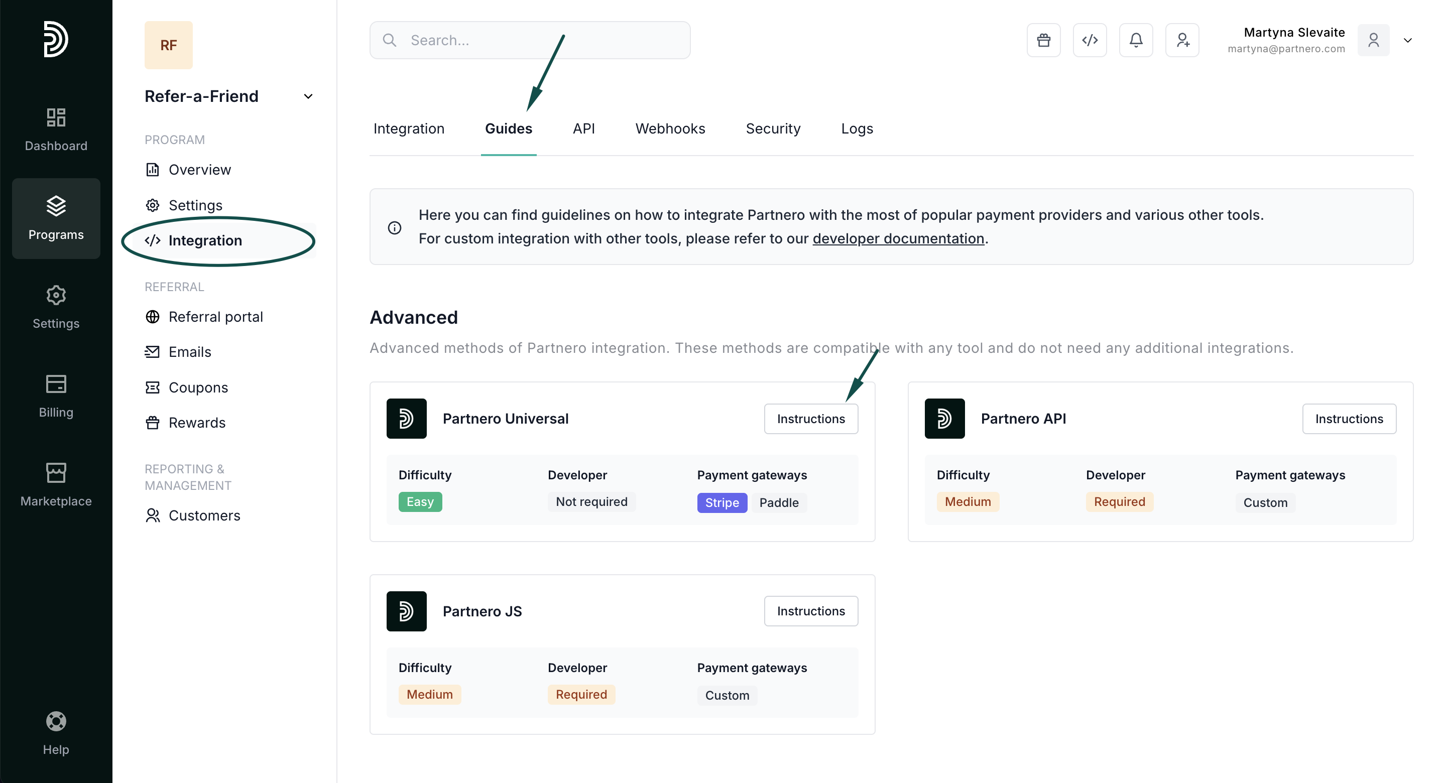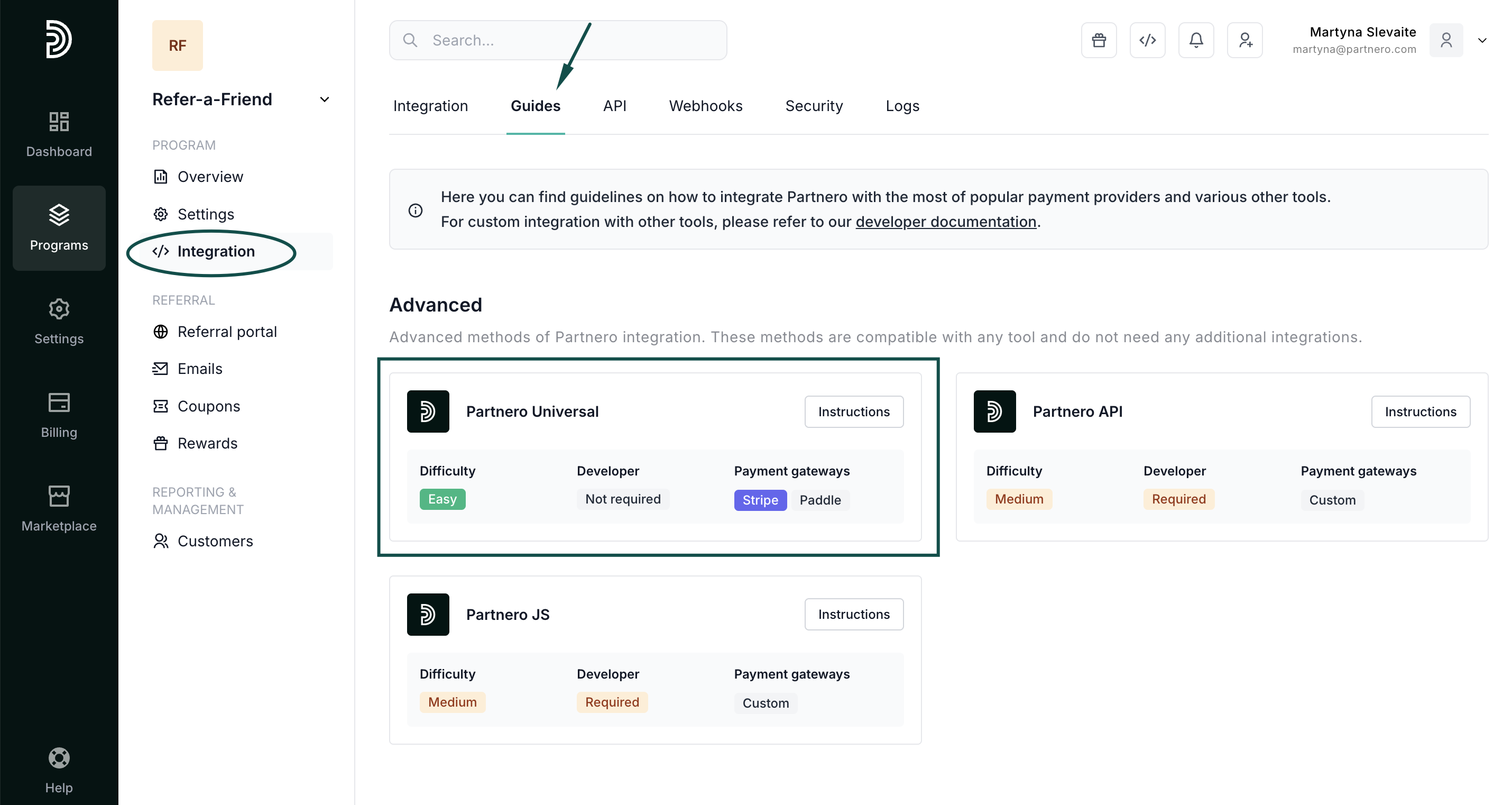 We offer a Partnero Universal integration. Instructions can be found on the Integration page, Guides tab: