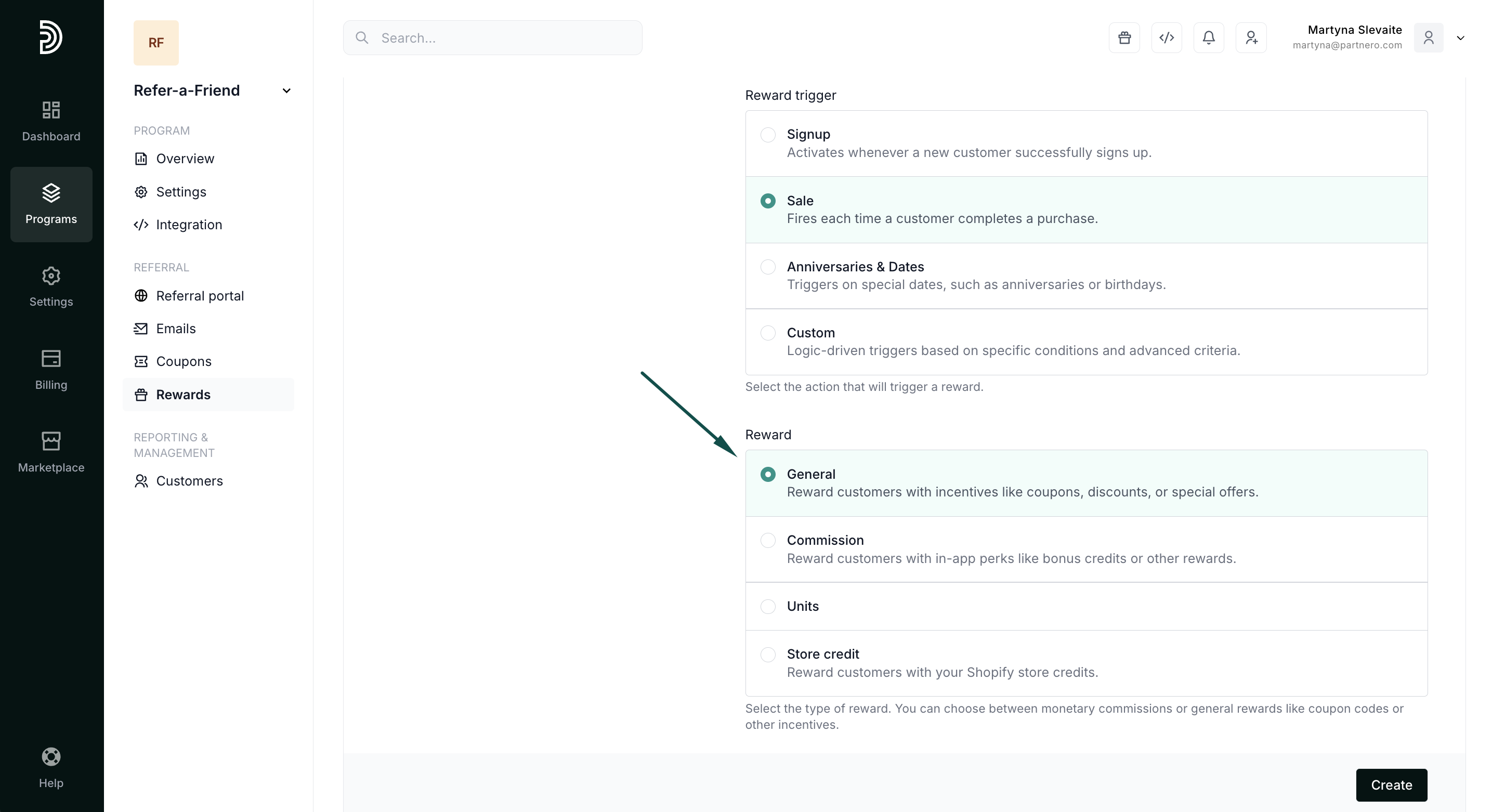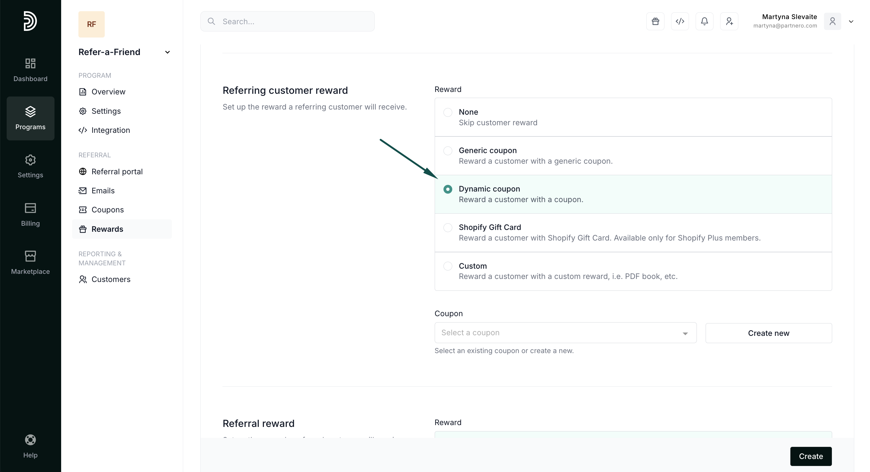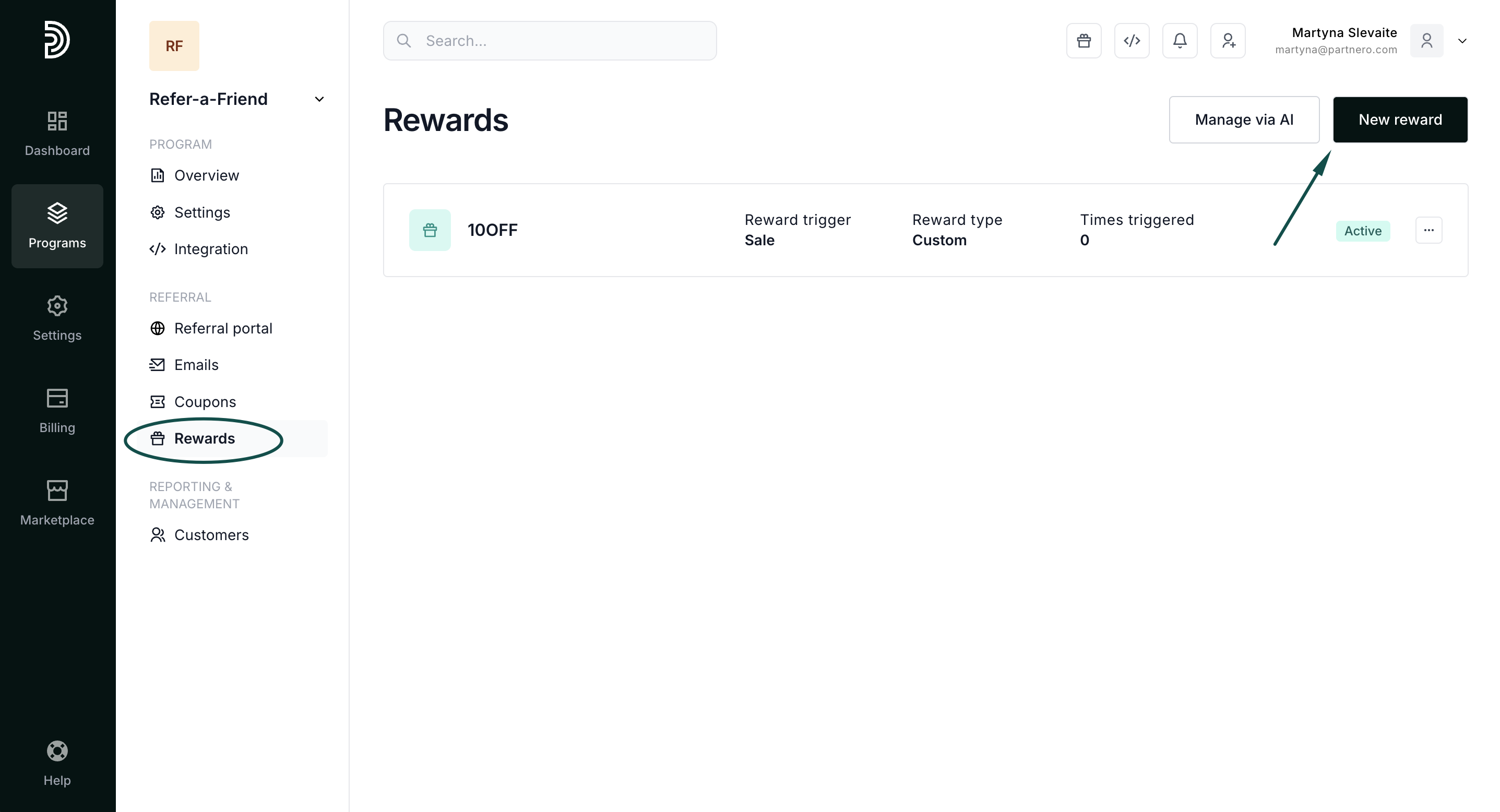 - Open your refer-a-friend program and go to Rewards under Referral. Click New Reward: