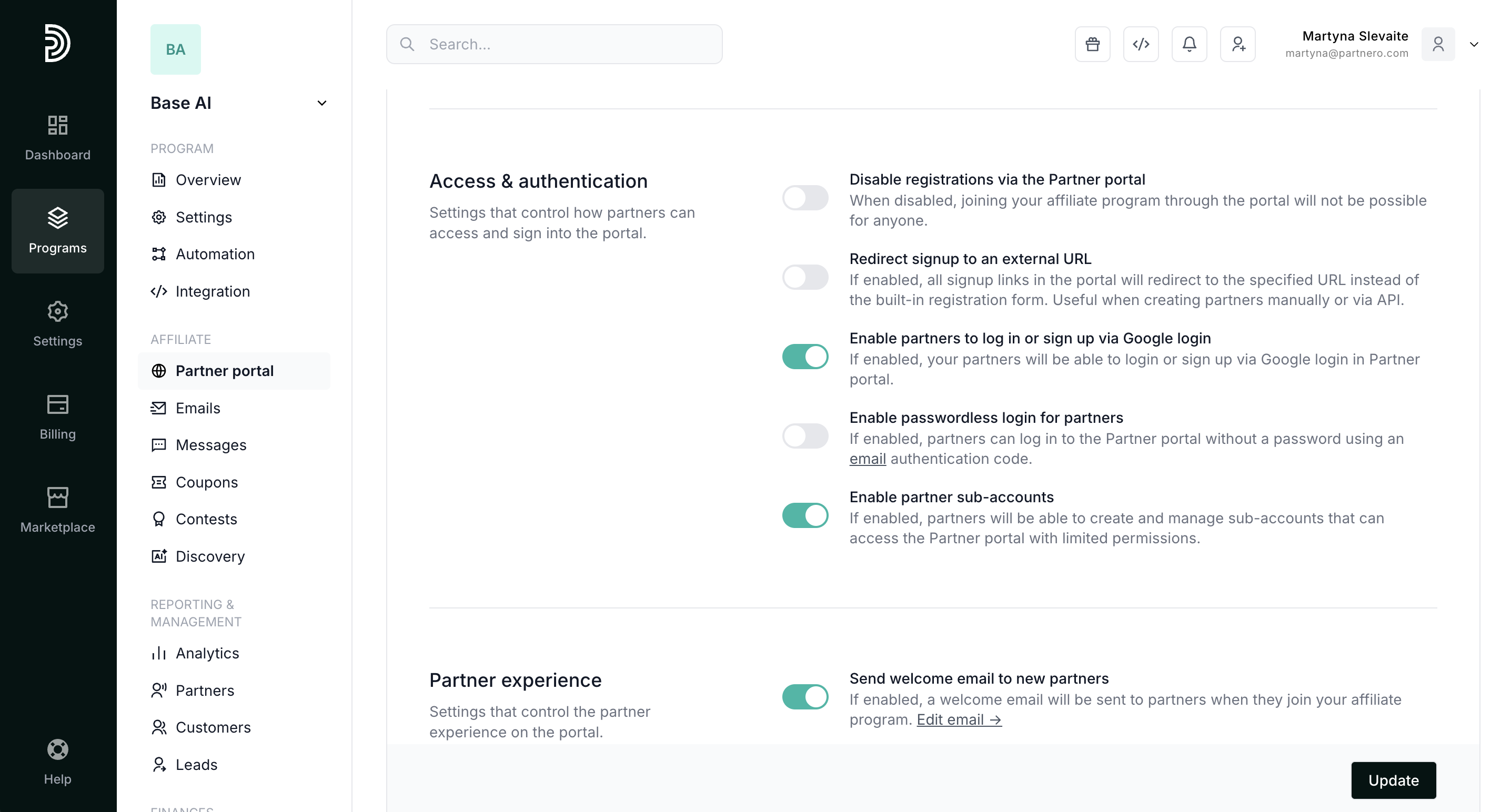 Partner portal: Settings