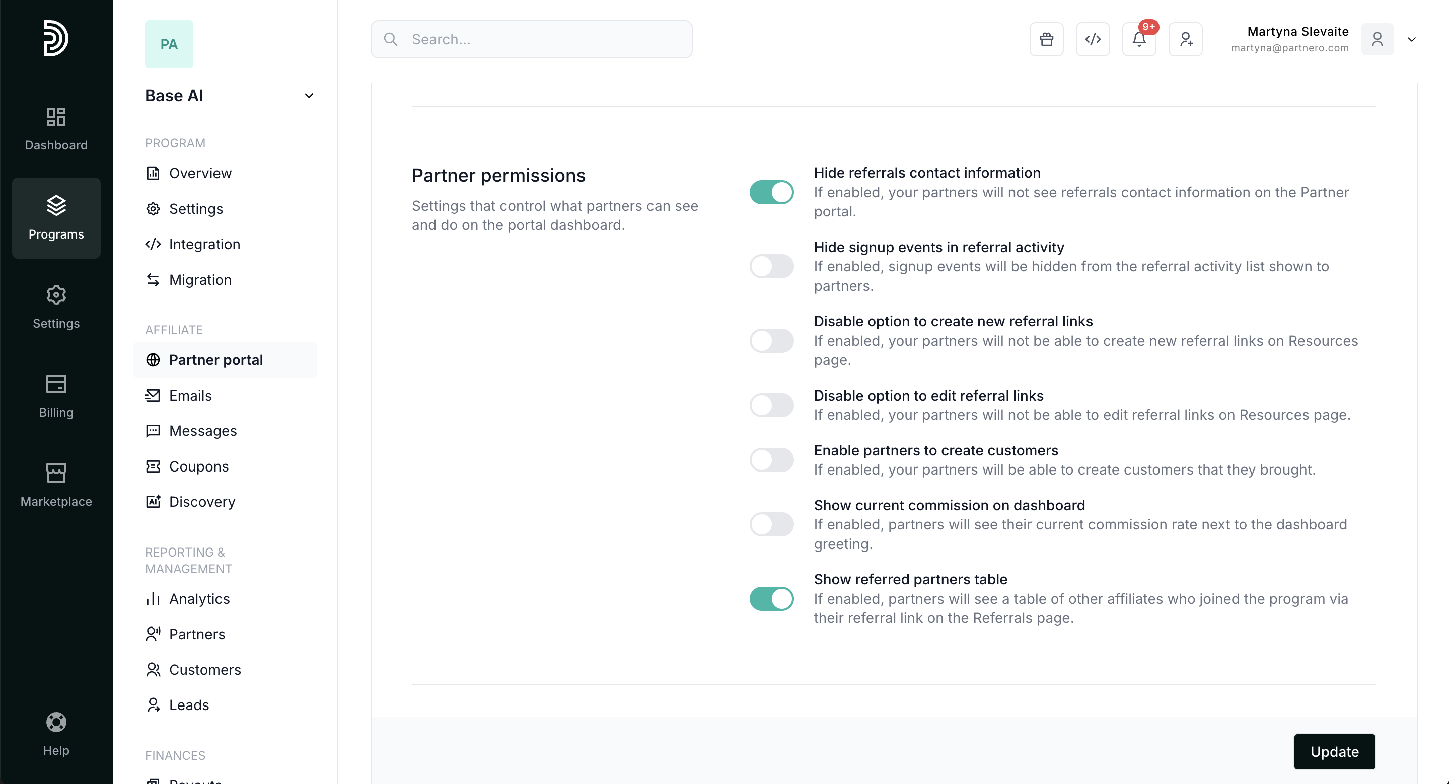 - Enable email notifications for partners: if enabled, partners can enable email notifications about new signups, sales, and other events in their profile settings. Read more.