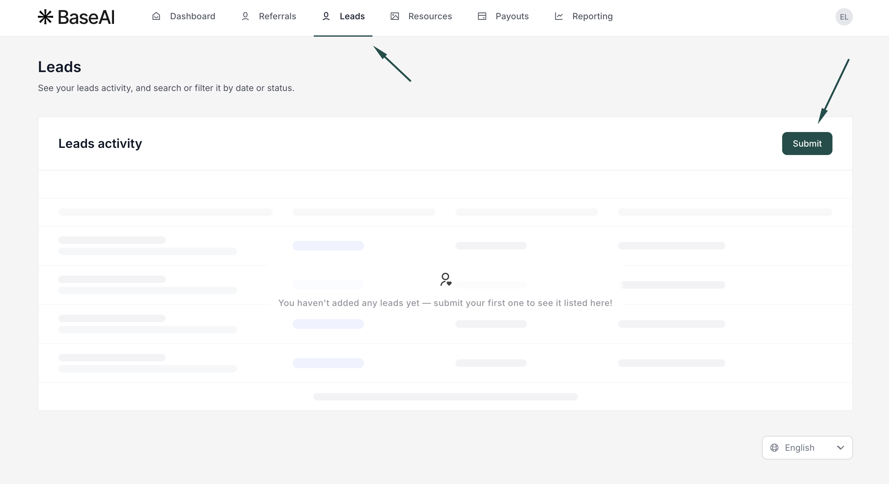 - Additionally, existing affiliate partners have the option to submit leads directly on the partner portal: