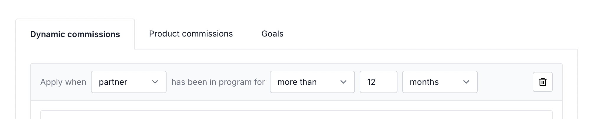 - Rolling period: This means that the condition has to be met within the set period. For example, the partner brought in more than X customers last month, or the partner generated more than X in revenue last year.