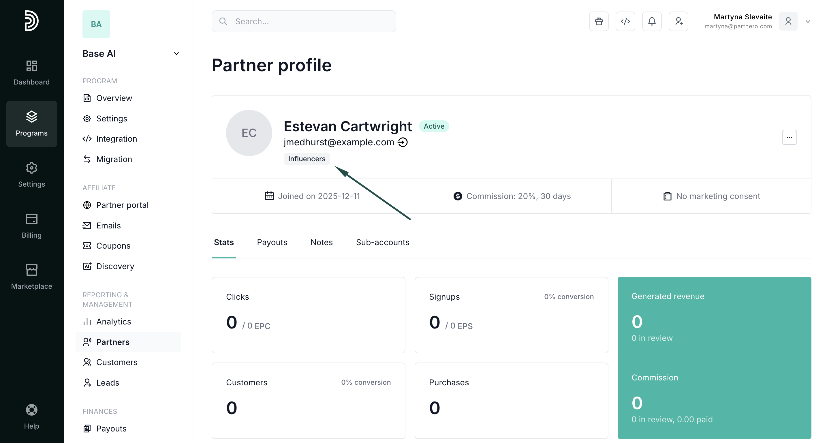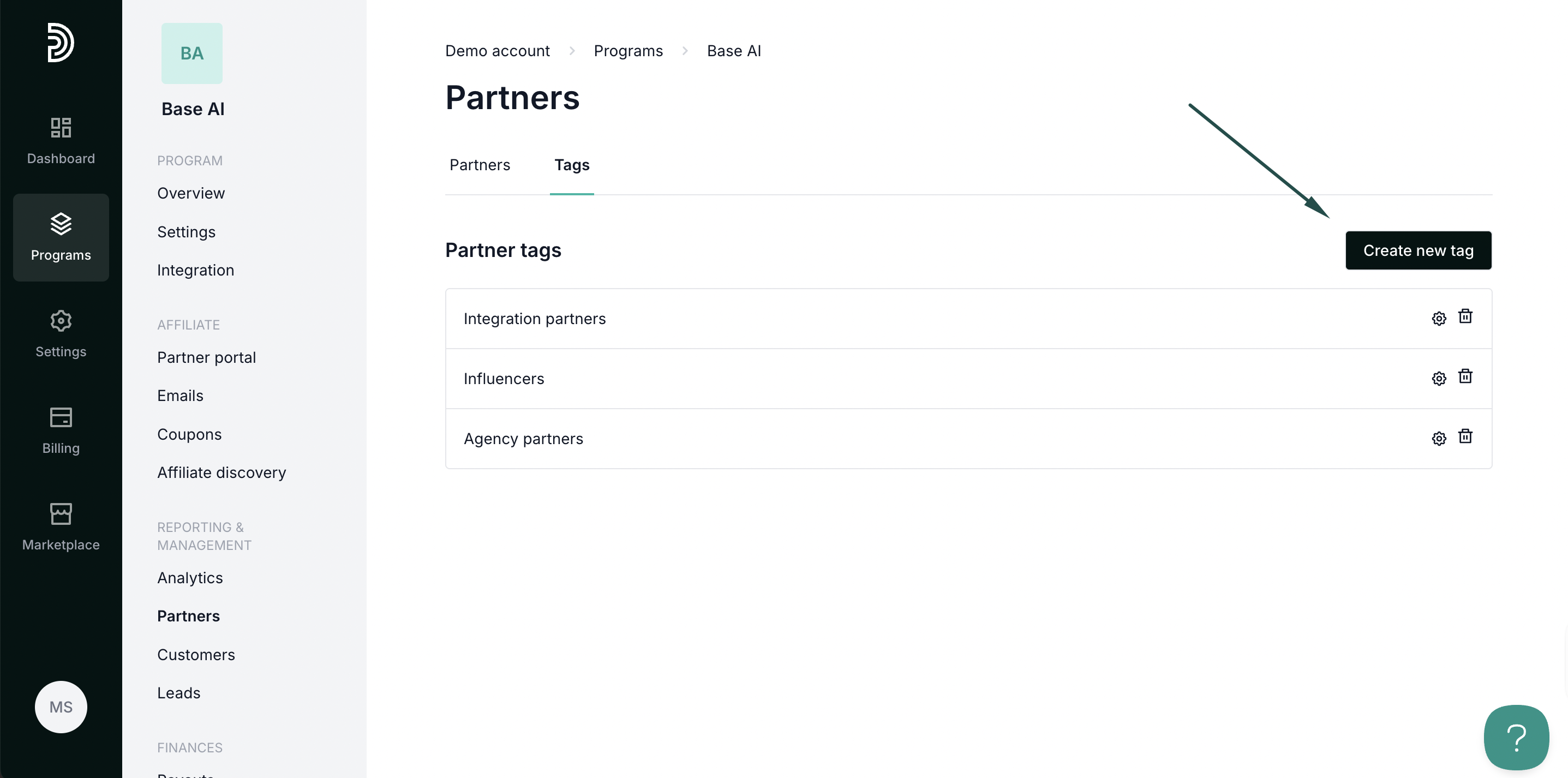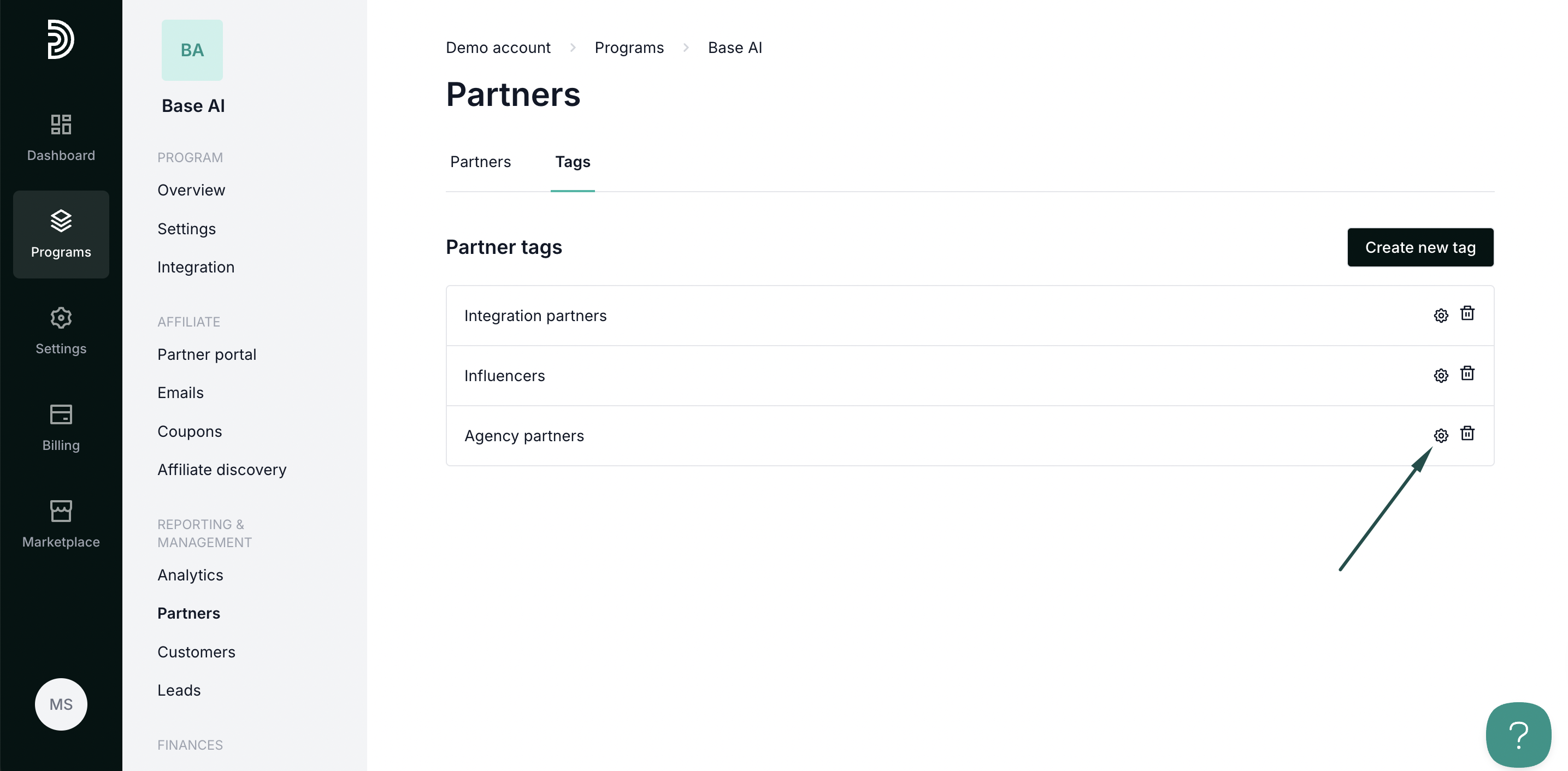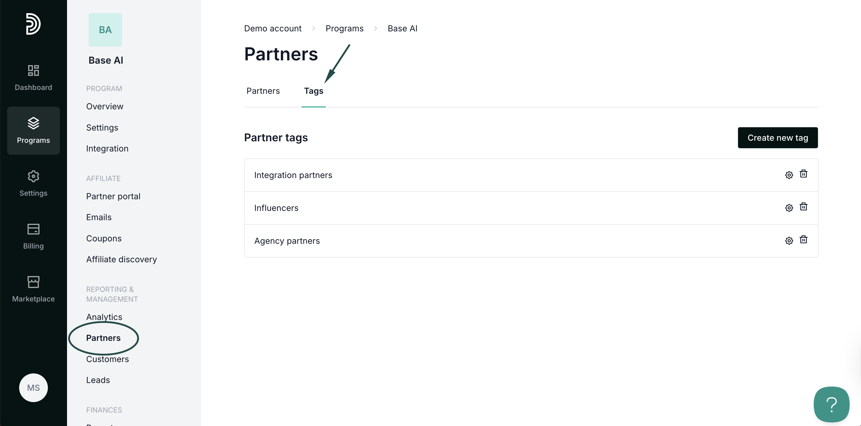 Partner tags enable you to tag and categorize your partners, allowing for more efficient management. This helps with filtering, segmentation, and setting different reward structures. For example, you can tag and offer different rewards to your integration partners, premium partners, and so on.