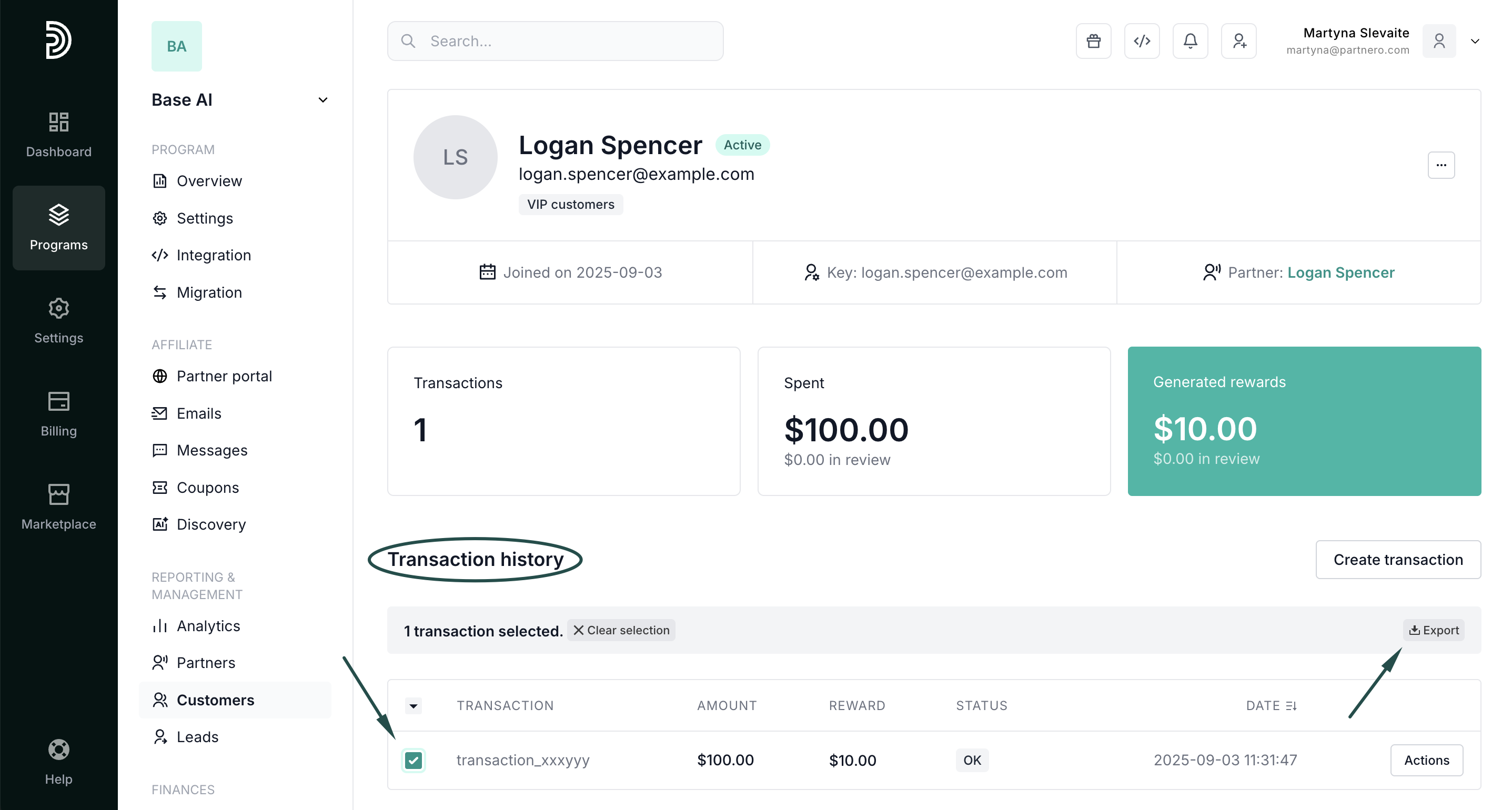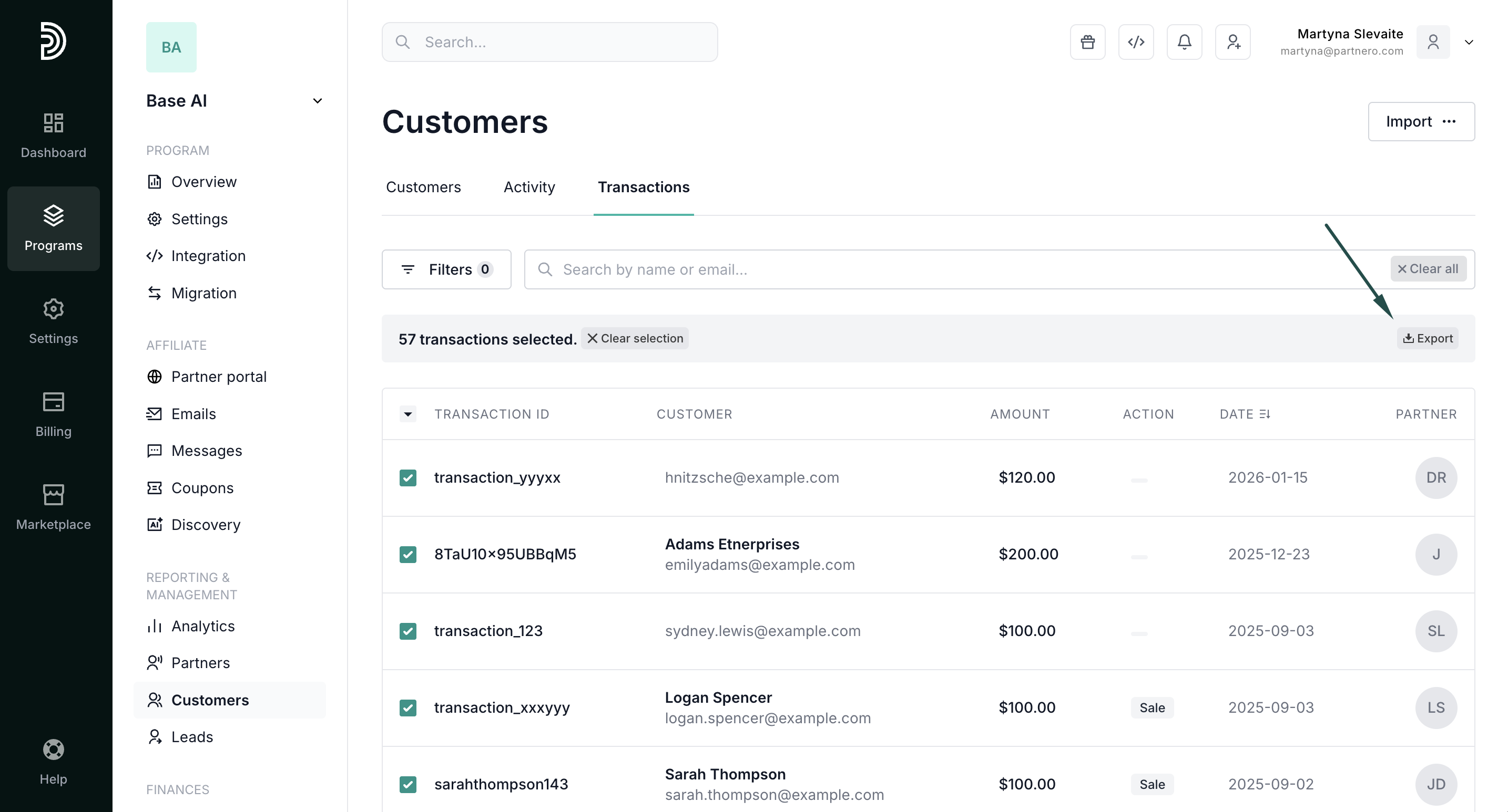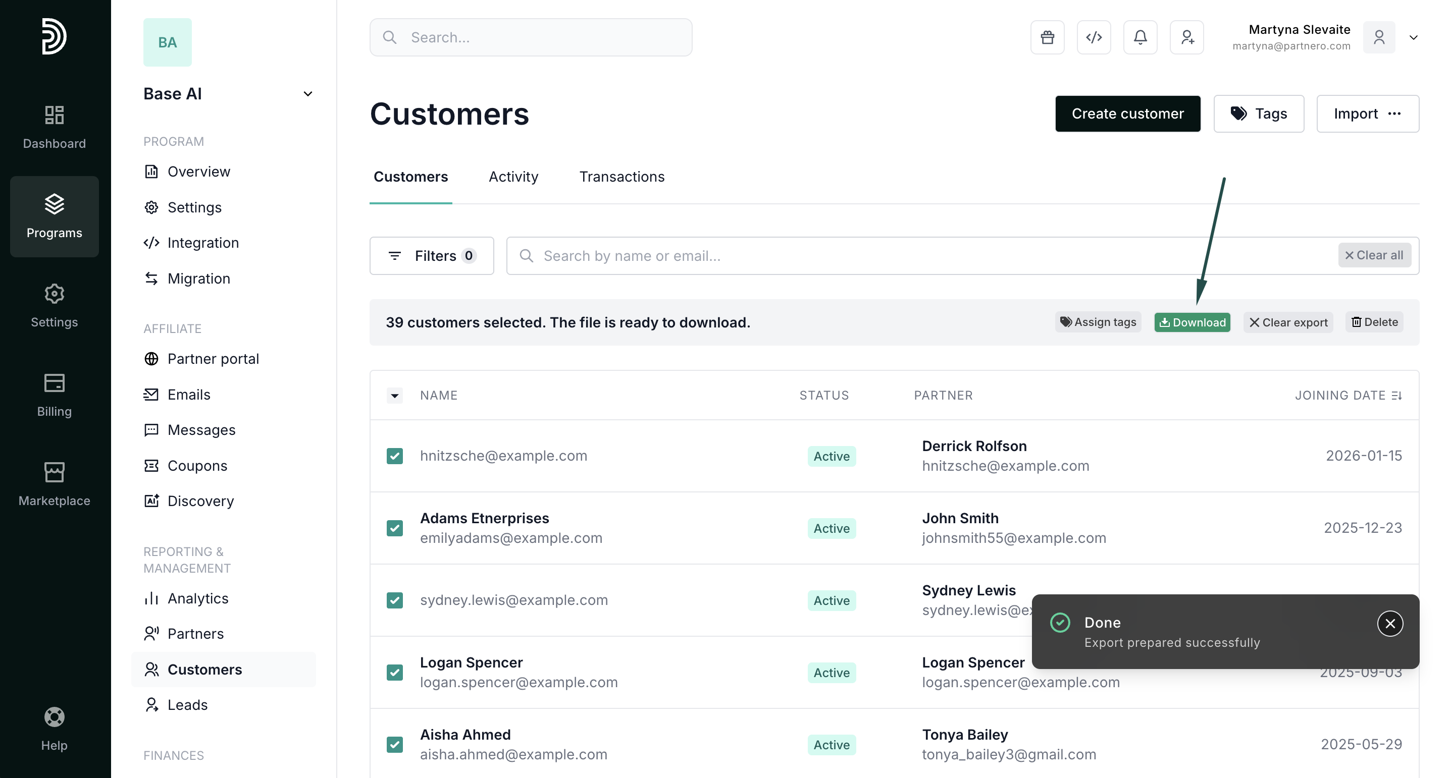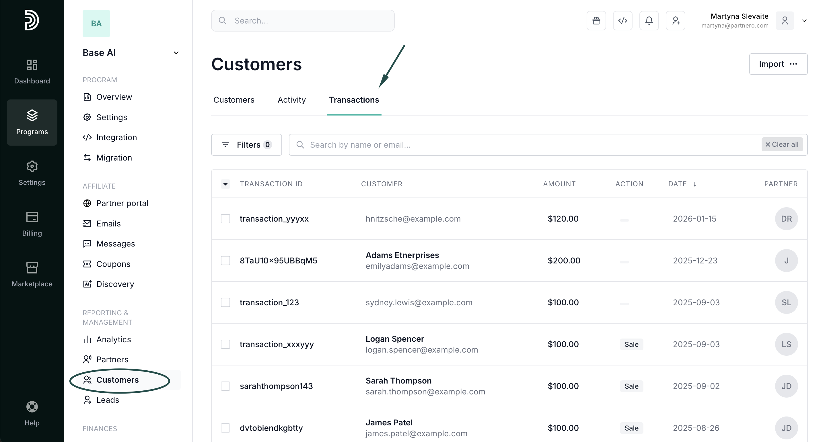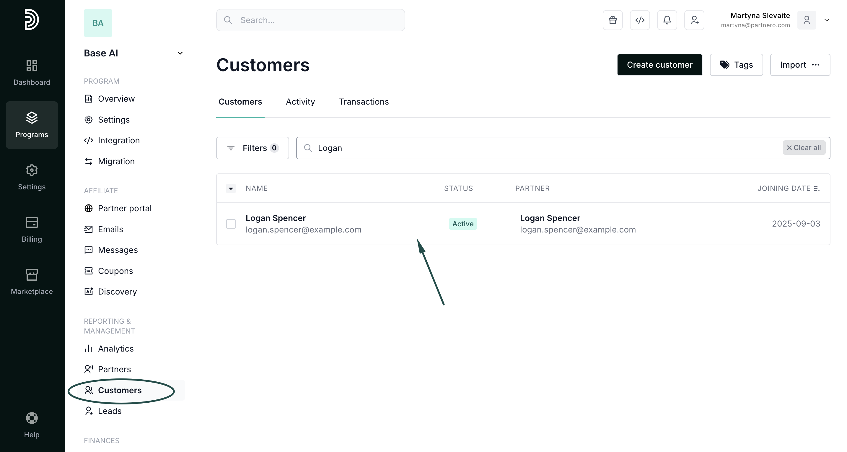 - In your affiliate program, go to Customers under Reporting & Management.