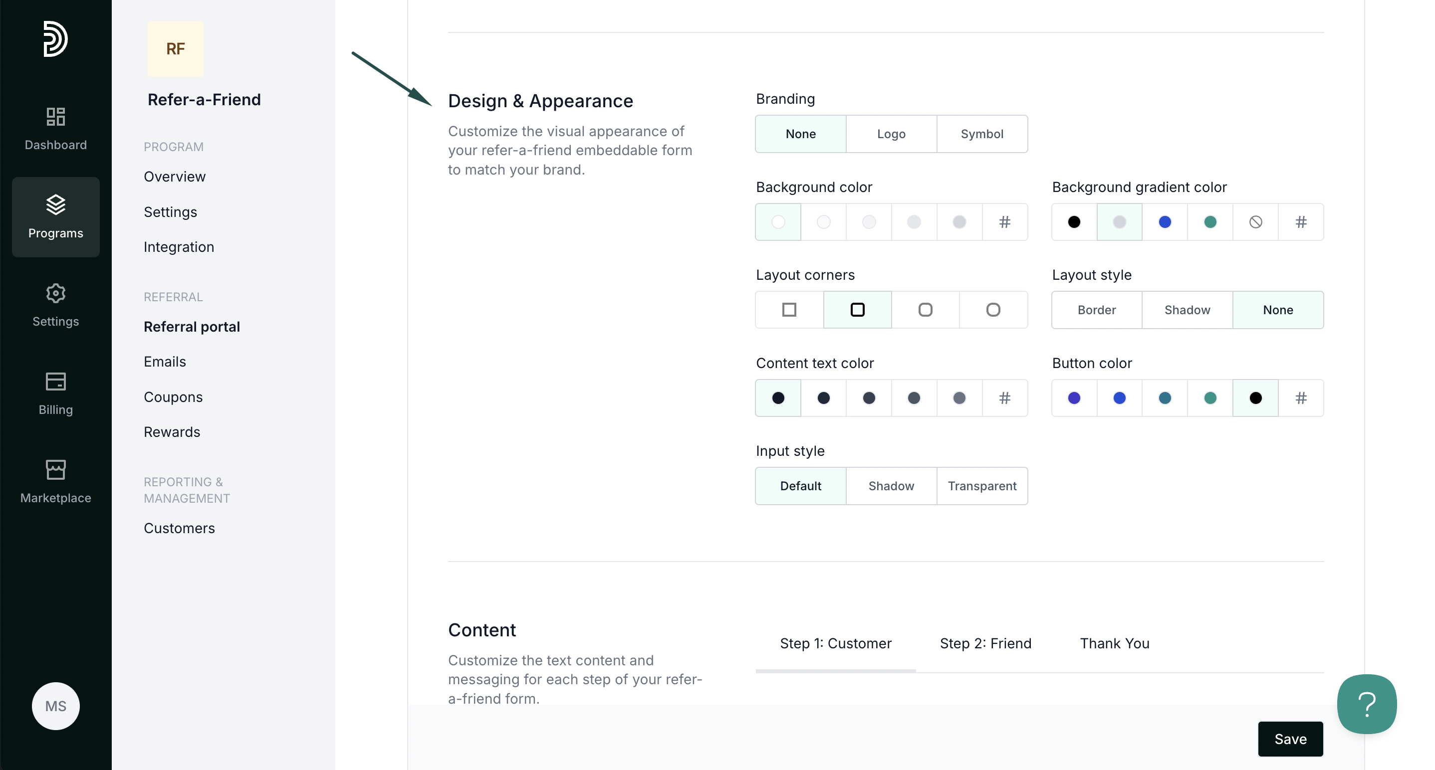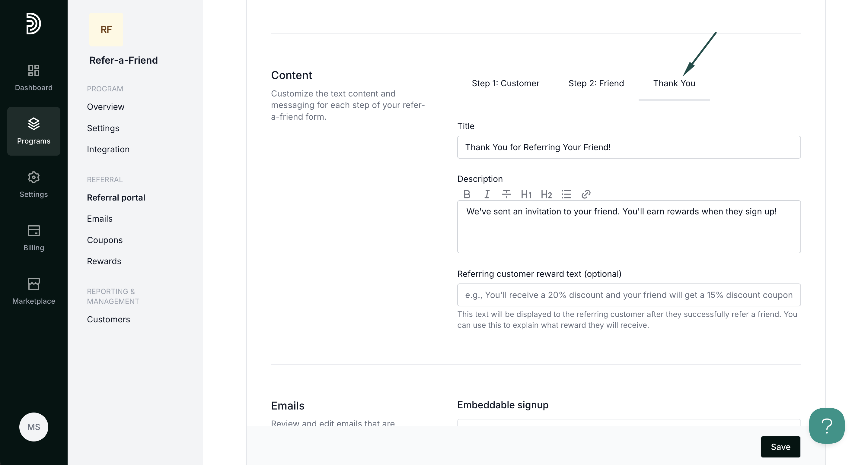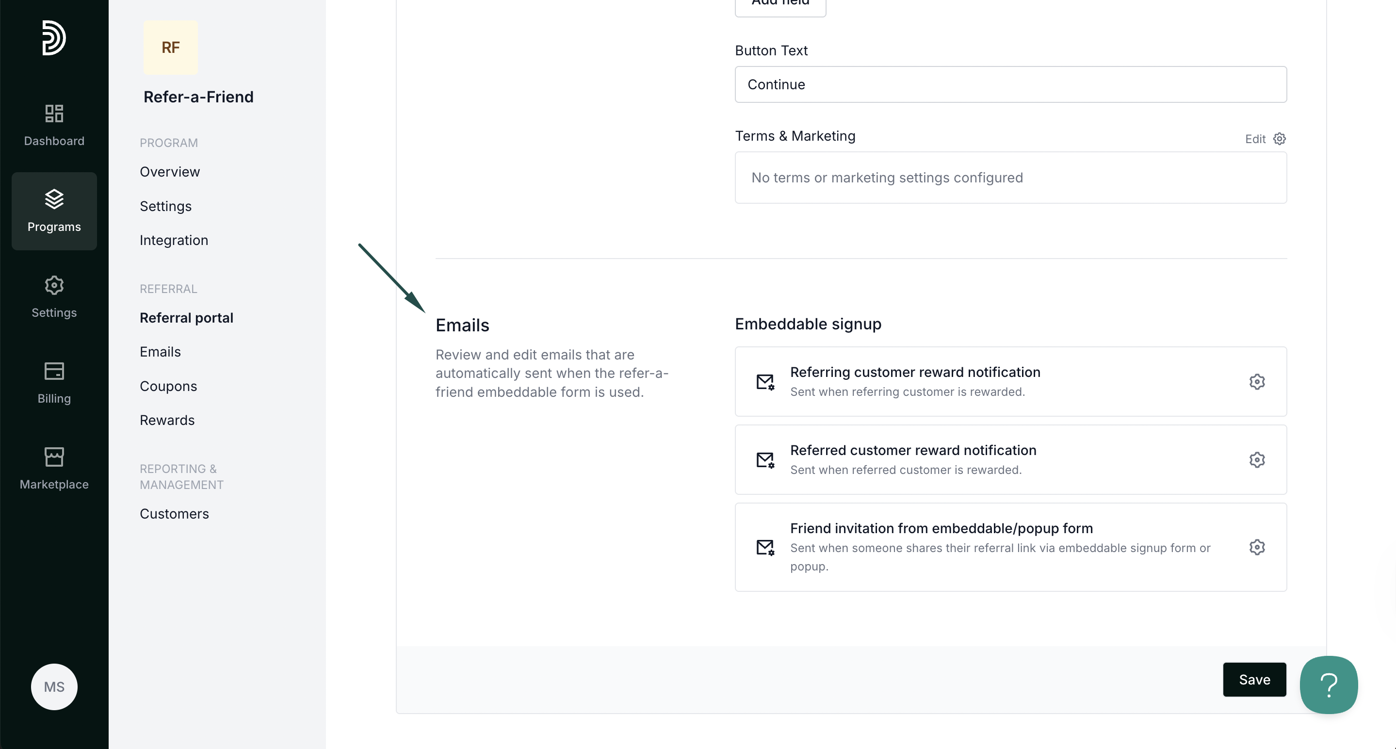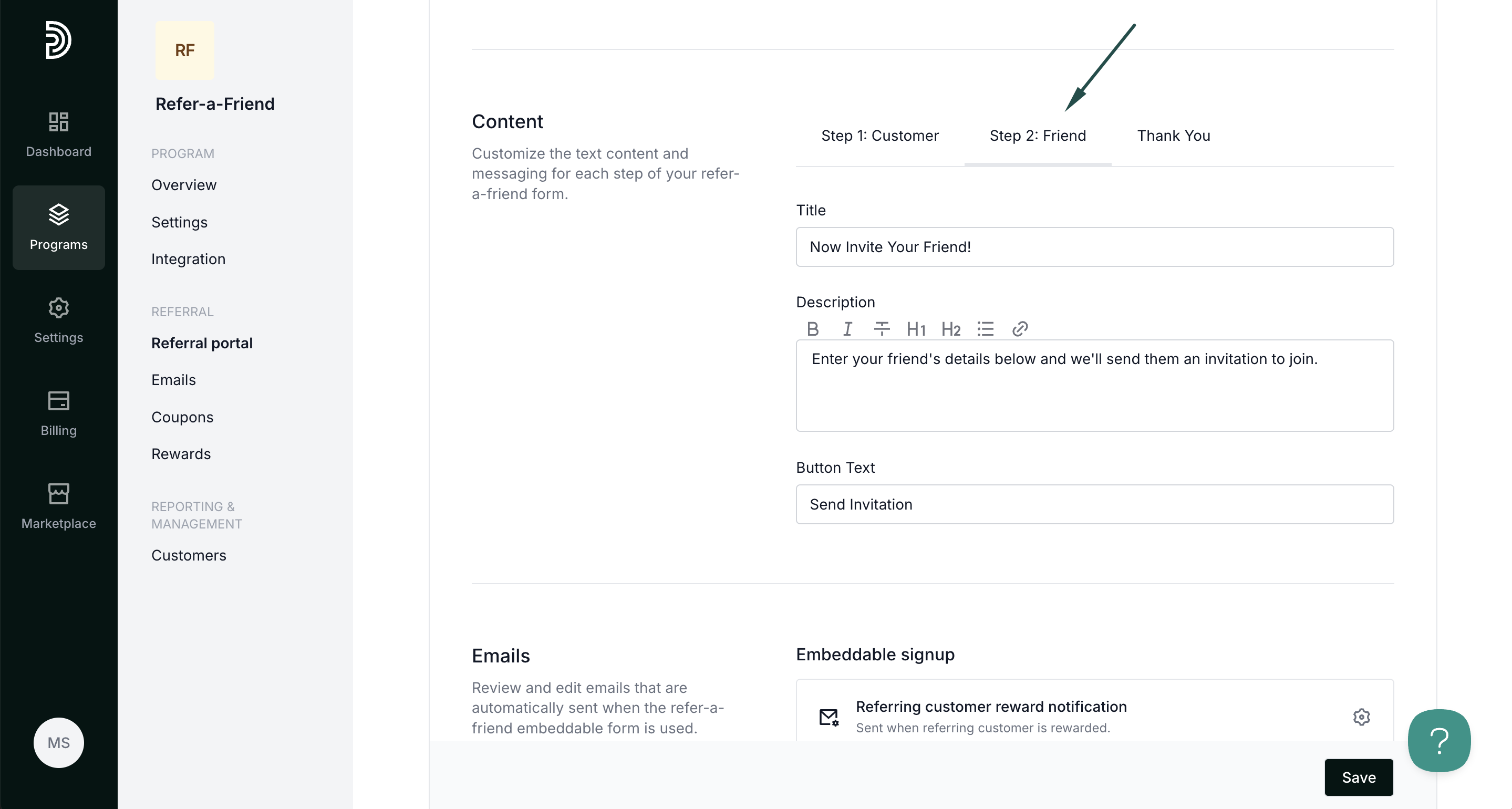 To customize and enable forms, open your refer-a-friend program and navigate to Referral portal. Switch to the Forms tab: