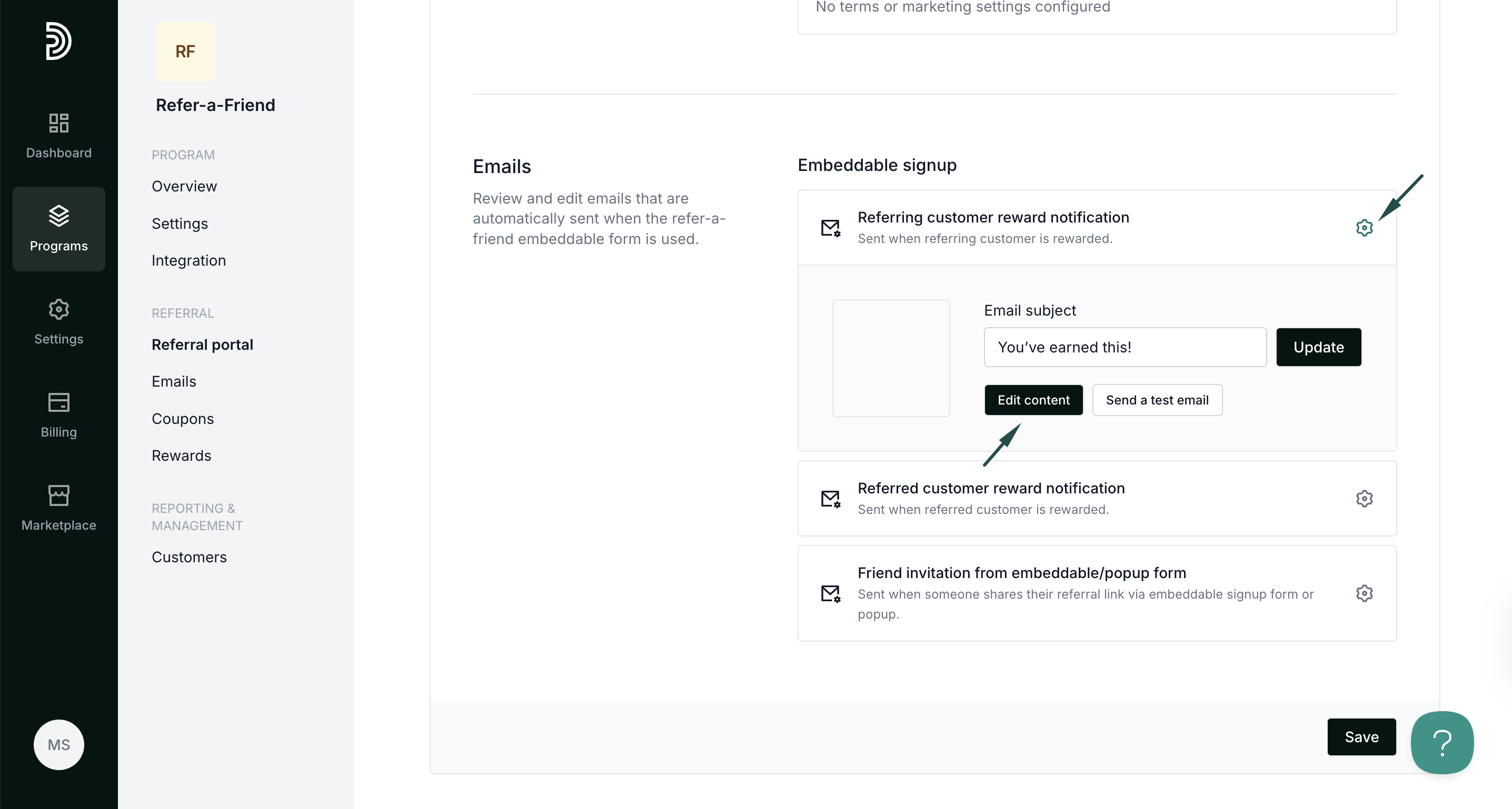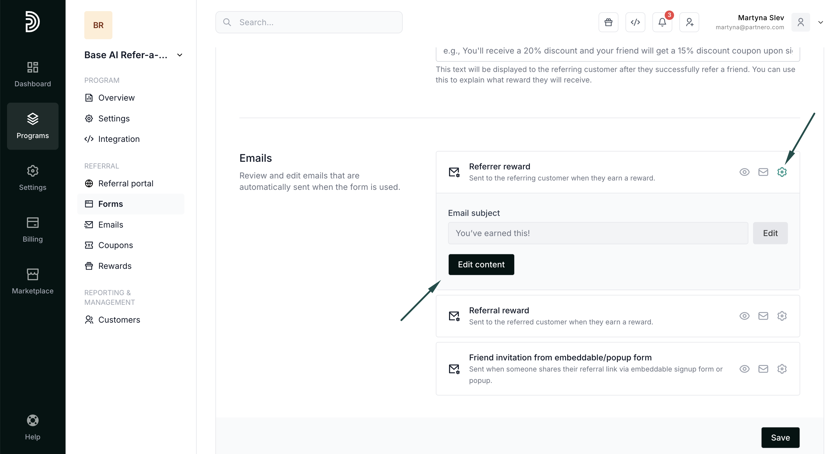 Lastly, you can edit the emails that will be used to invite and send rewards:
