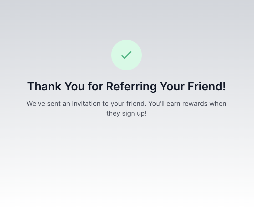 Step 3: The thank-you page is displayed. The referred friend receives an invite. If the form is set up to offer instant reward delivery, the reward emails will be sent according to the specified settings.