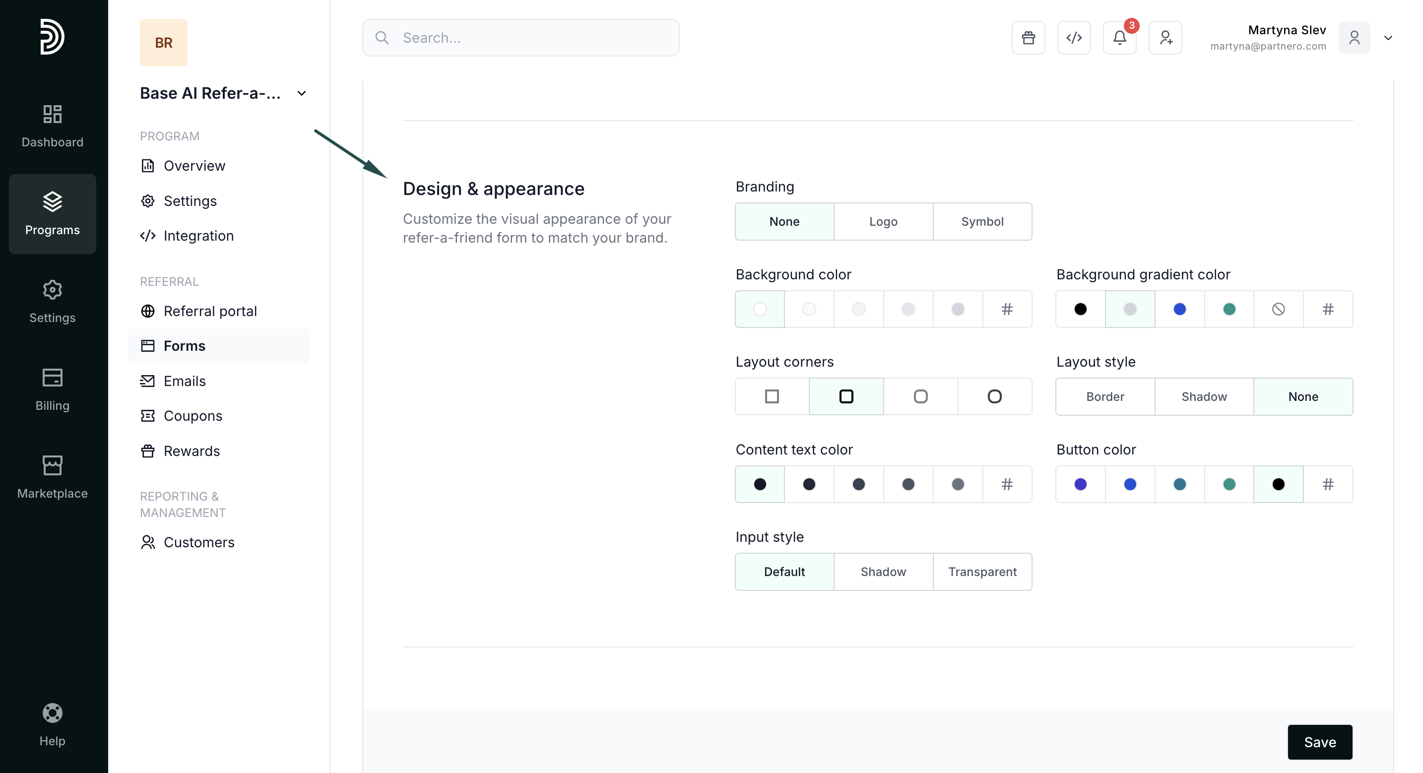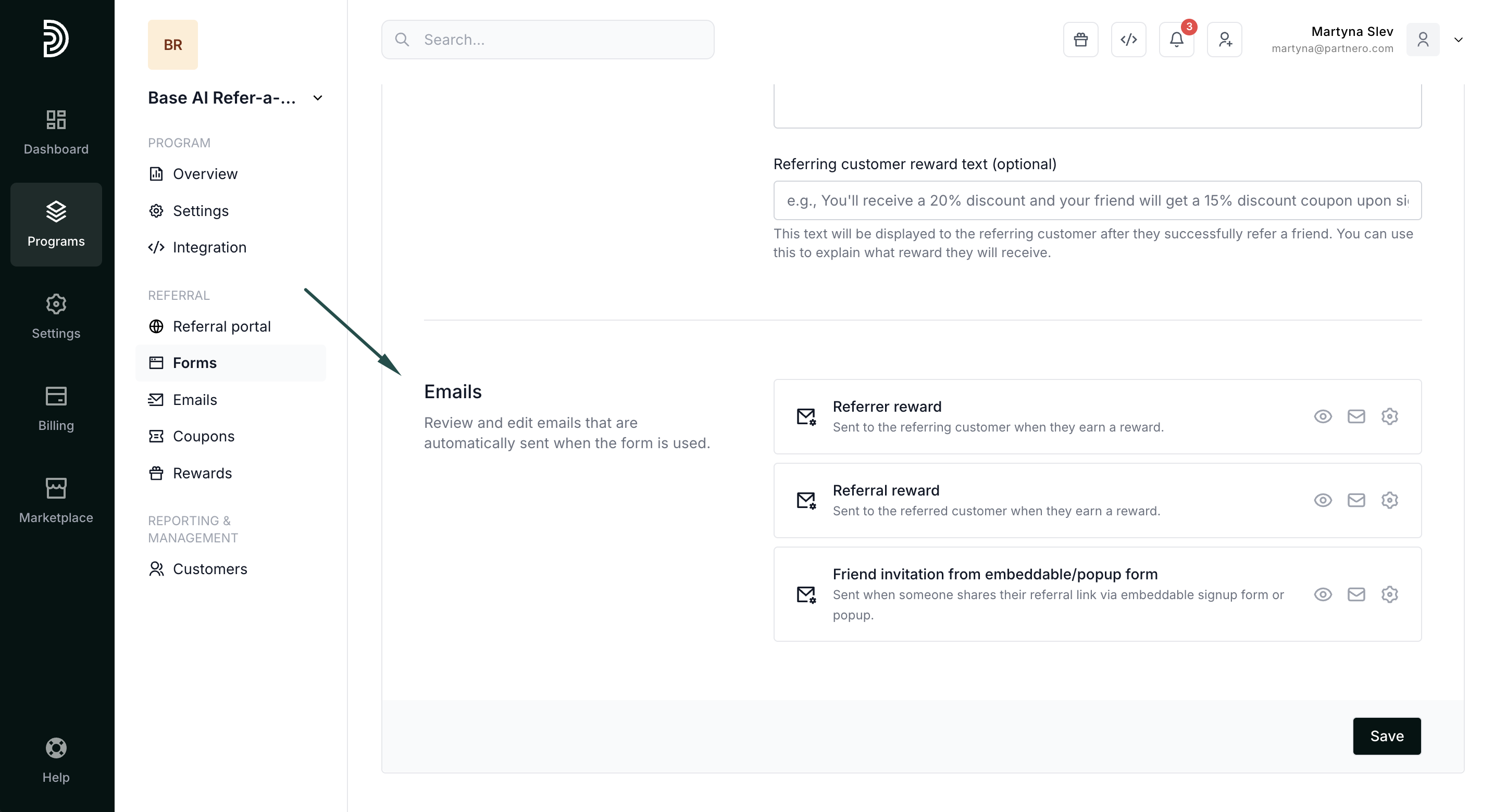 To customize and enable forms, open your refer-a-friend program and click on Forms in the left-hand side menu: