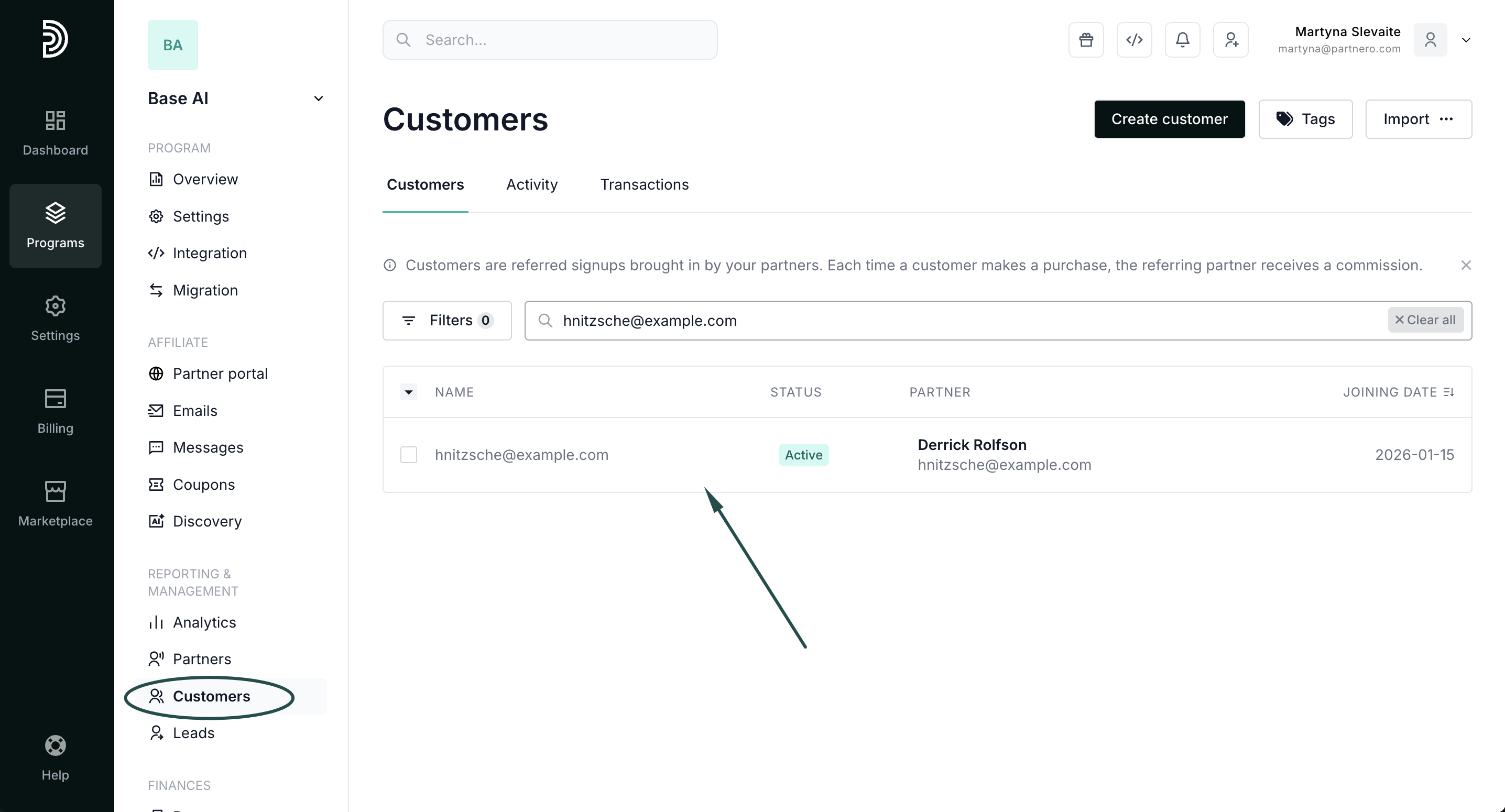 - Go to Customers and find the customer using their name or email: