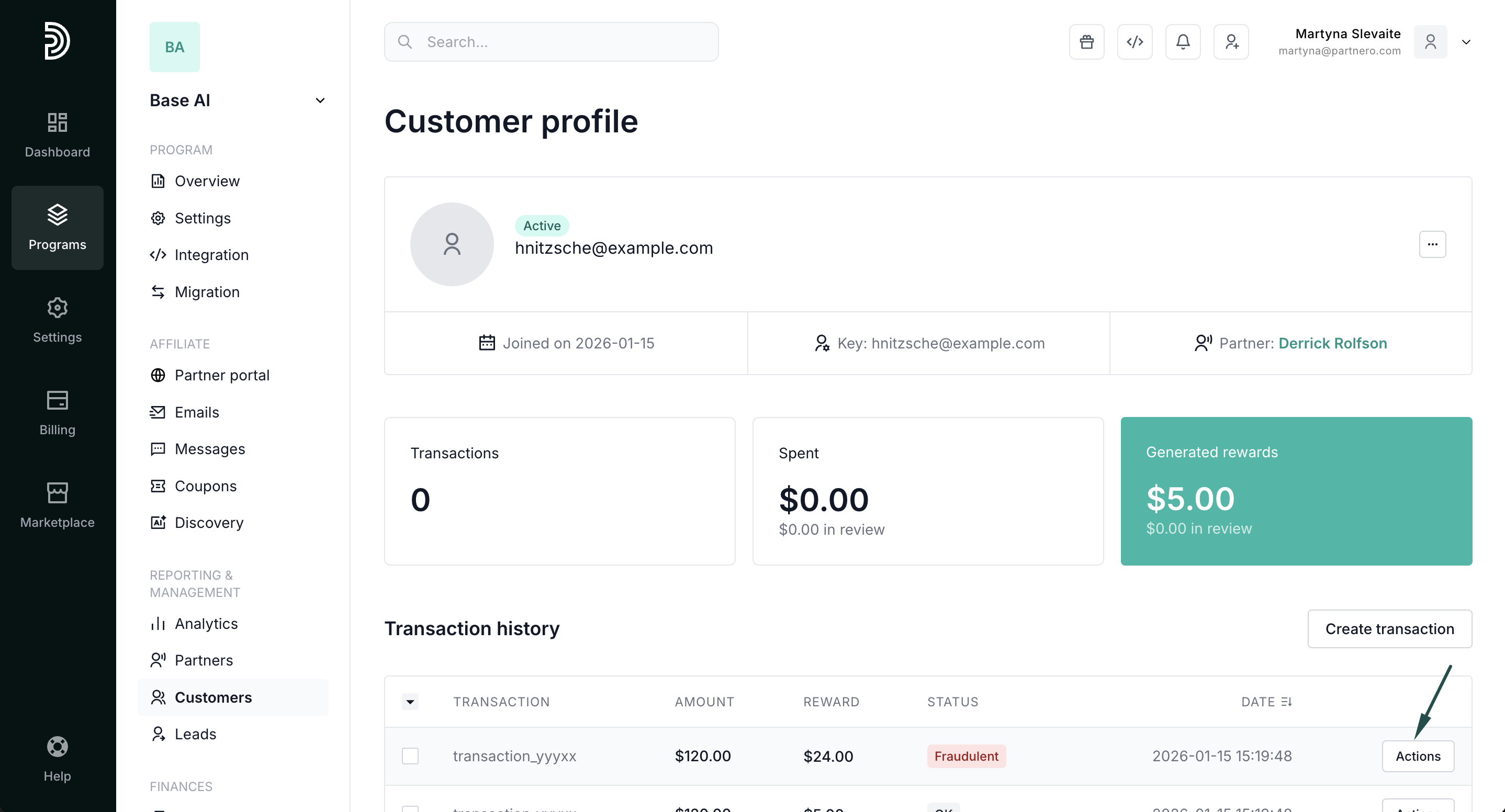 By default, Partnero marks a transaction as fraudulent if the referral's and affiliate partner's (or customer's) email addresses match. You can read more about transaction and protection settings here.