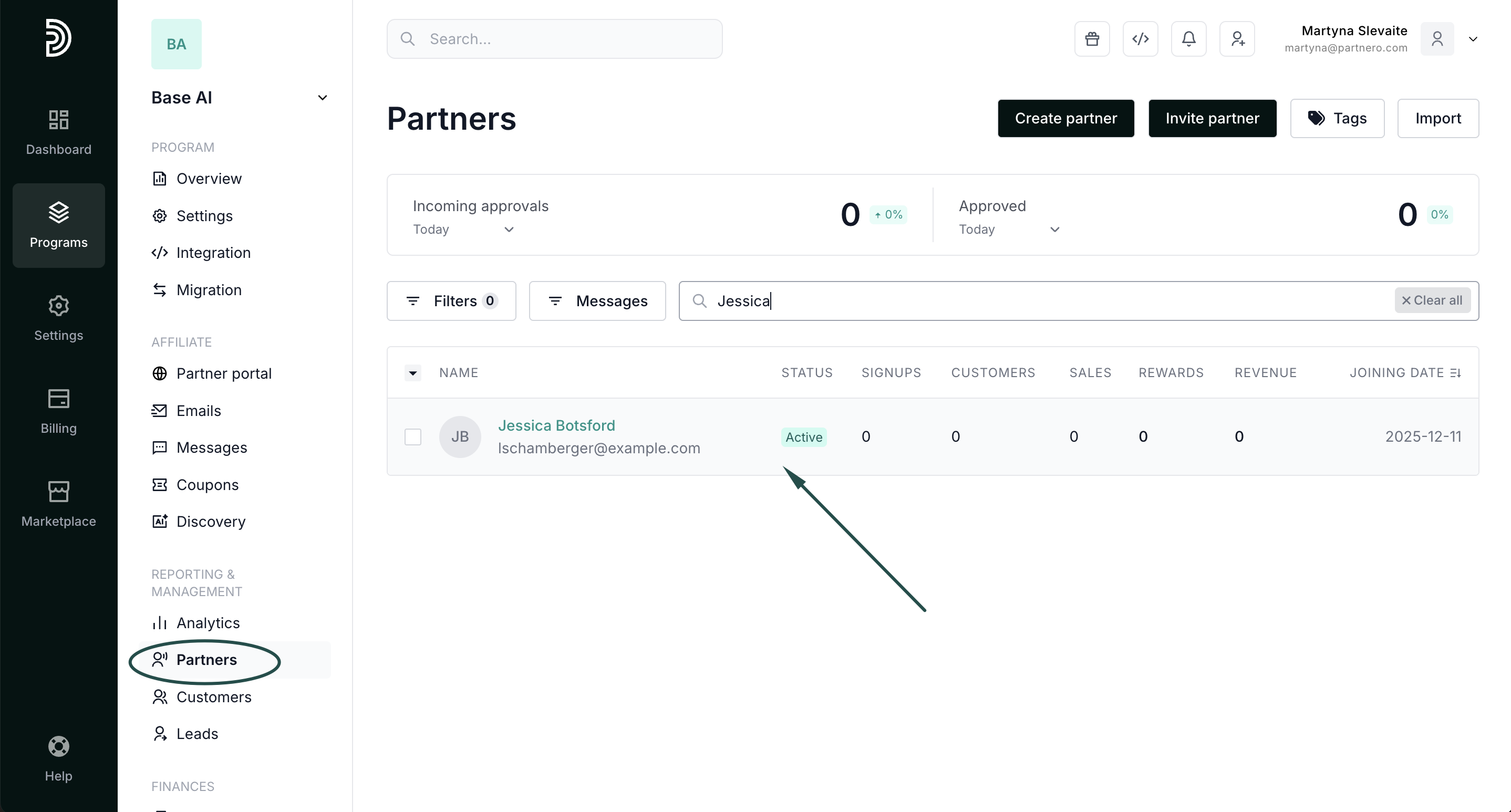 - Go to your Partners list under Reporting & Management.