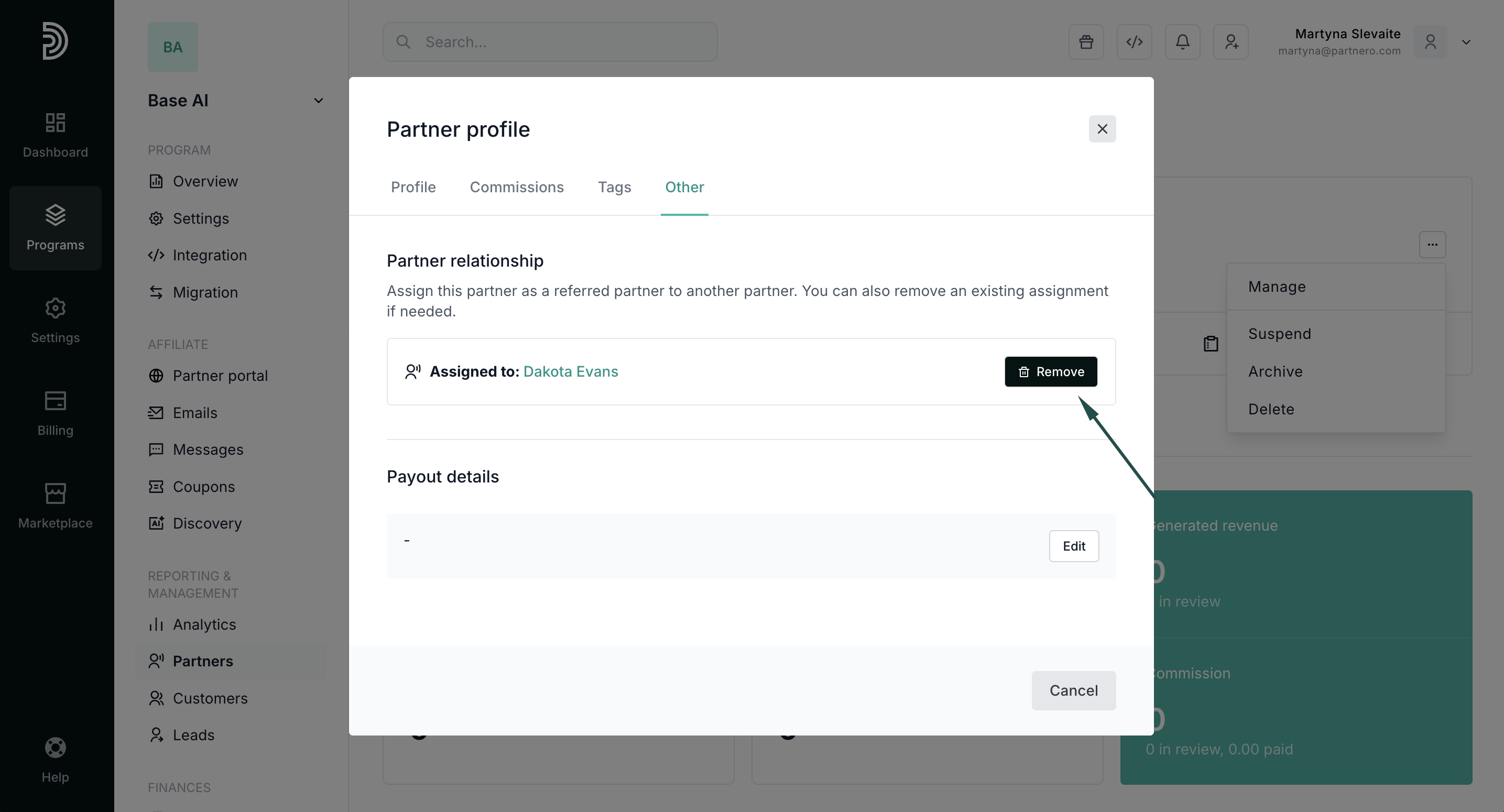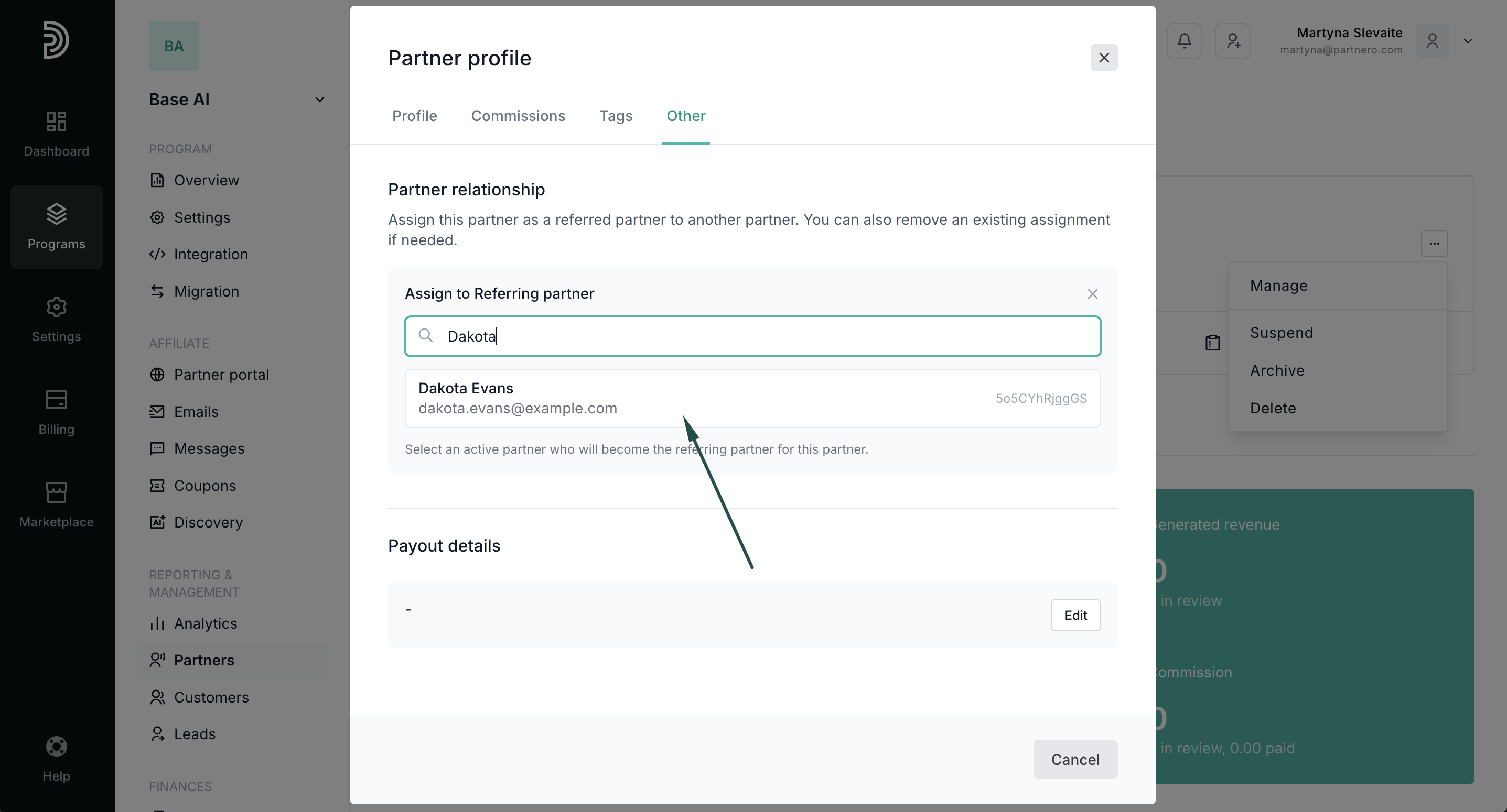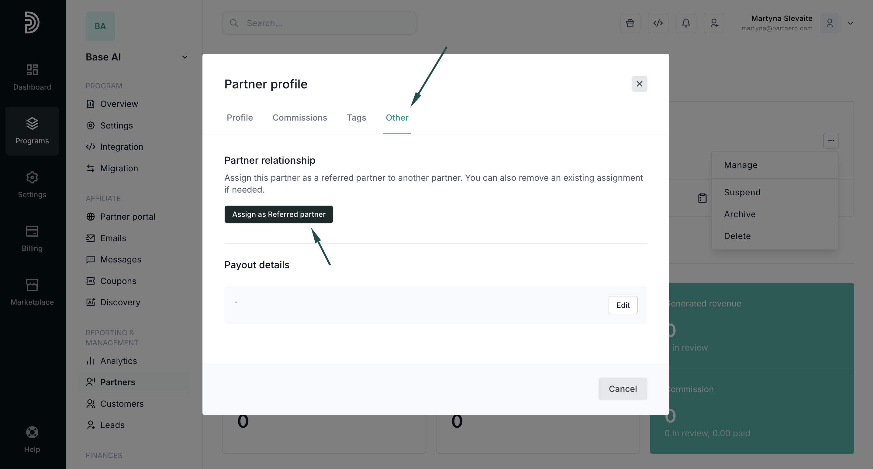 If you are using a multi-level commission structure, you can now manually manage referral relationships between partners. This allows program owners to assign or remove a referred partner directly from the partner profile.