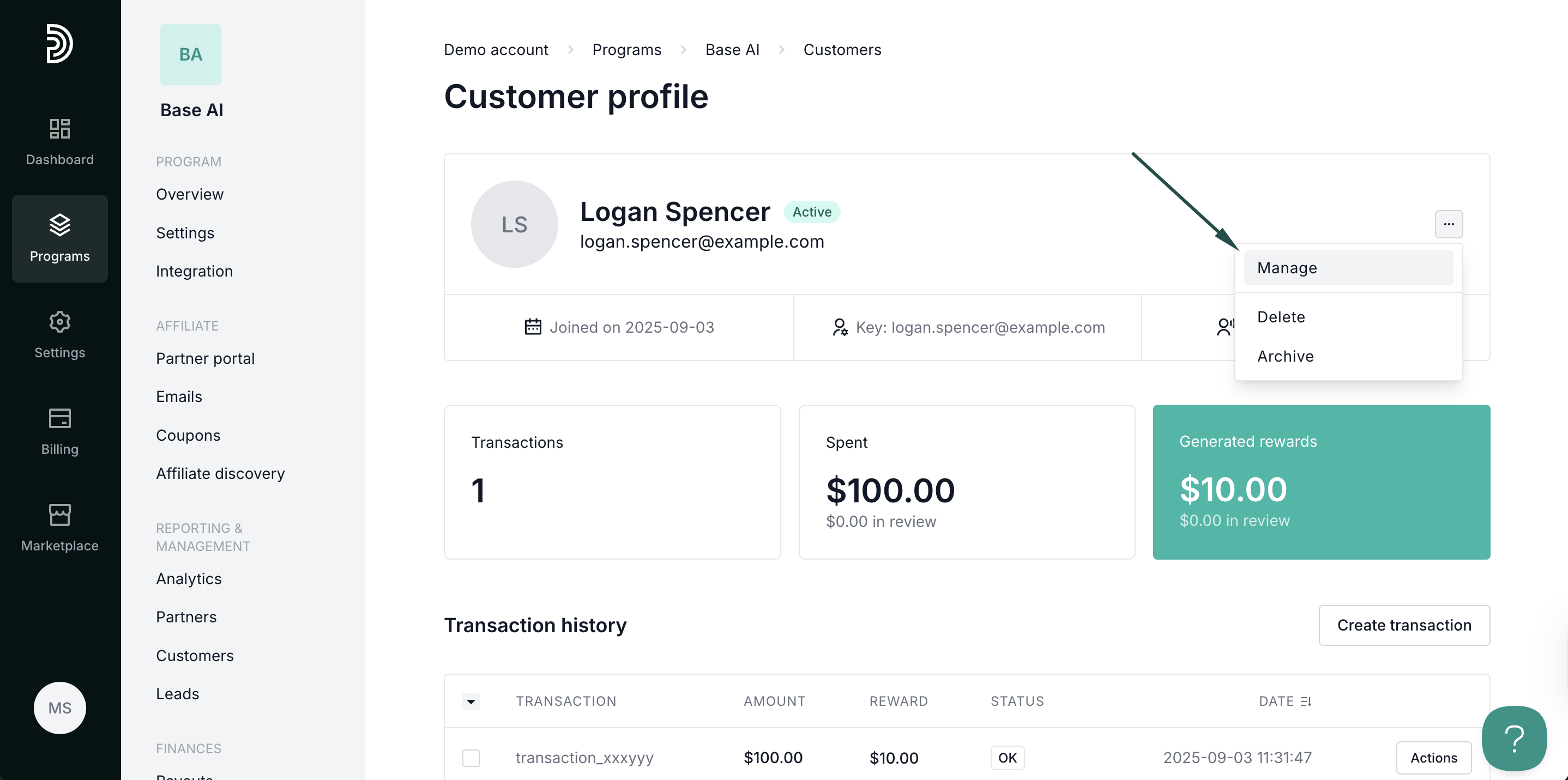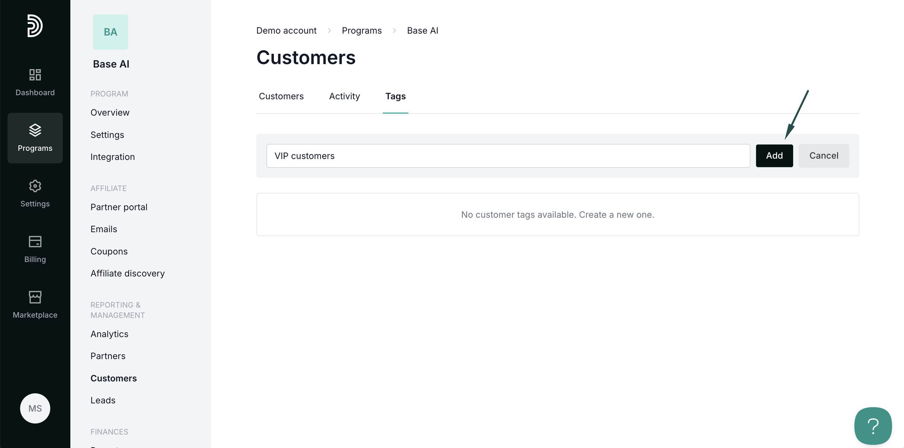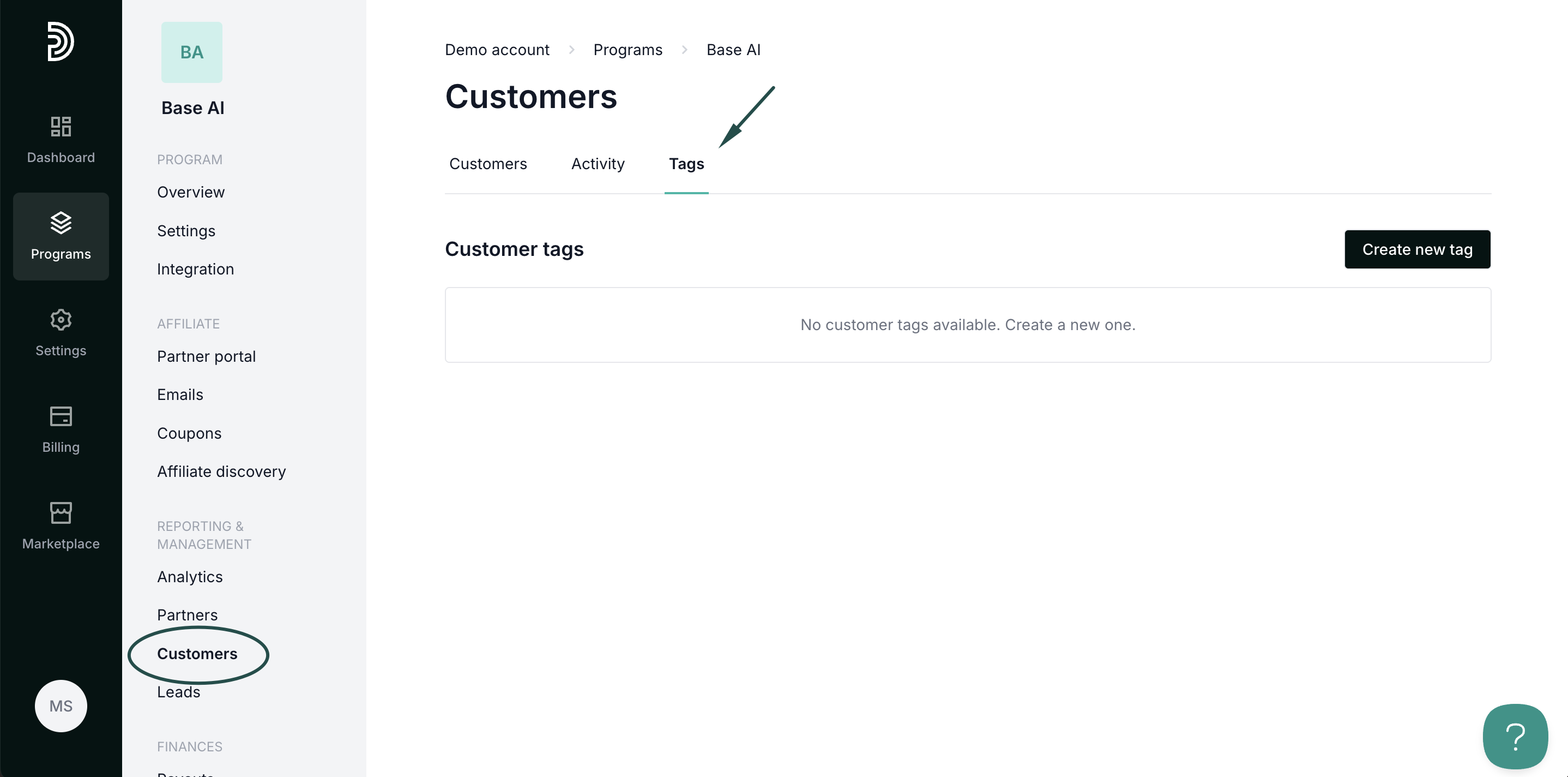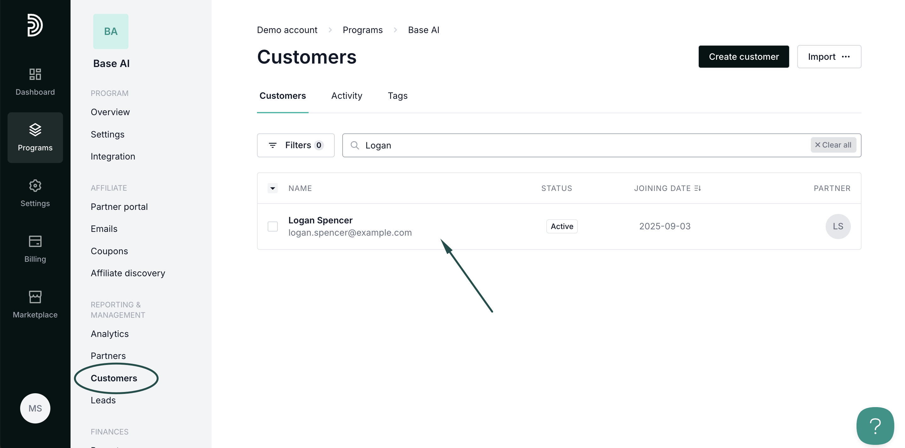 - In your program, click on Customers in the left-hand side menu.