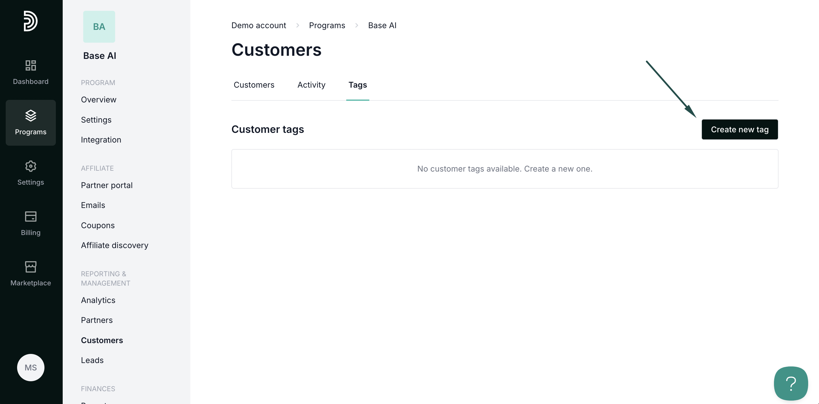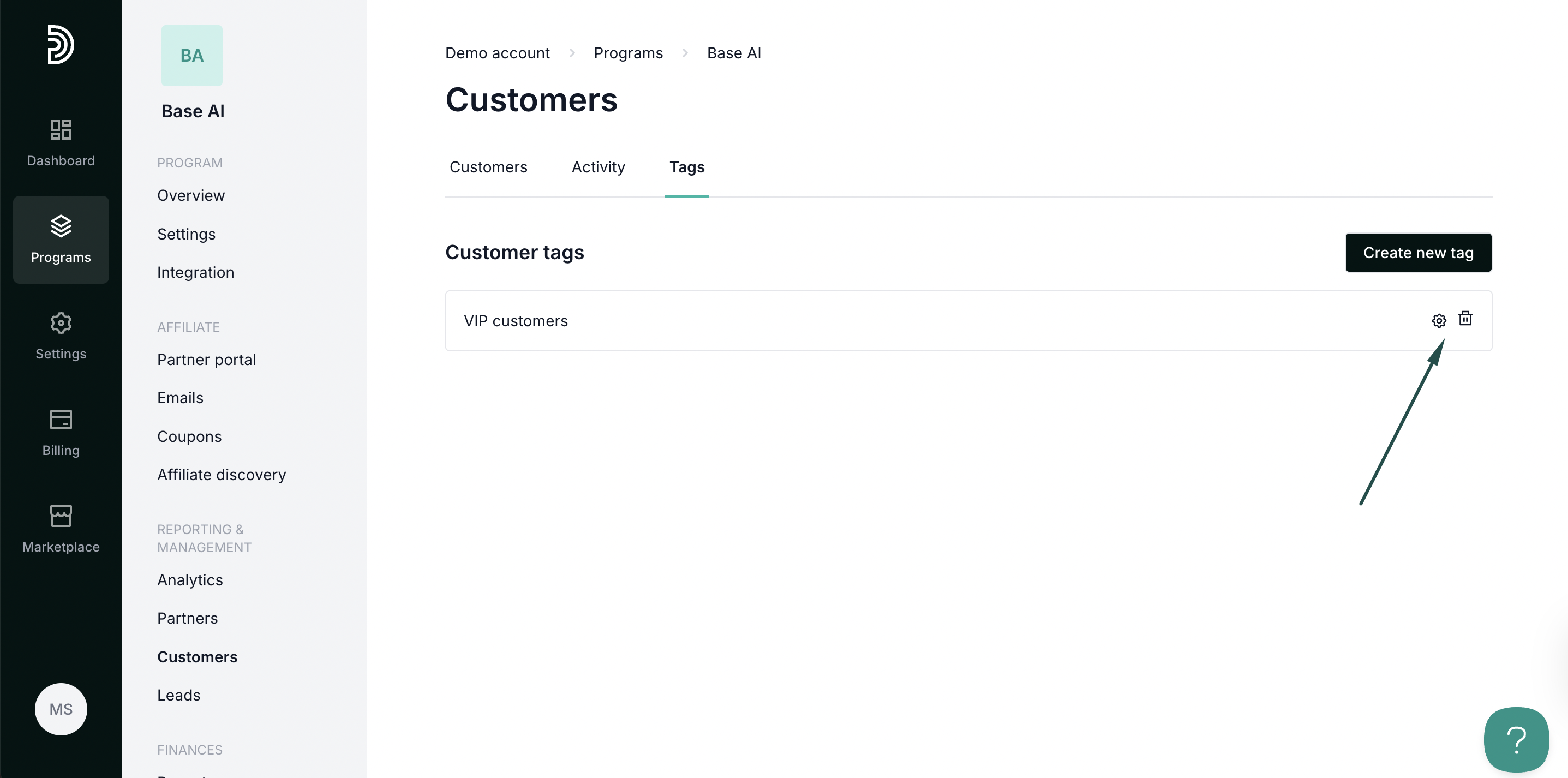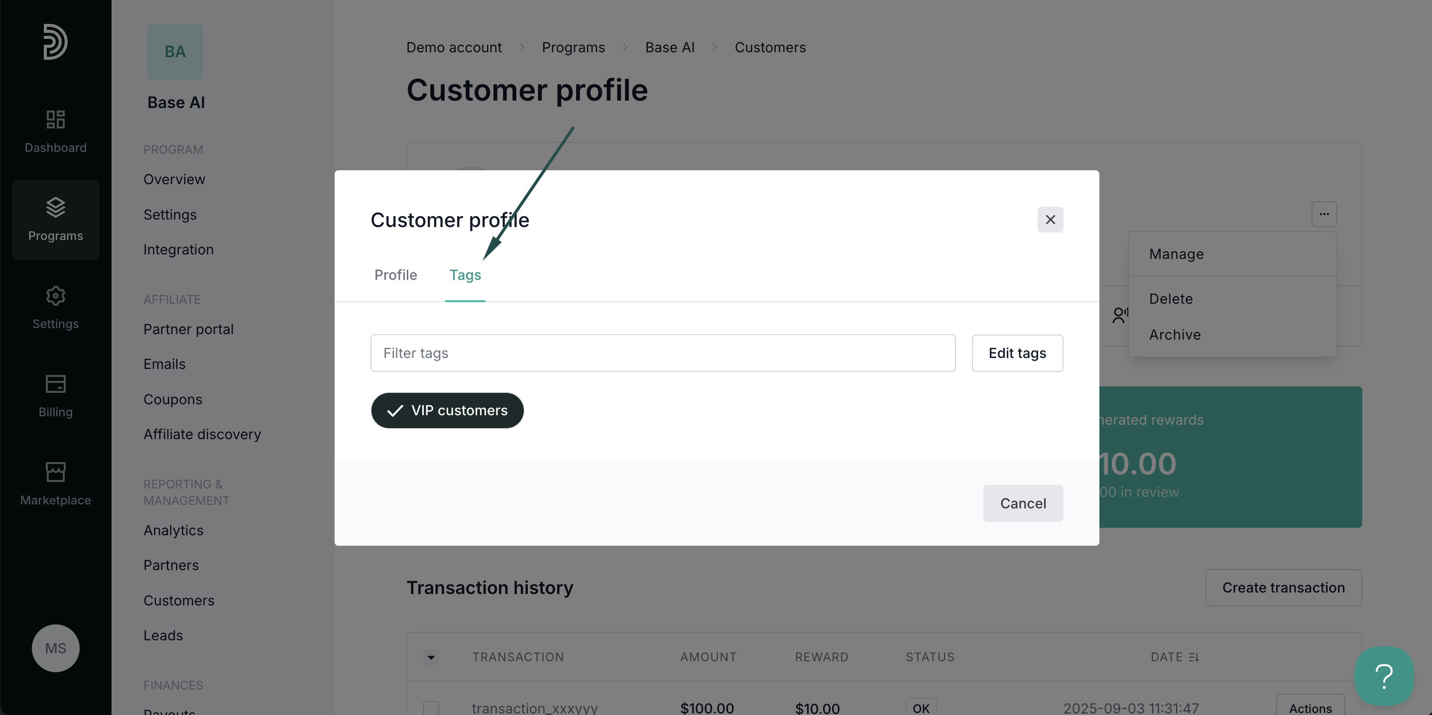 Your partners can receive different rewards based on the customer tags. To set up rewards: