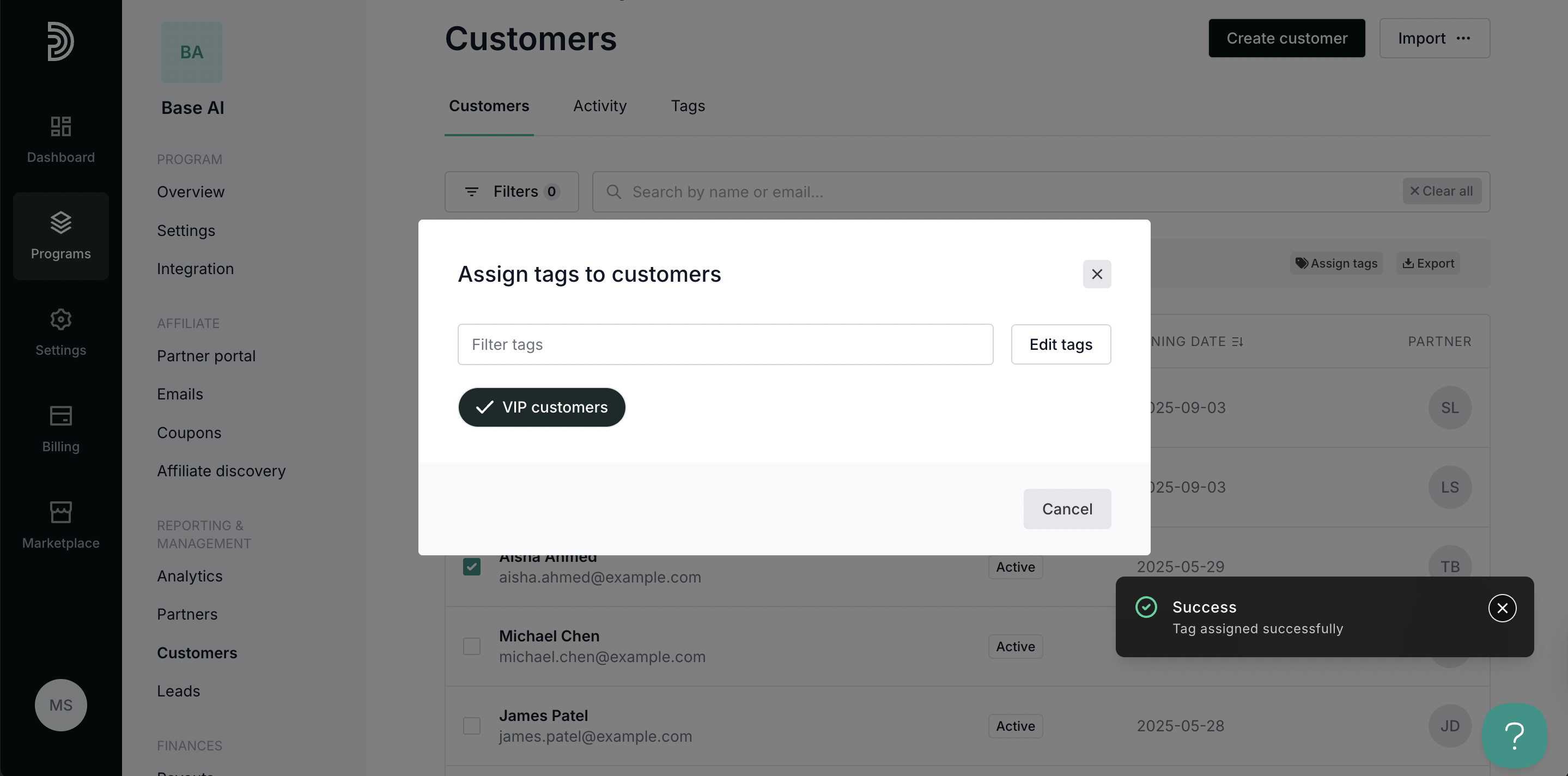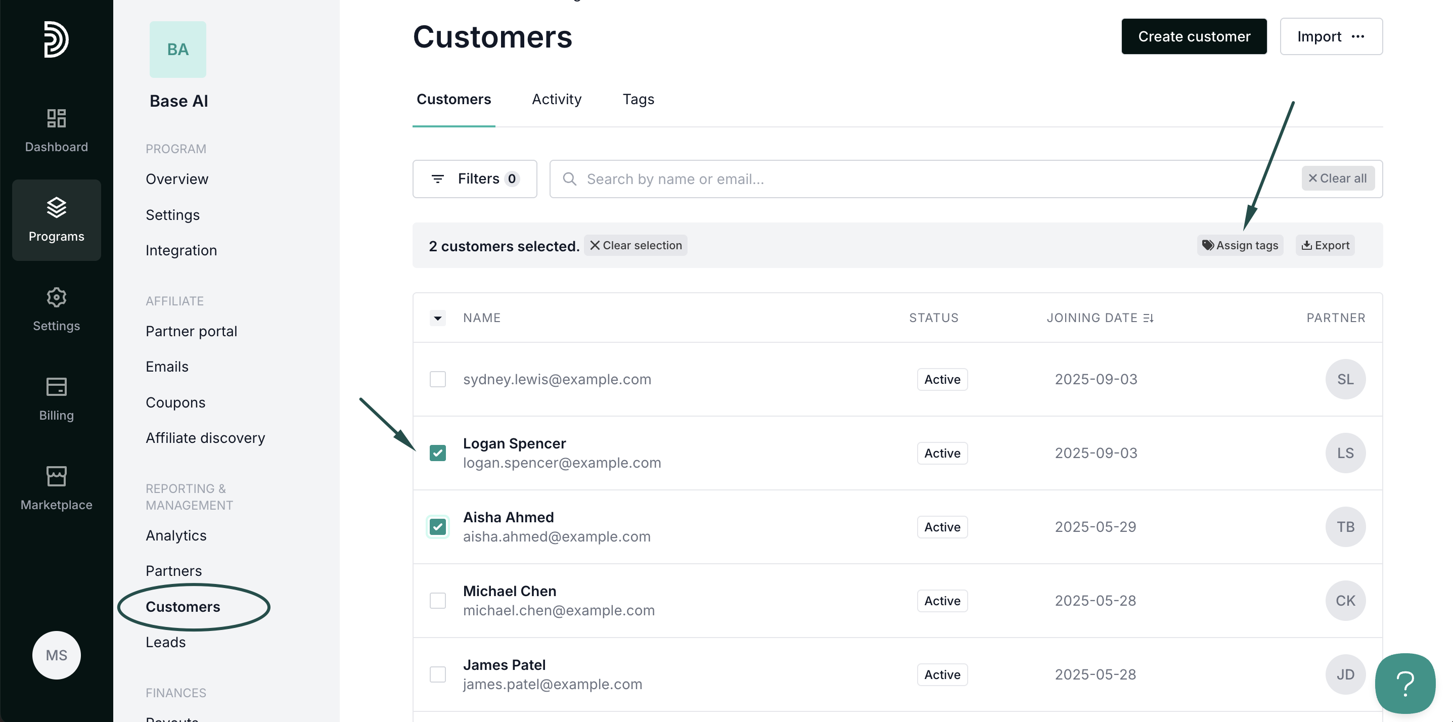 - Select the partners you'd like to tag and click Assign tags:
