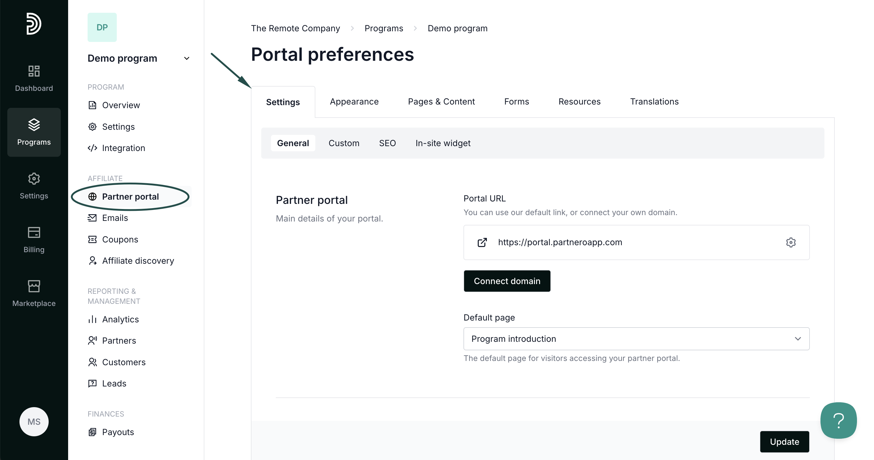 - On the left sidebar, click on Partner Portal under Affiliate.