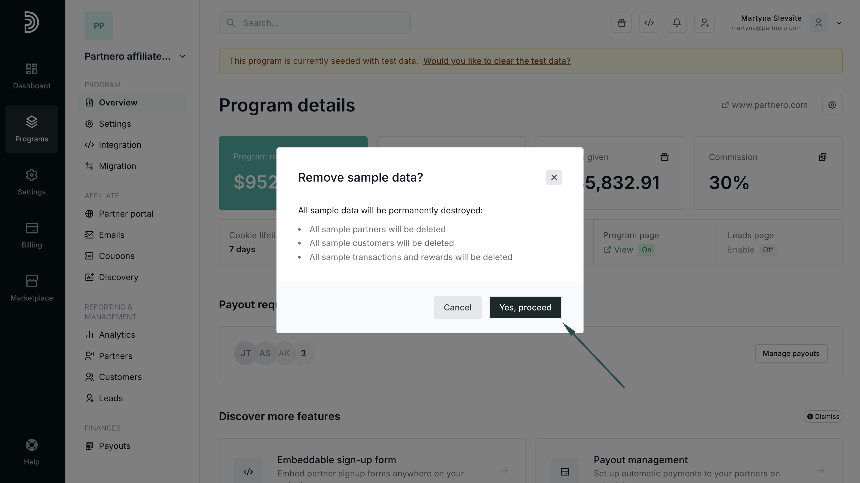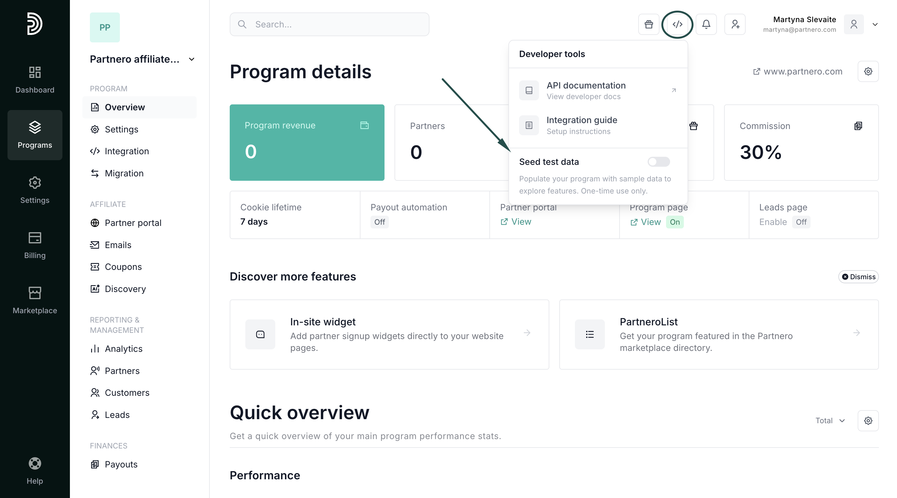 This allows you to verify tracking, commission logic, and dashboard behavior, or to demonstrate how the program works to internal stakeholders.