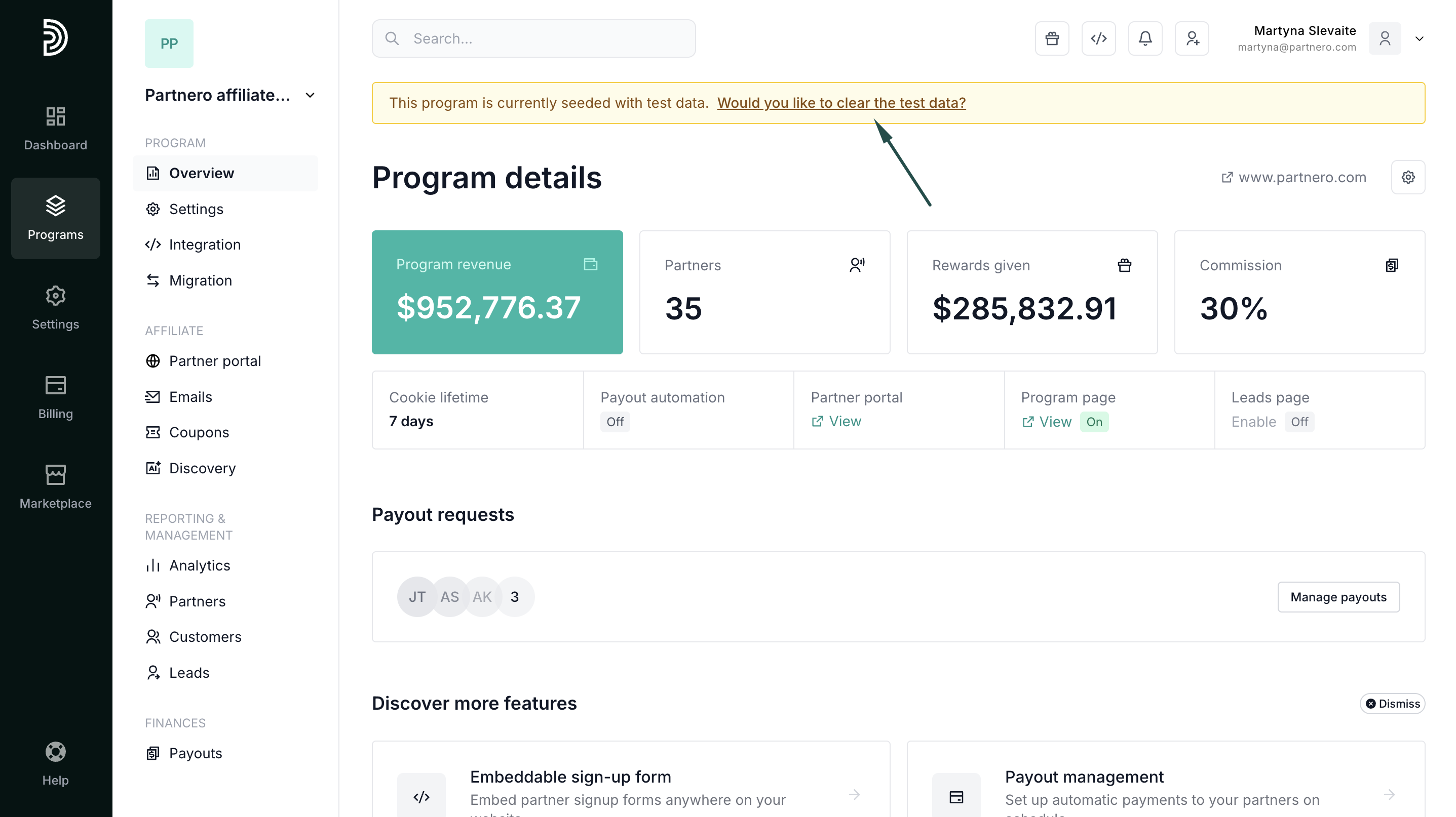 The in-app test data seeder lets you generate realistic sample data within your program to review and test your setup before going live.