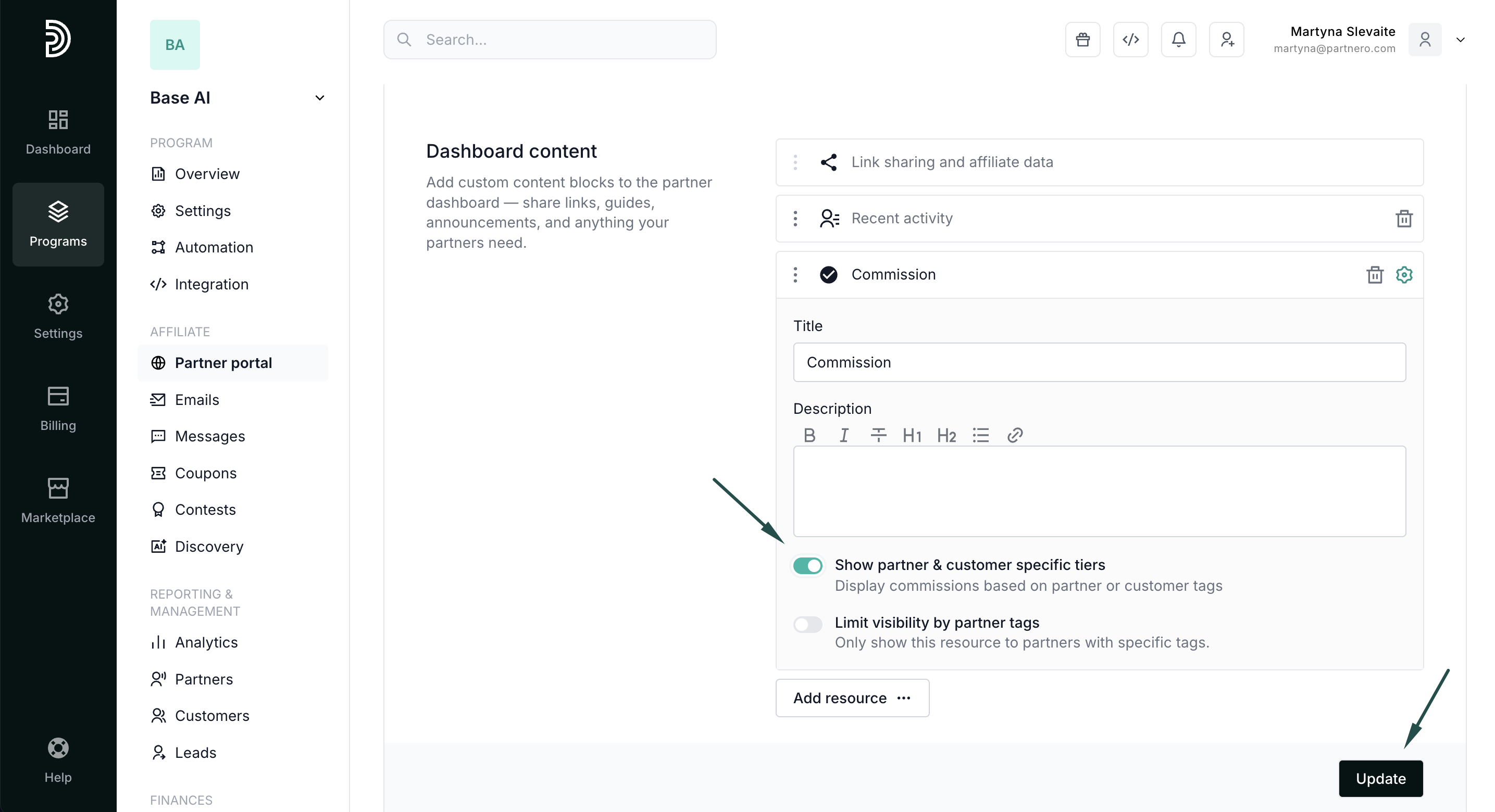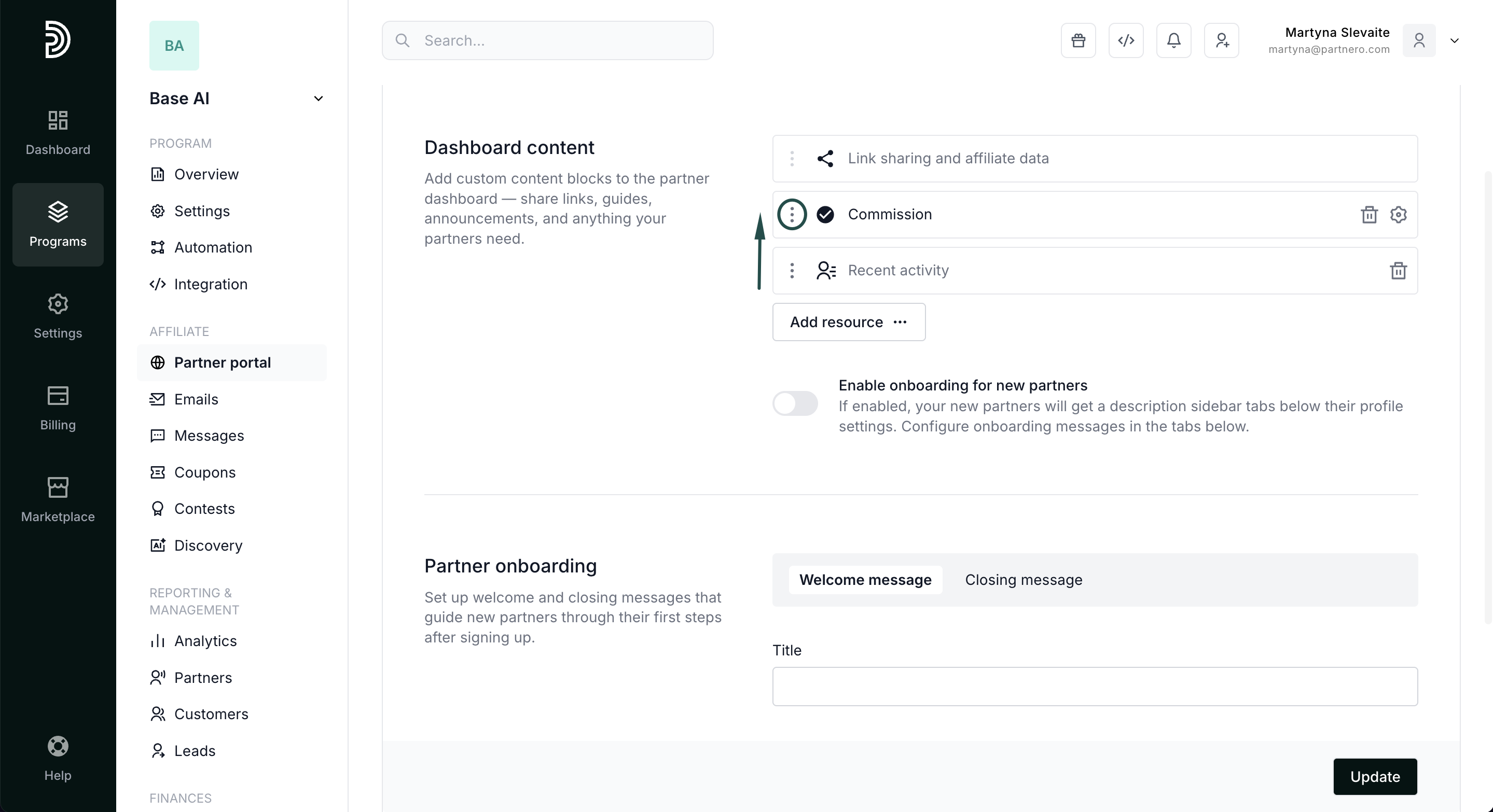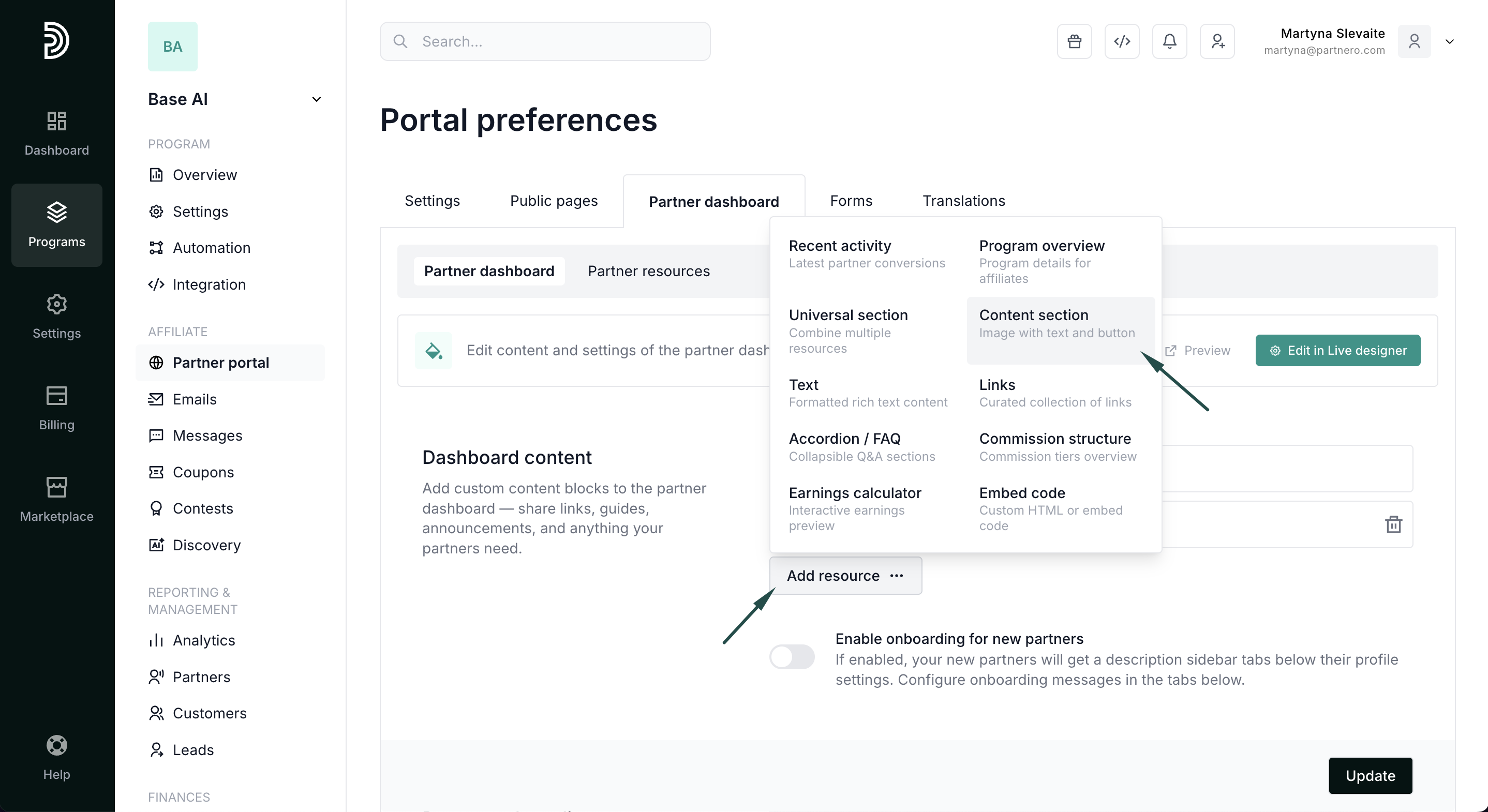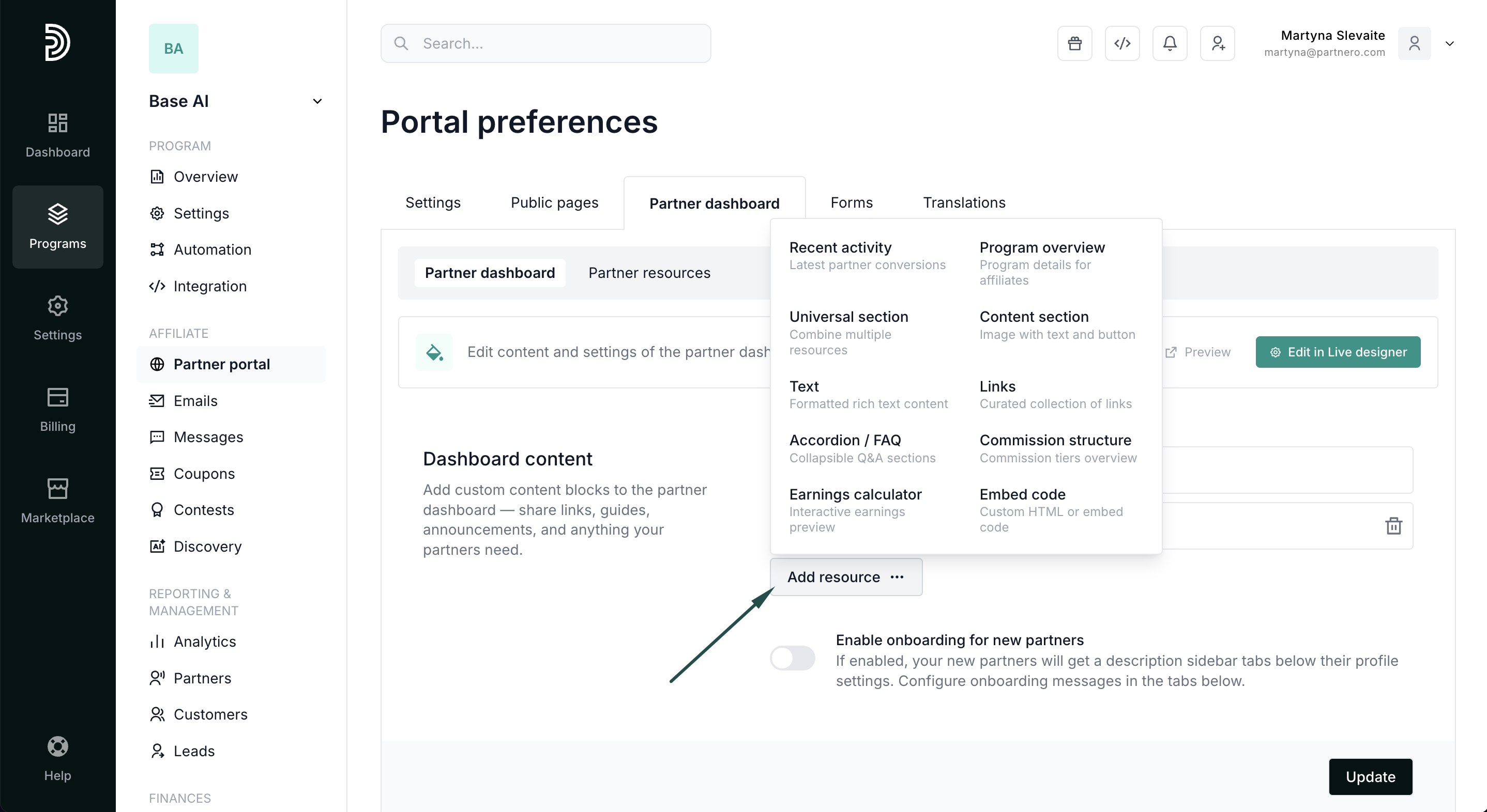 Customizing the dashboard helps ensure partners see the most relevant information and resources as soon as they log in.