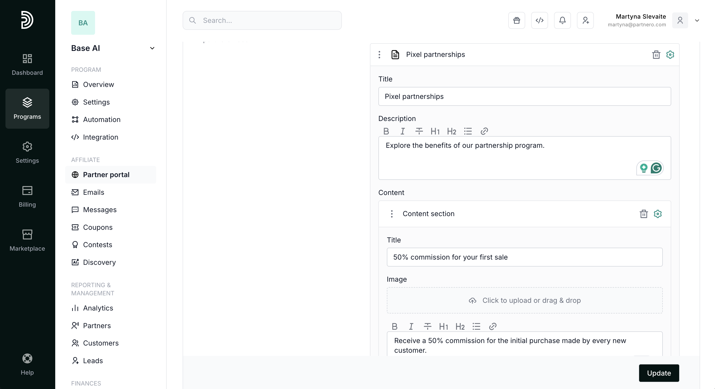 - Go to Partner portal under Affiliate.