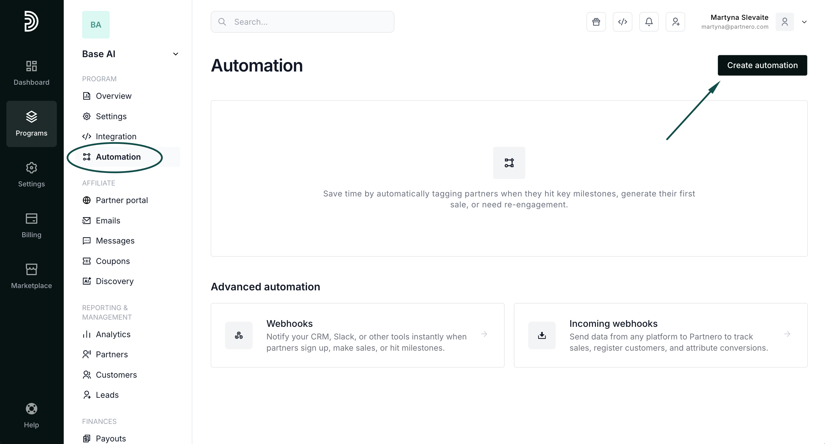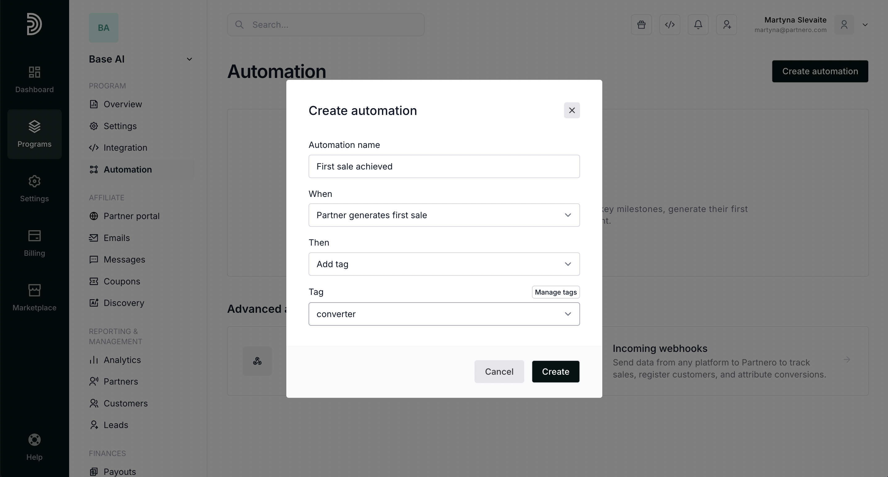 Partner tag automation allows you to automatically apply tags to partners based on defined conditions. This is useful when you want to keep partner data organized and react to partner activity without manual updates. This article explains how to set up and use partner tag automation.