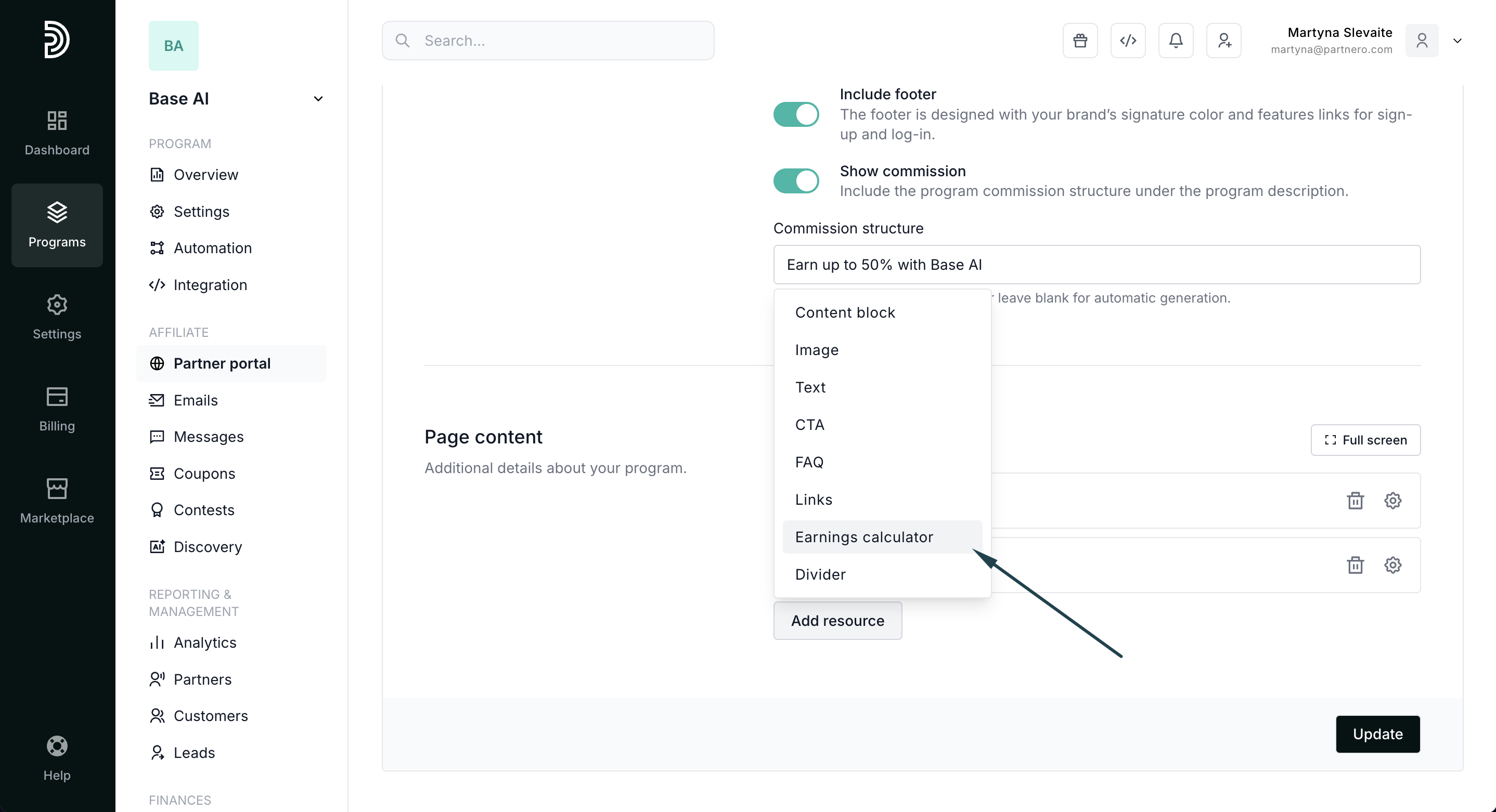 The Earnings Calculator is a resource you can add to your Program Page to showcase potential partner earnings. It helps prospects quickly understand how much they could earn by promoting your product, making your affiliate offer more transparent and compelling.