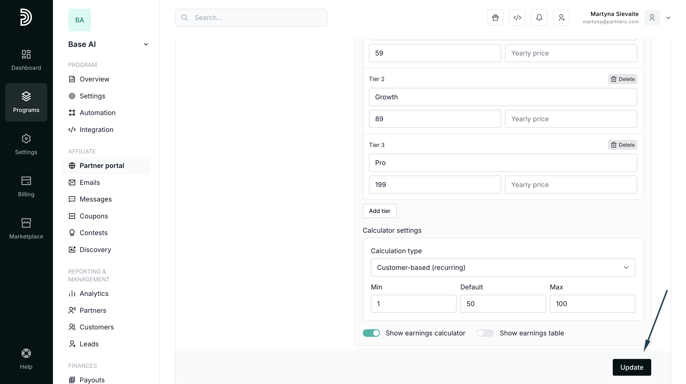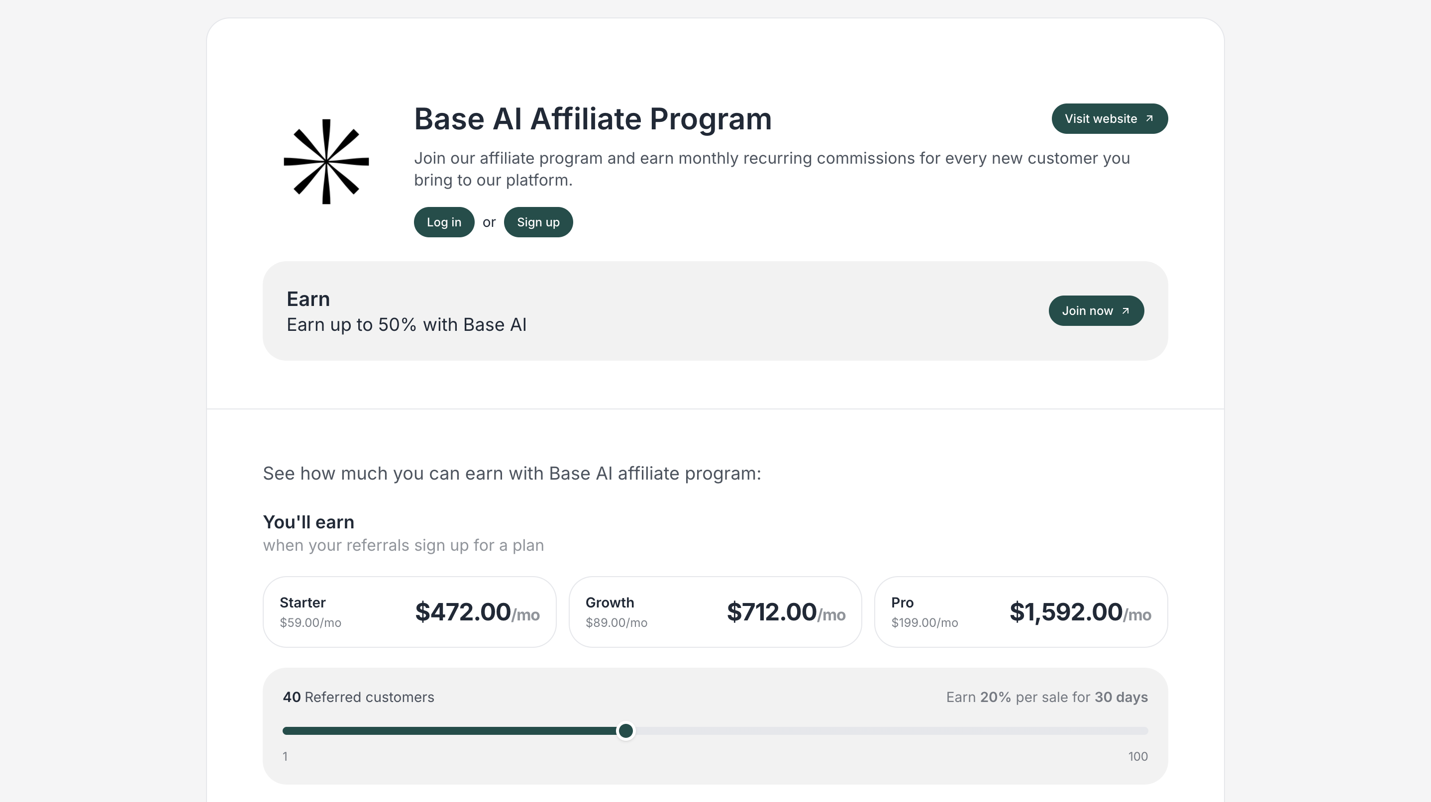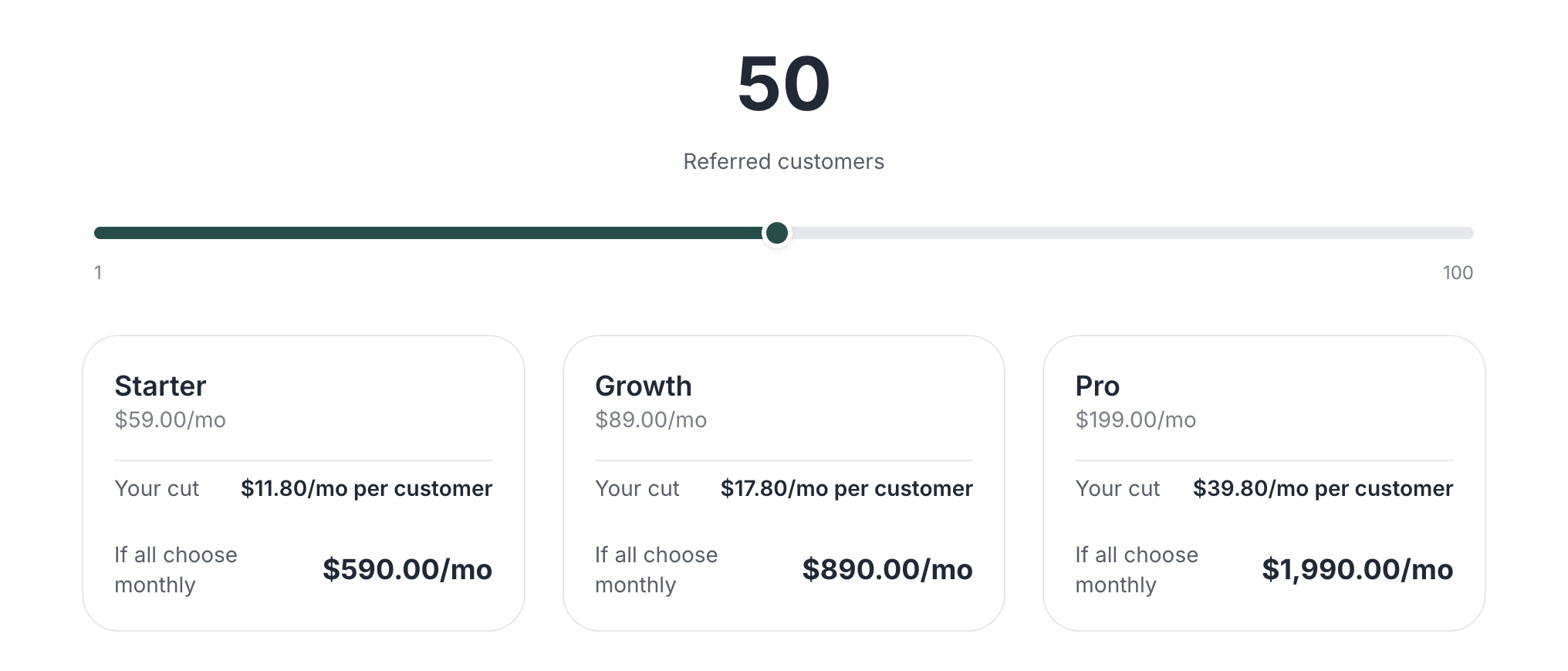 With flexible pricing tiers and support for both one-time and recurring calculations, the calculator automatically displays projected earnings in your program’s currency.
