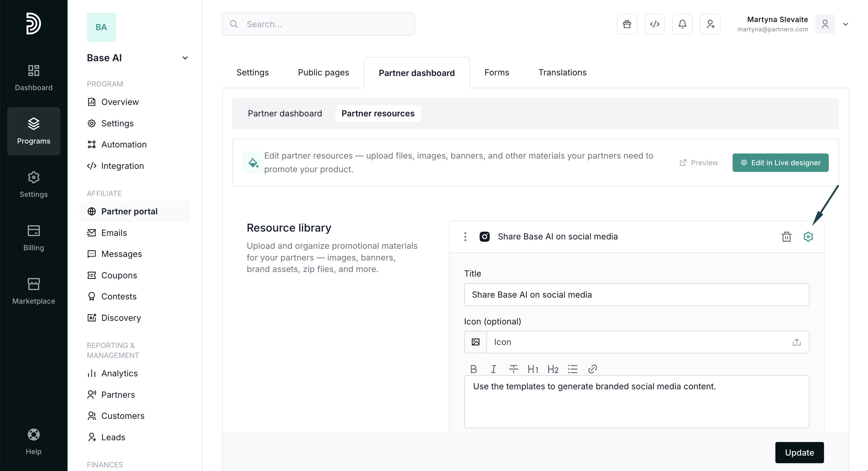You can edit resources in both, Partner dashboard and Partner resources sections.