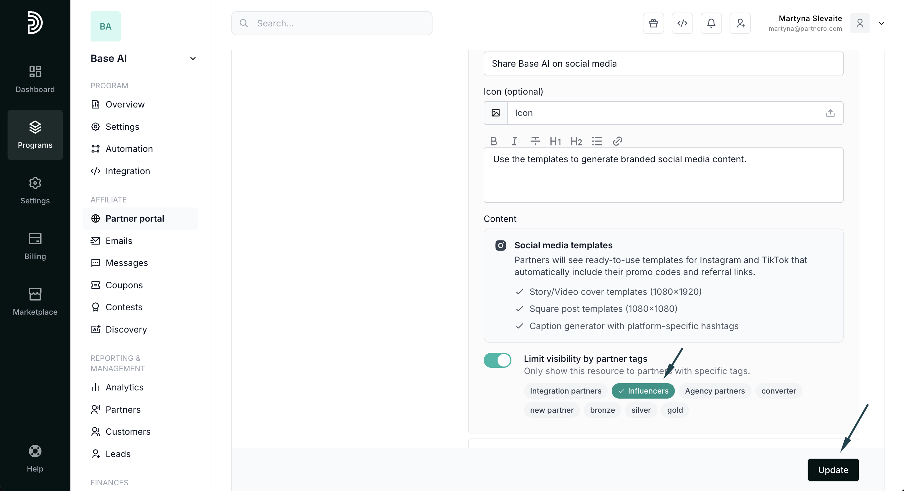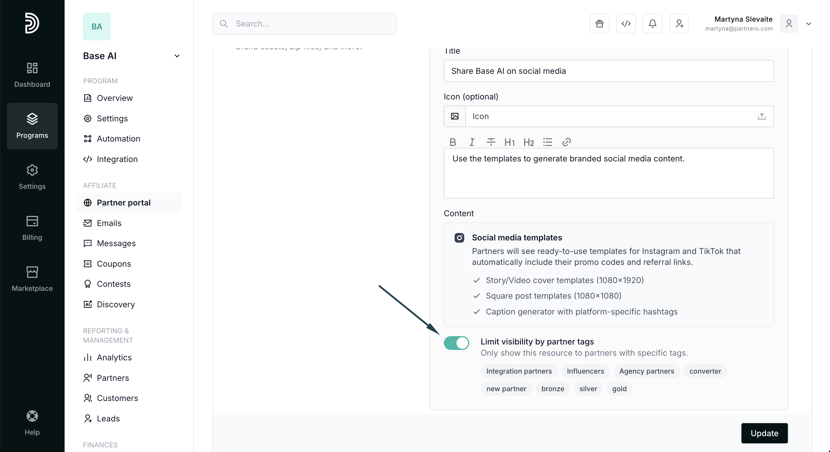 ⚠️ Prerequisites: You need to have partner tags configured in your program to use this feature.
