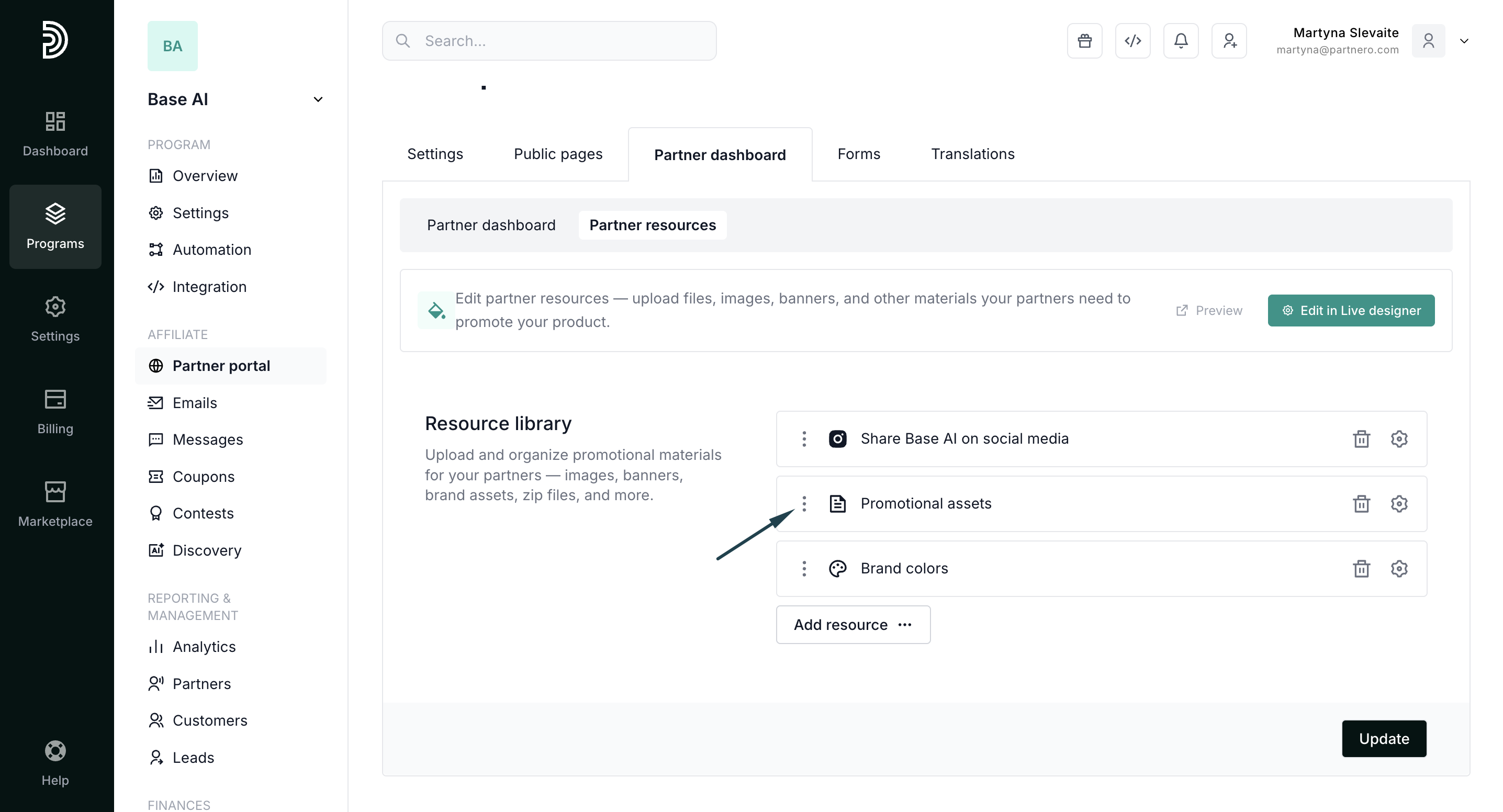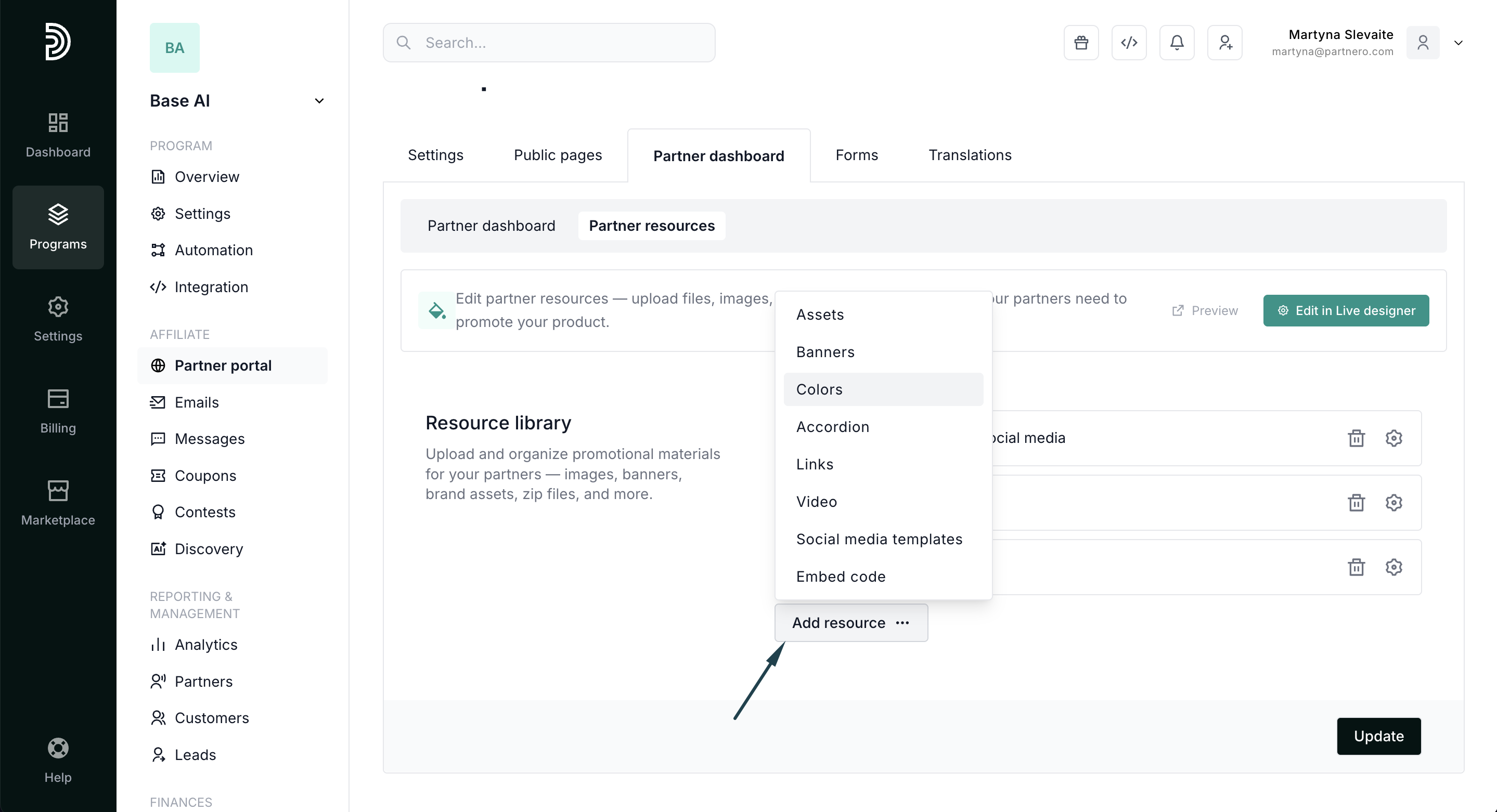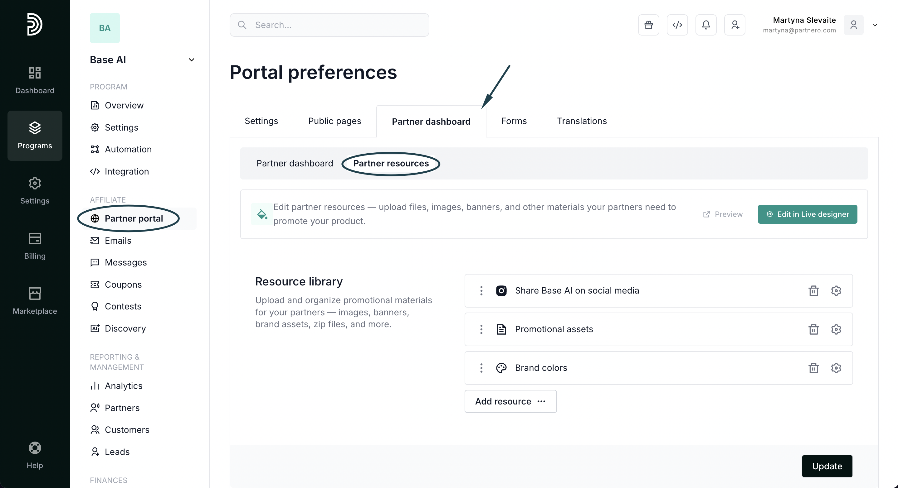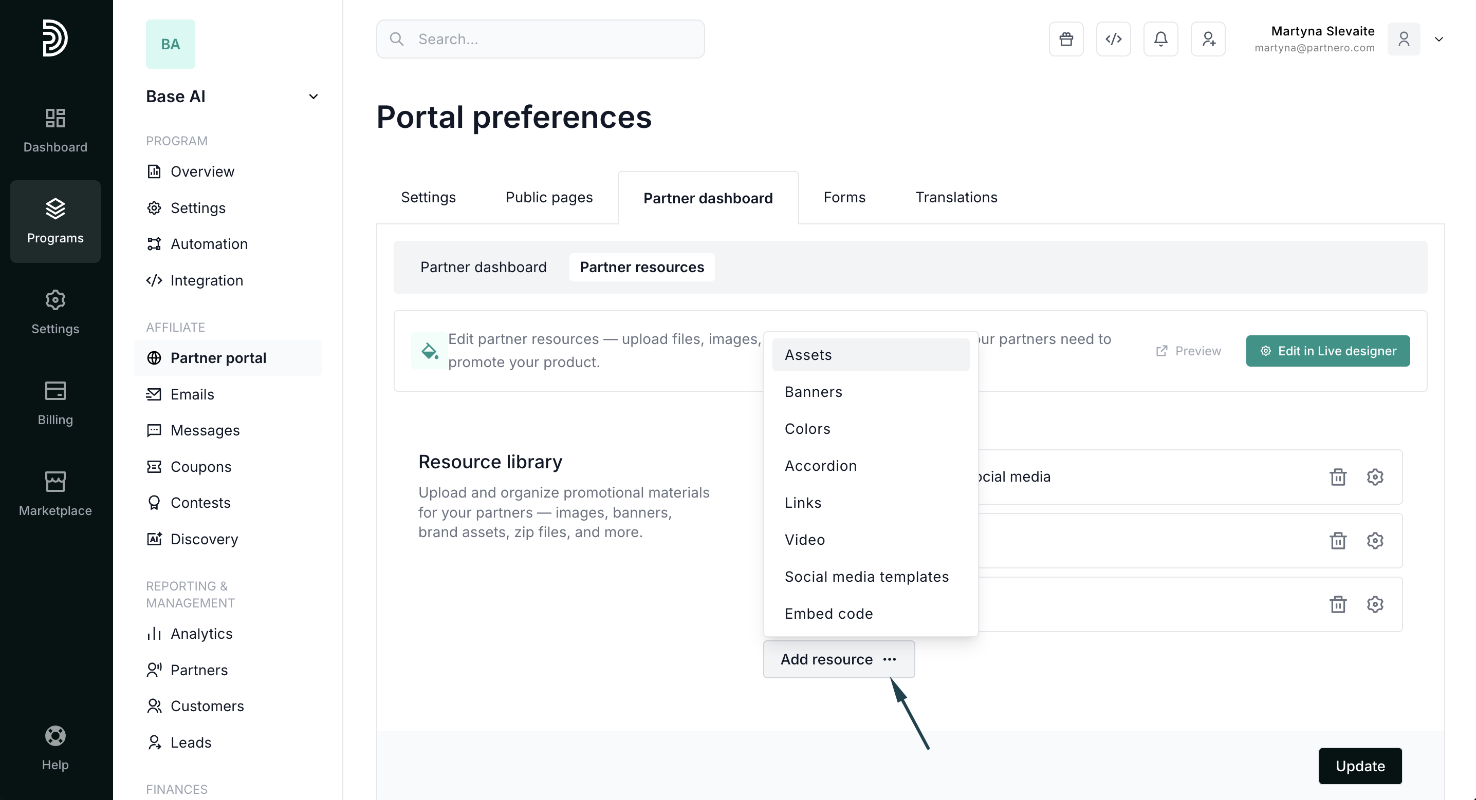Tip! While building the Resources page, have your Partner portal open in a separate tab. Every time you click Update on Partnero, refresh the Partner portal to see the changes reflected immediately. Explore all options and find what you like.
